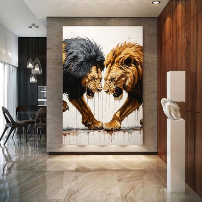 Der Kampf zwischen Löwen Tier Wandbild, Kunst Poster, Leinwand, Acrylglas