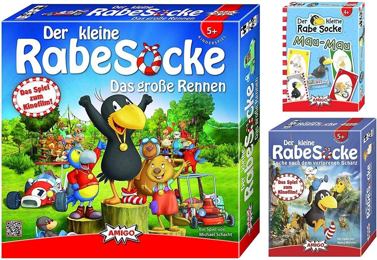Der Kleine Rabe Socke Spiel-Set Das große Rennen, verlorenen Schatz, Mau Mau