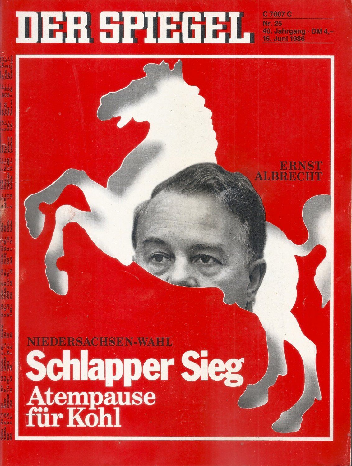 Der Spiegel Nr. 25 / 1986 - Niedersachsen-Wahl: Schlapper Sieg - Atempause für Kohl
