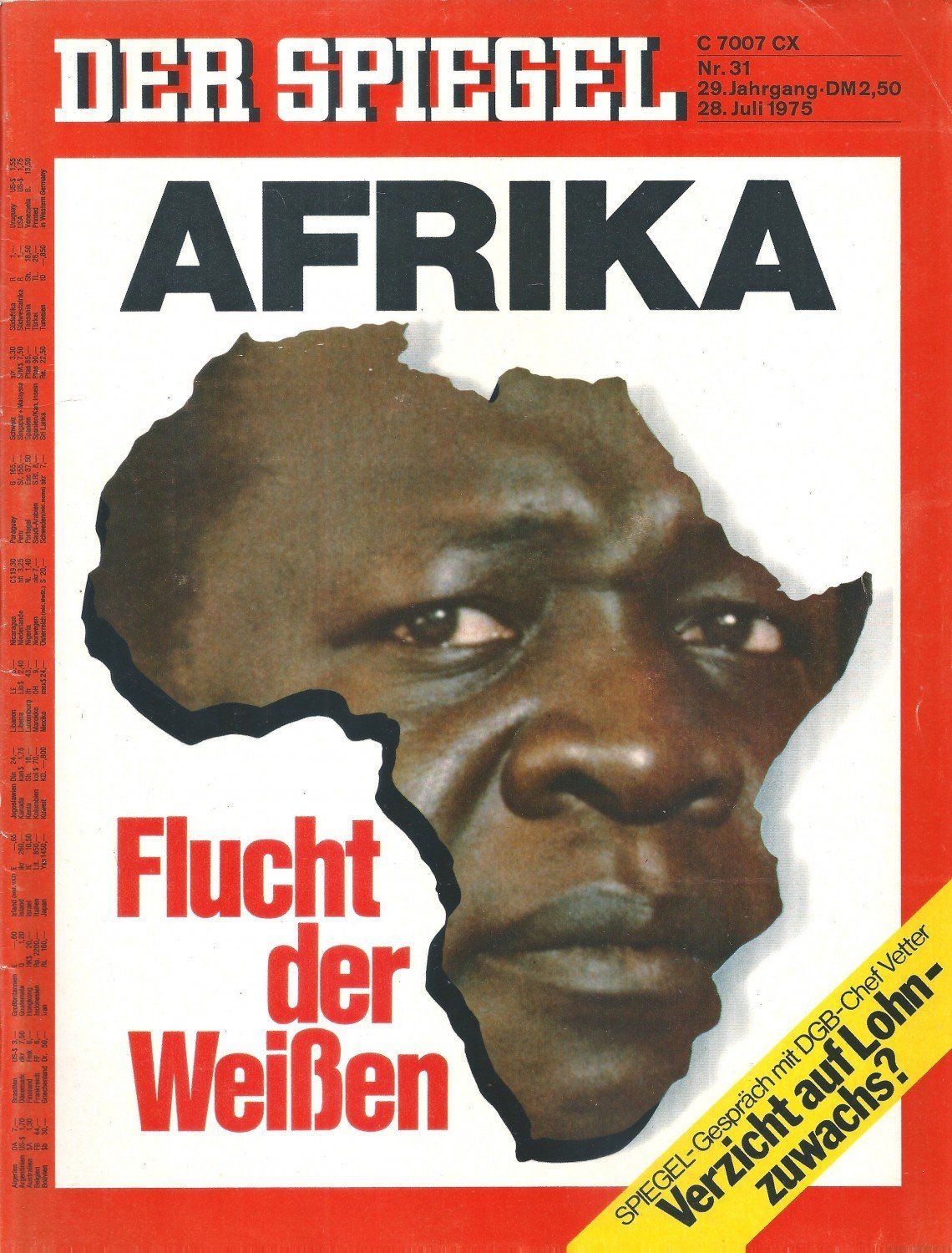 Der Spiegel Nr. 31 / 1975 AFRIKA - Flucht der Weißen + DGB: Verzicht auf Lohnzuwachs?