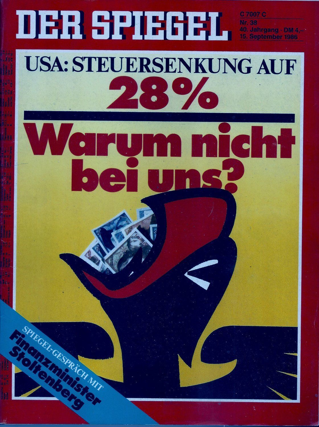 Der Spiegel Nr. 38 / 1986 USA: Steuersenkung auf 28% - Warum nicht bei uns?
