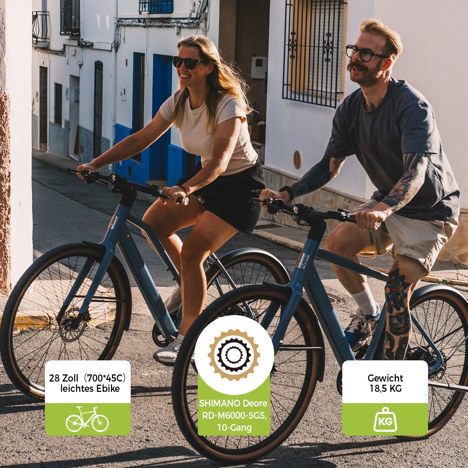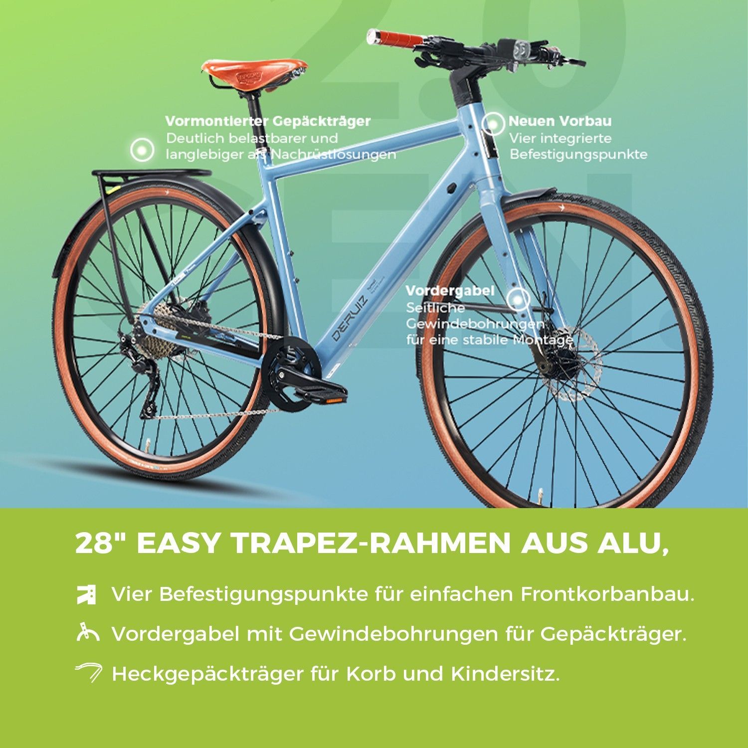 DERUIZ Ebikes Turmali-Premium Airy Blue 28 Zoll City Bike Shimano 10 Gang