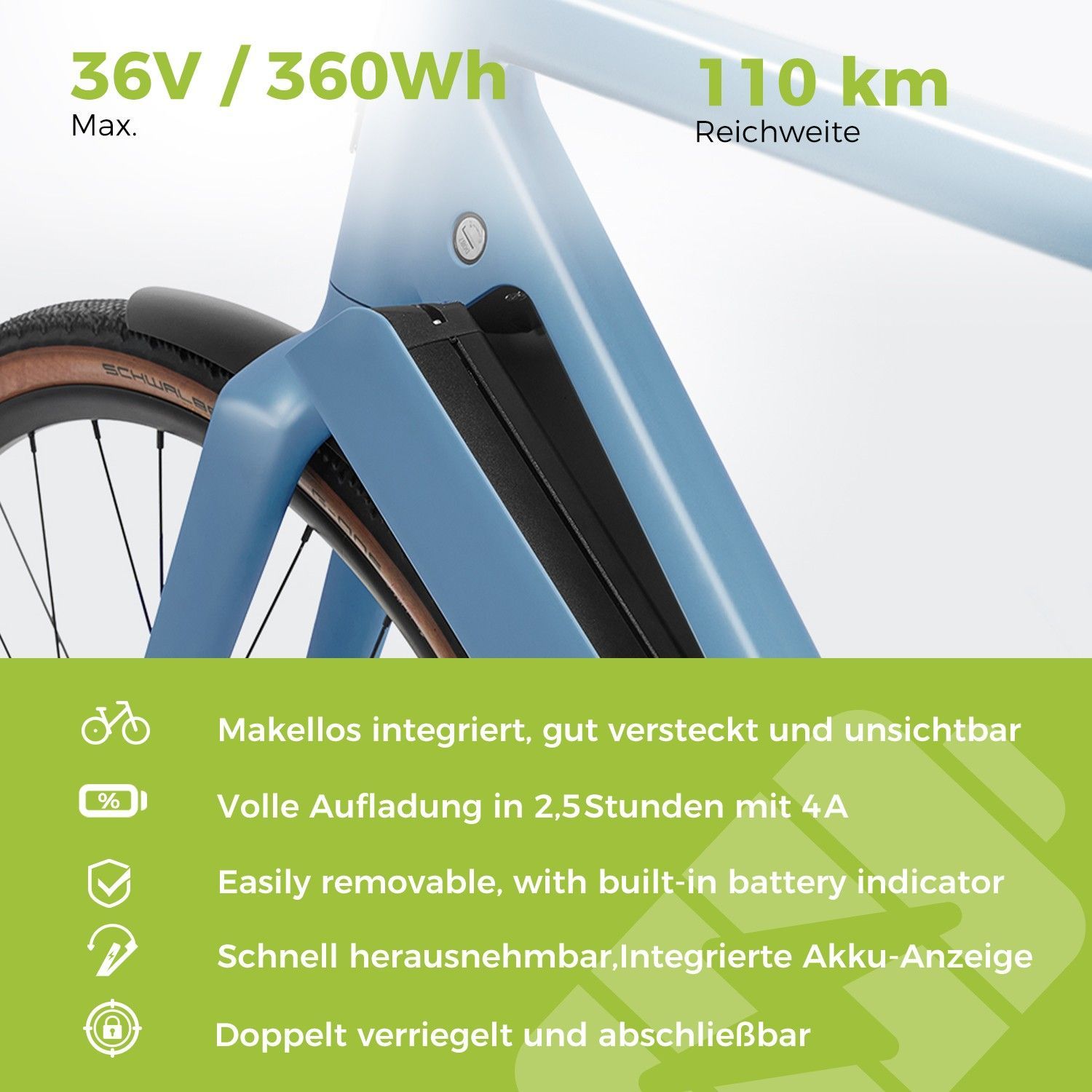 18.5 Kg E-bike 250W 40Nm 360Wh Akku Elektrofahrräder