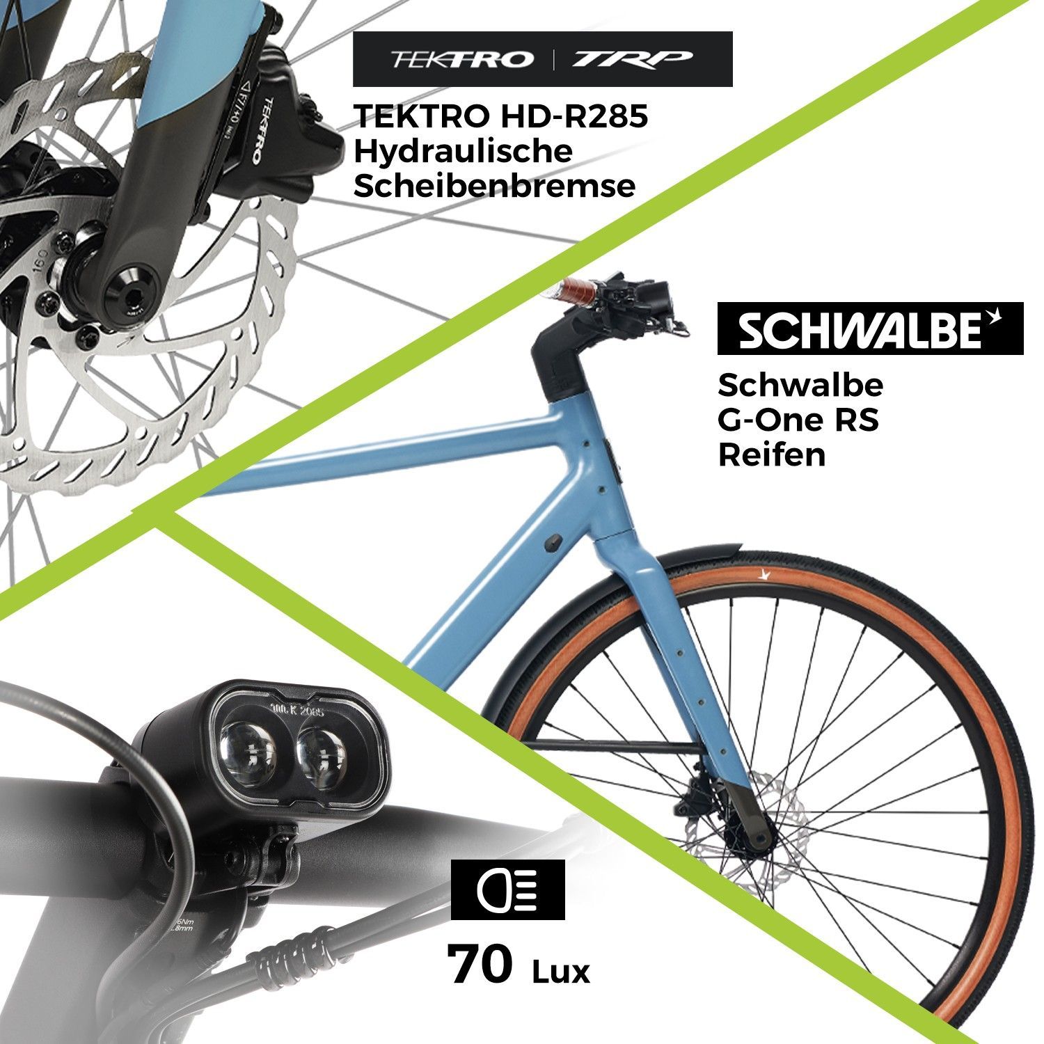 Zwei Lampen mit je 70 Lux (StVZO-Zertifikat)