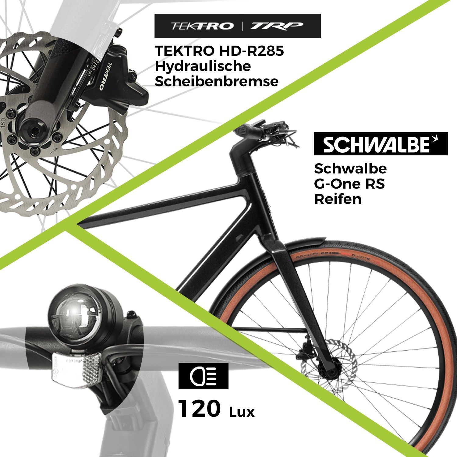 DERUIZ Turmali 52cm Leichtes Ebike 36V 250W mit Gates Carbon Drive Riemenantrieb