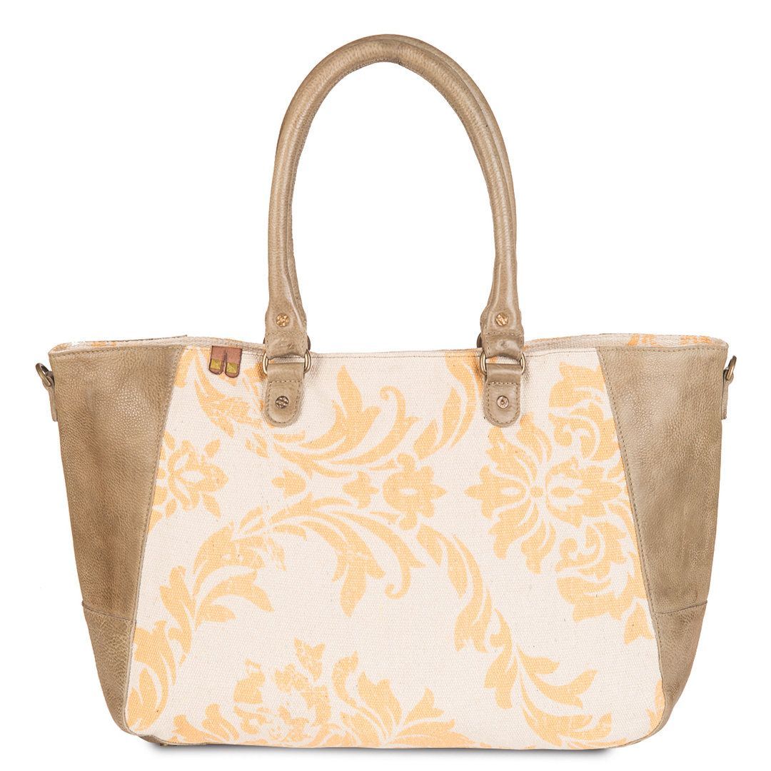 Desiderius Marcelina Inea Schultertasche Canvas Stoff yellow canvas + olive leather D