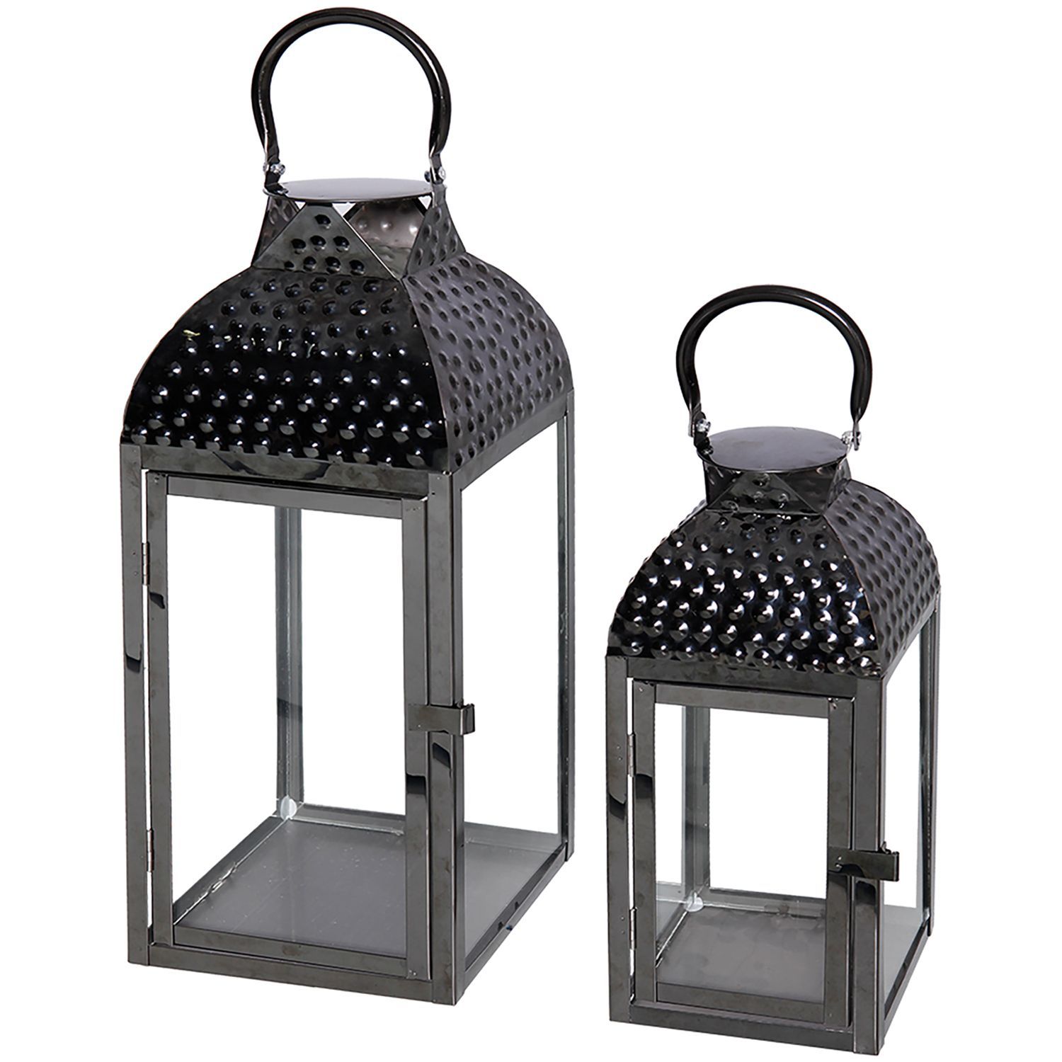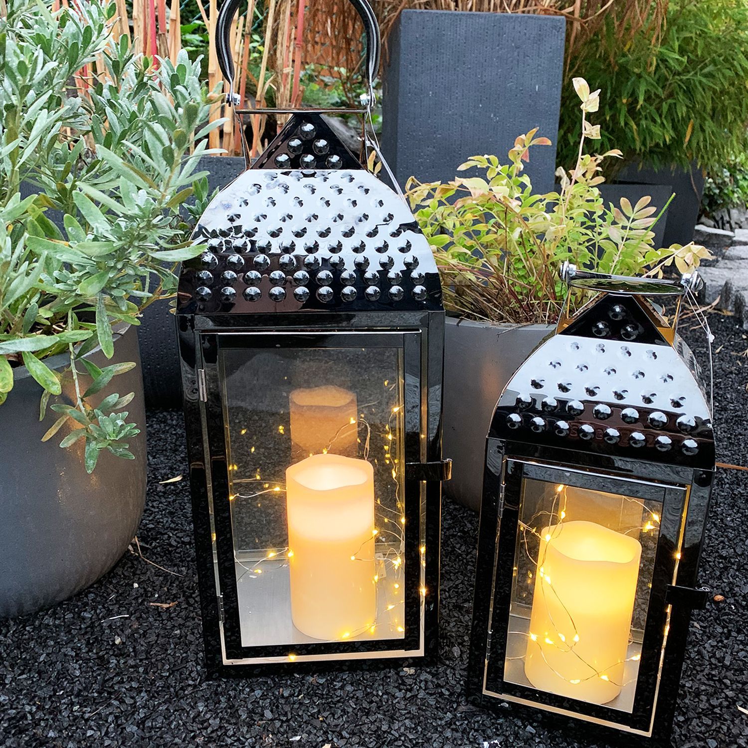 Design 2tlg Gartenlaternen Set Windlicht Edelstahl Schwarz poliert H35cm H46cm