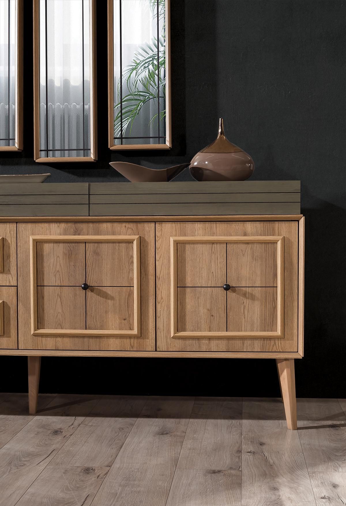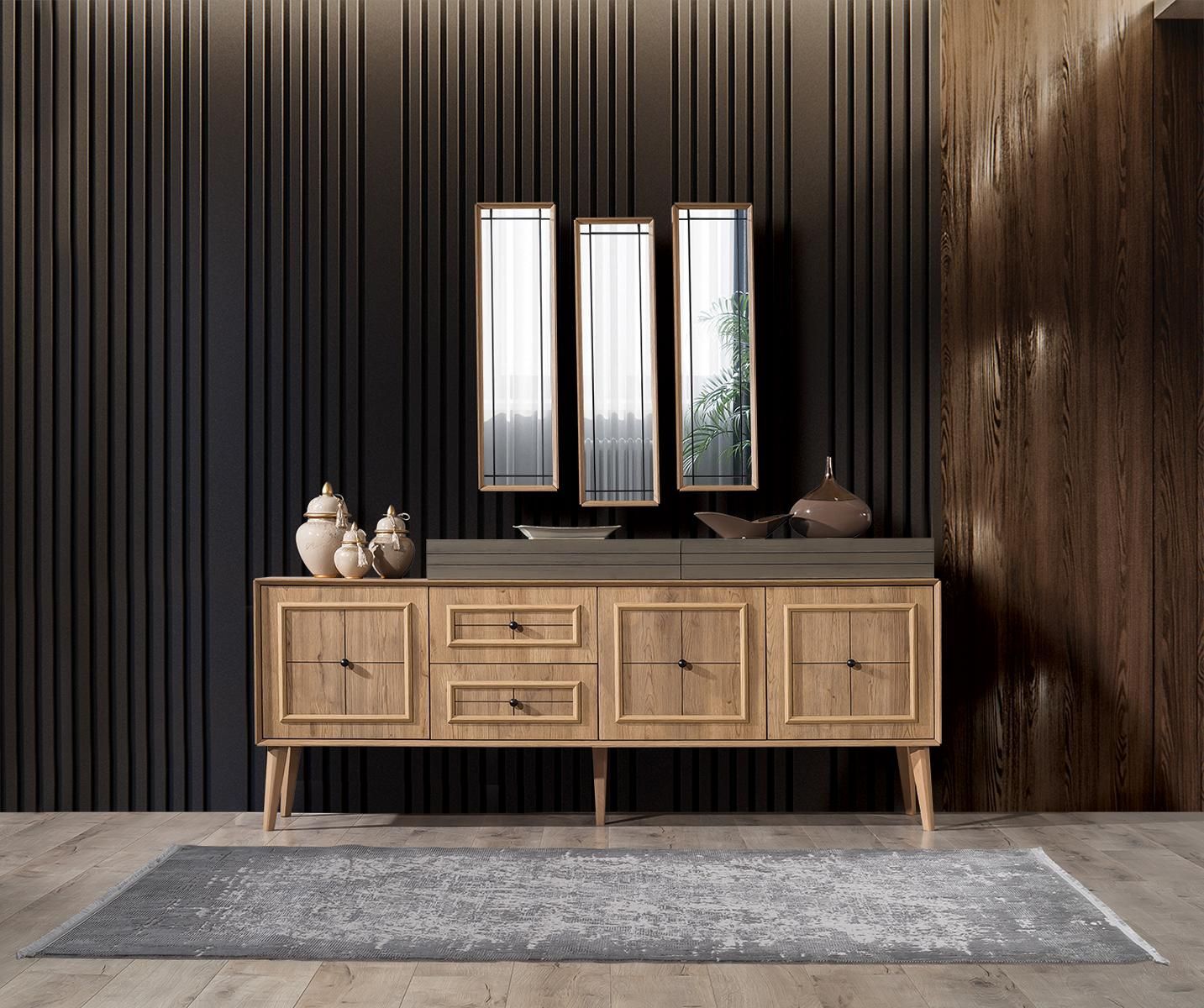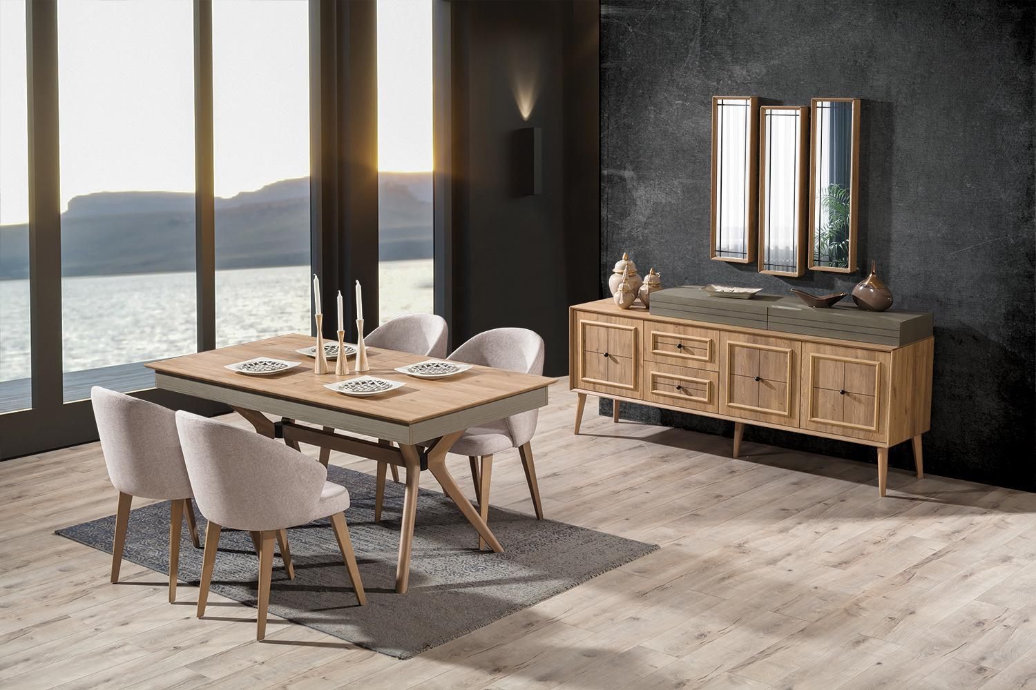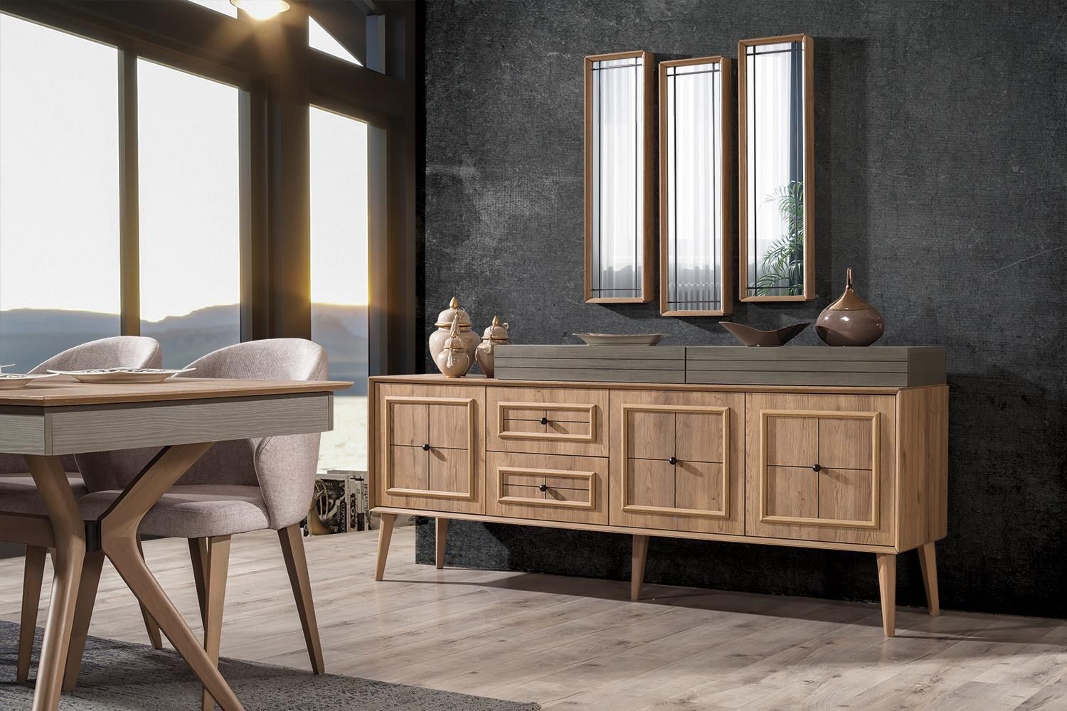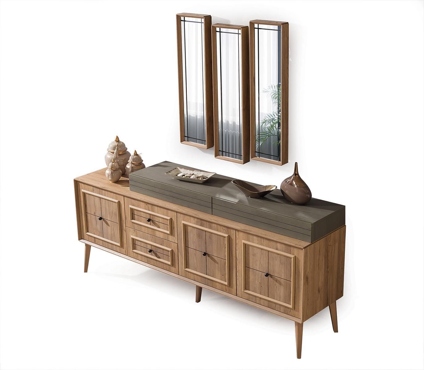 Design 9Tlg. Esszimmer Set Esstisch + 4X Stühle + Anrichte+ 3X Spiegel Modern