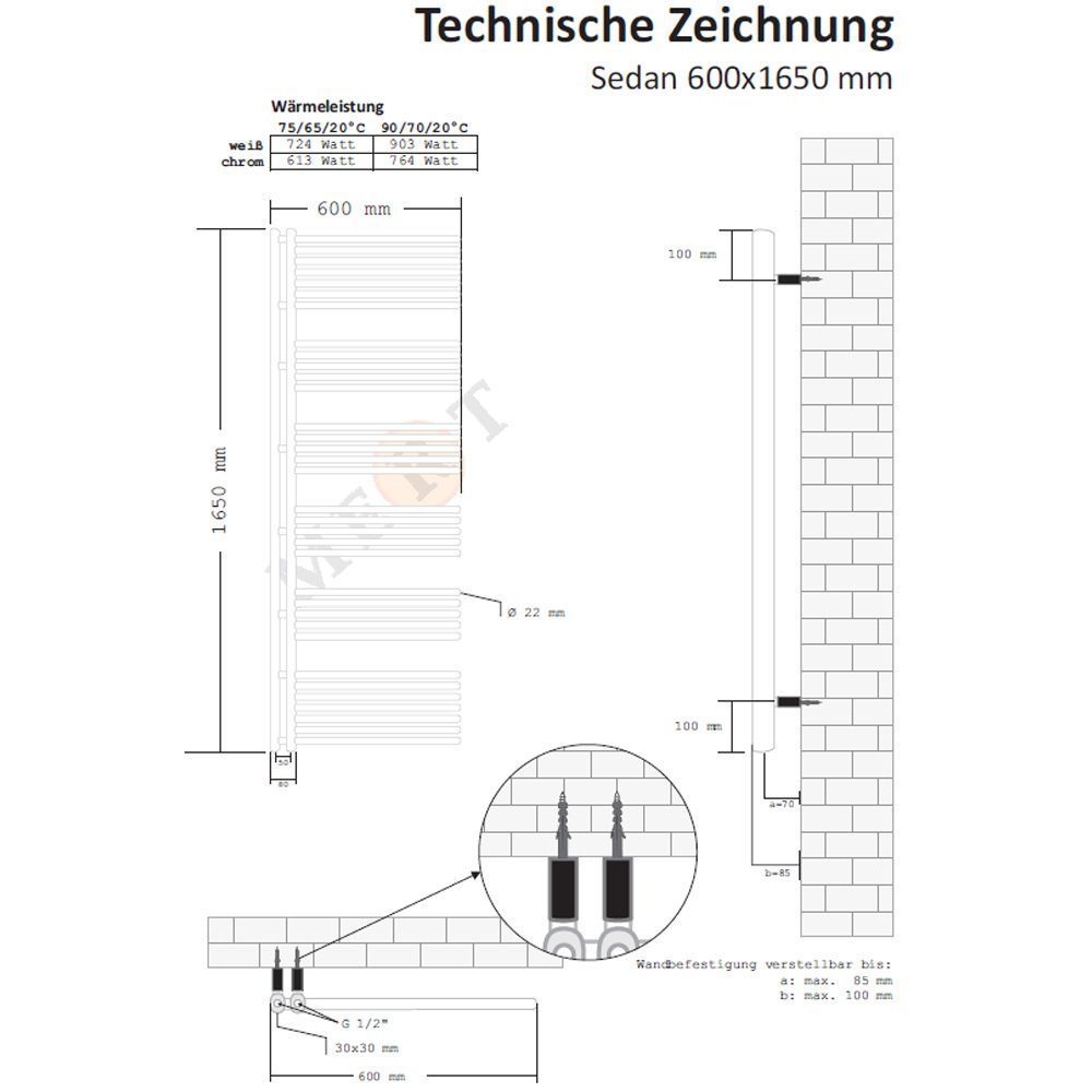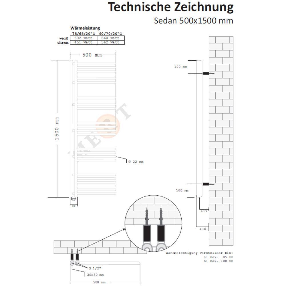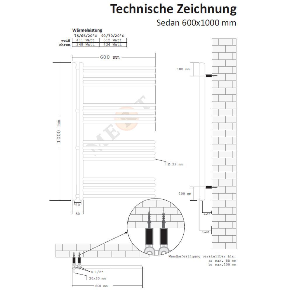 MERT Design Badheizkörper Sedan in weiss oder chrom - Handtuchhalter Heizkörper