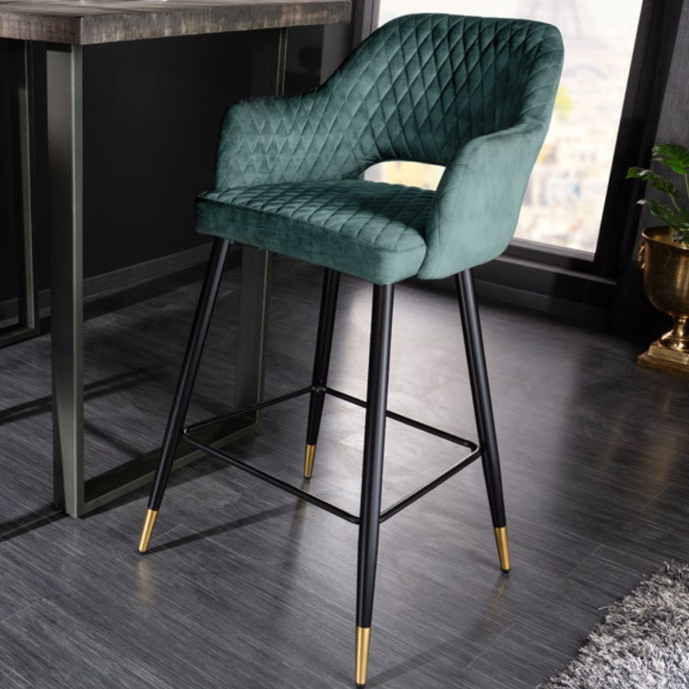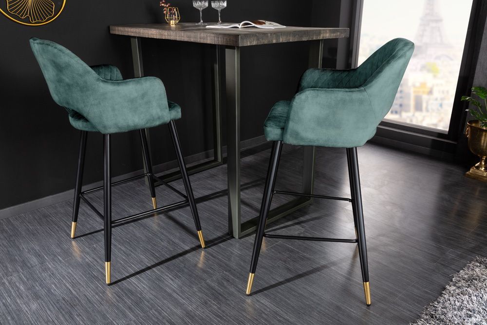 Design Barhocker FRANCE petrol Ziersteppung Armlehnen Retro