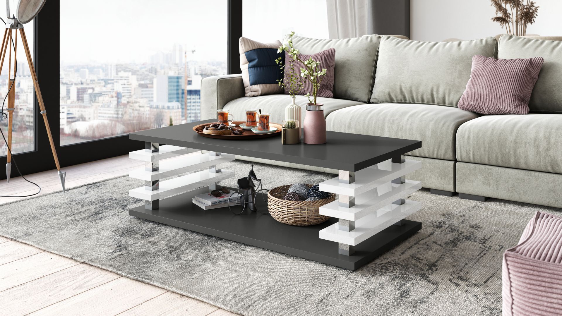 Weiß Hochglanz - Anthrazit matt