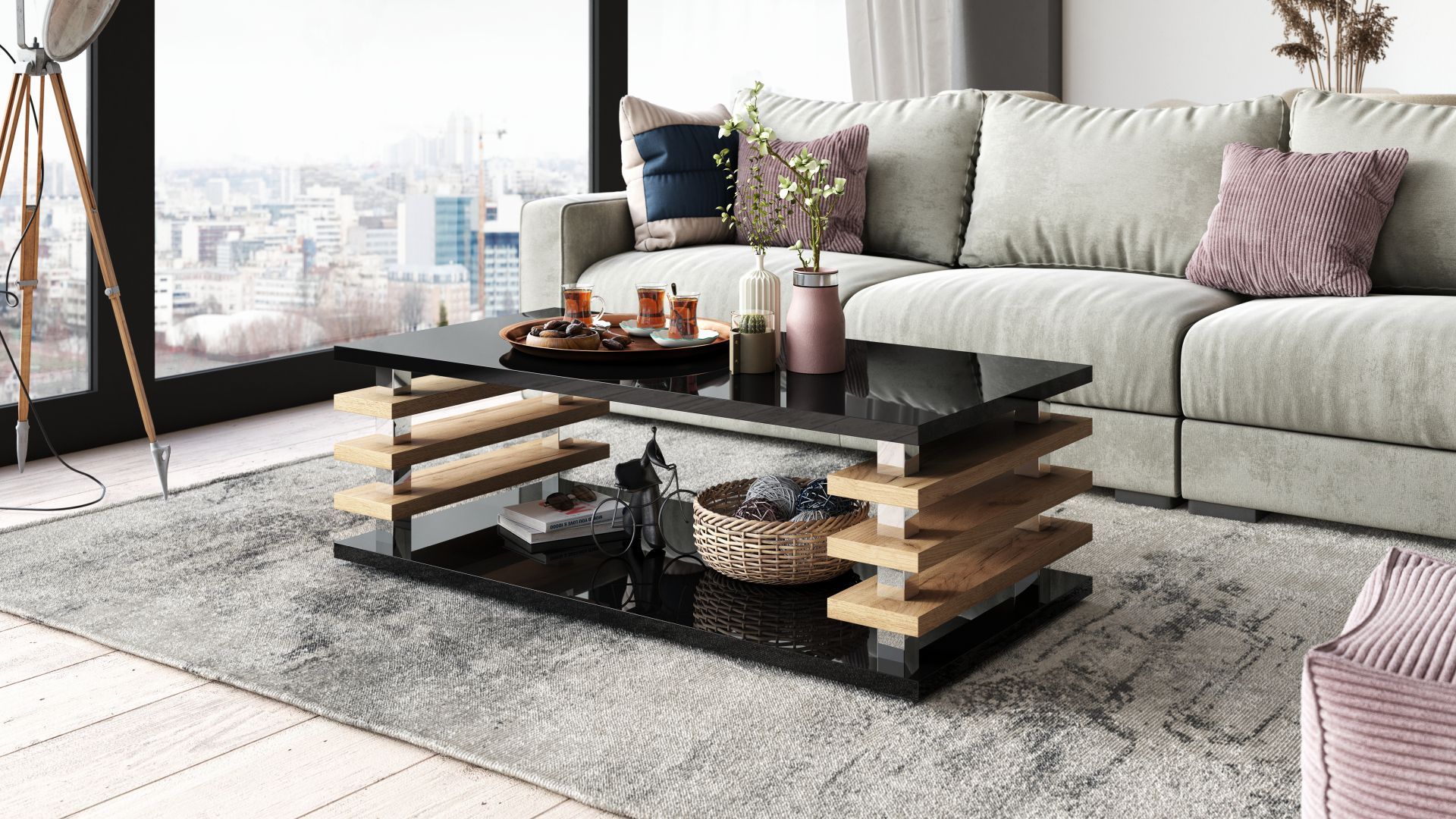 Schwarz Hochglanz - Eiche Gold craft