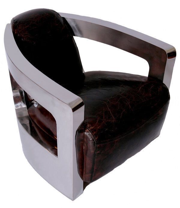 Design Clubsessel Mars Chrom Vintage Leder Sessel Ledersessel Möbel NEU