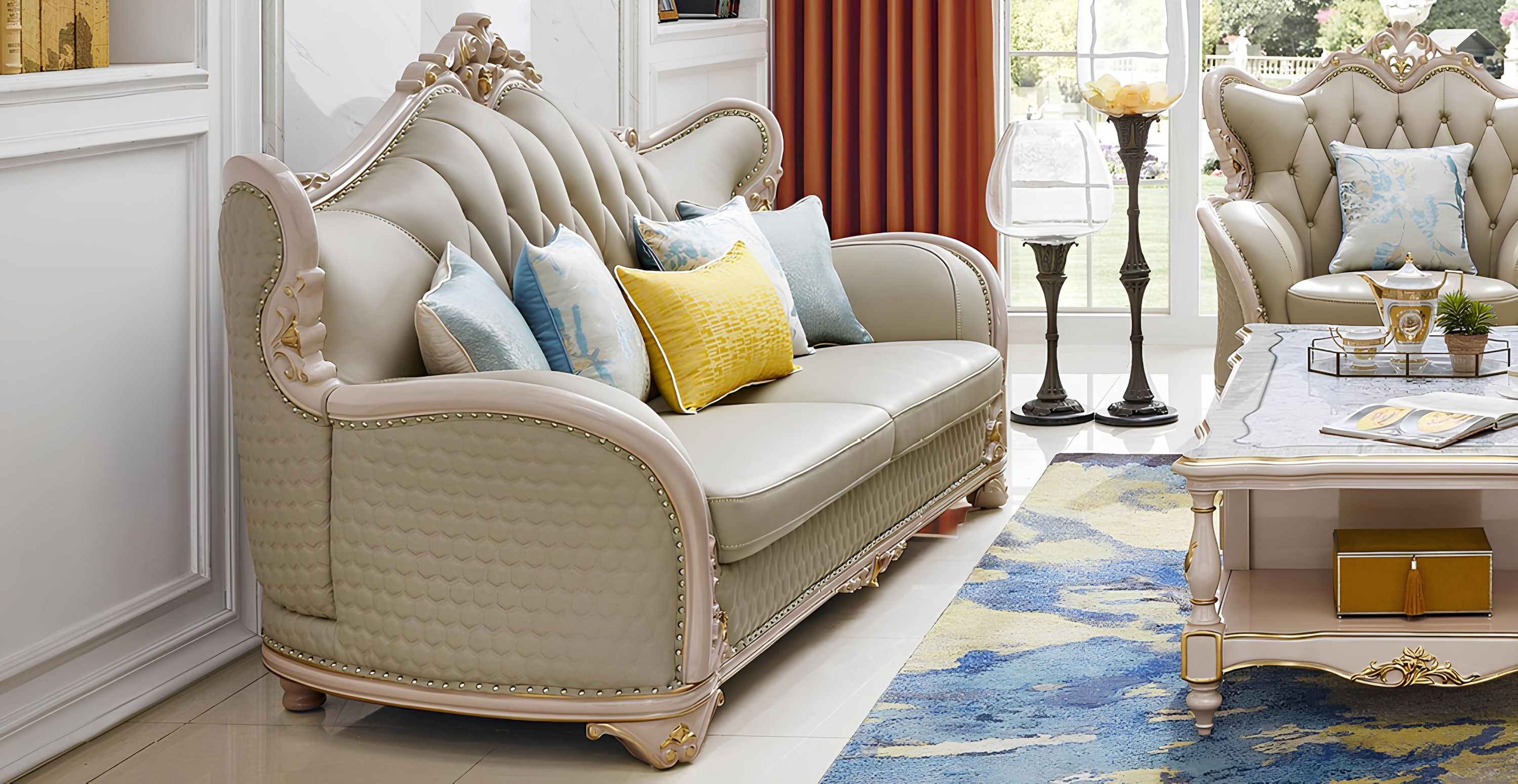 Design Antik Stil Holz Ledersofa Couch Leder Couchen Polster Sofas Designer Sofa