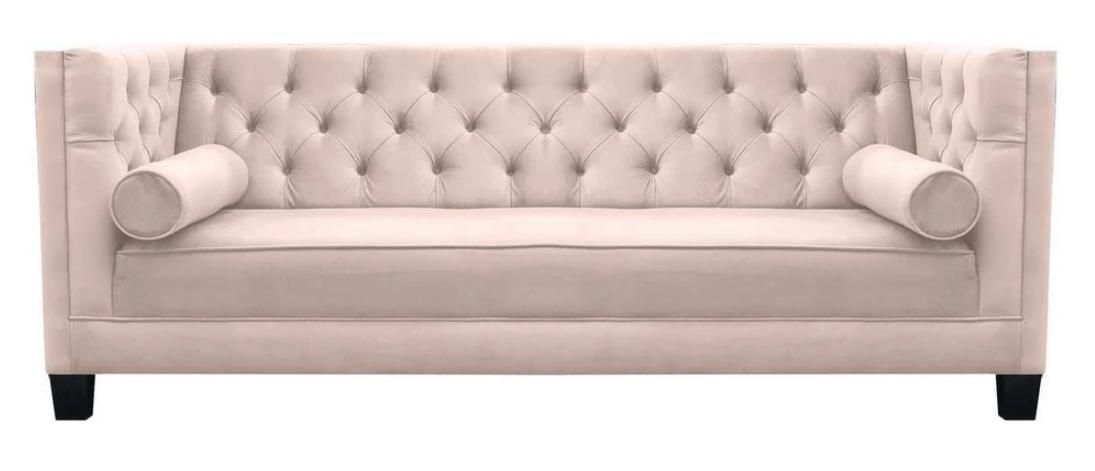 Design Couchen Polster Sofa Sofas Chesterfield Rosa Dreisitzer Stoff Wohnzimmer