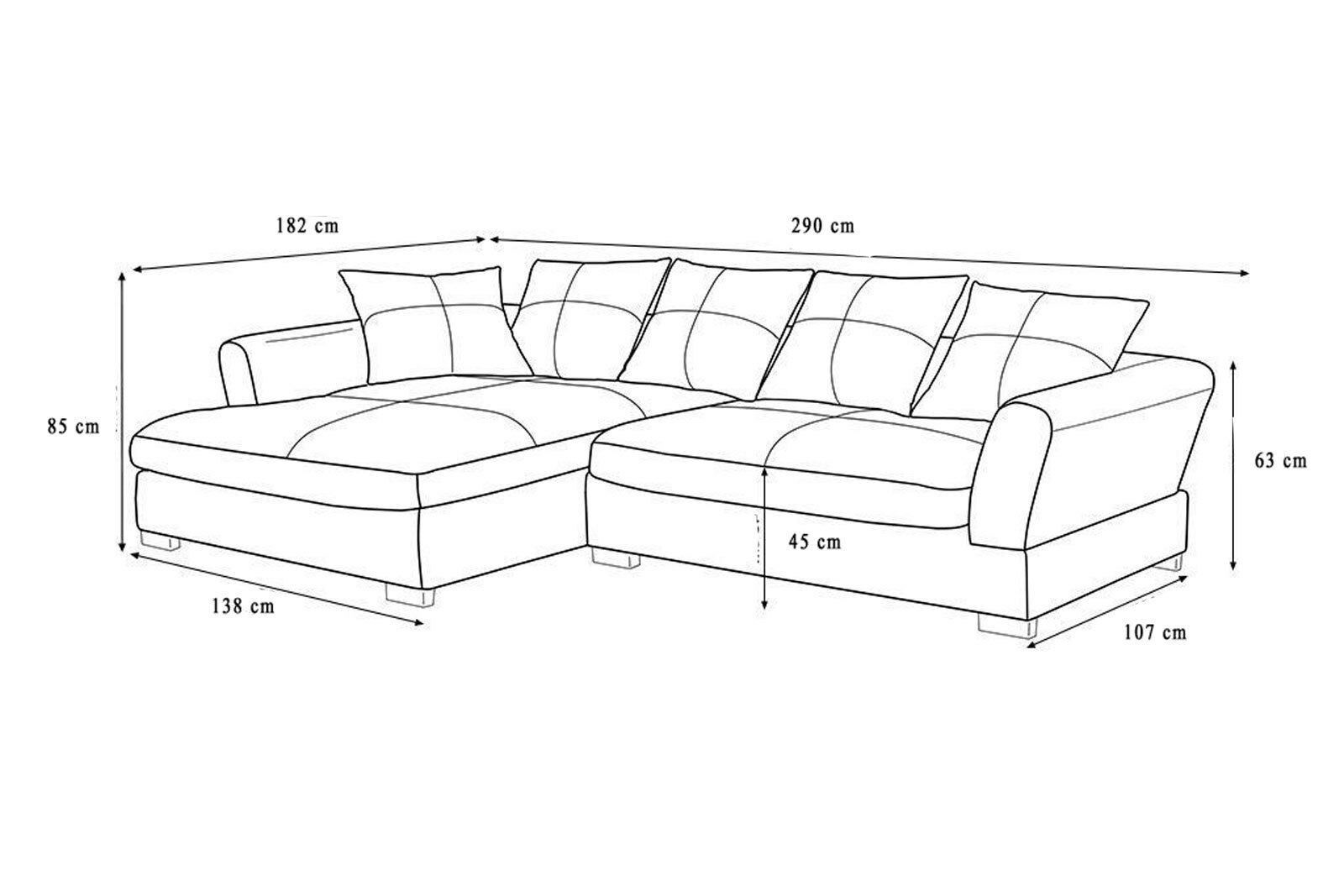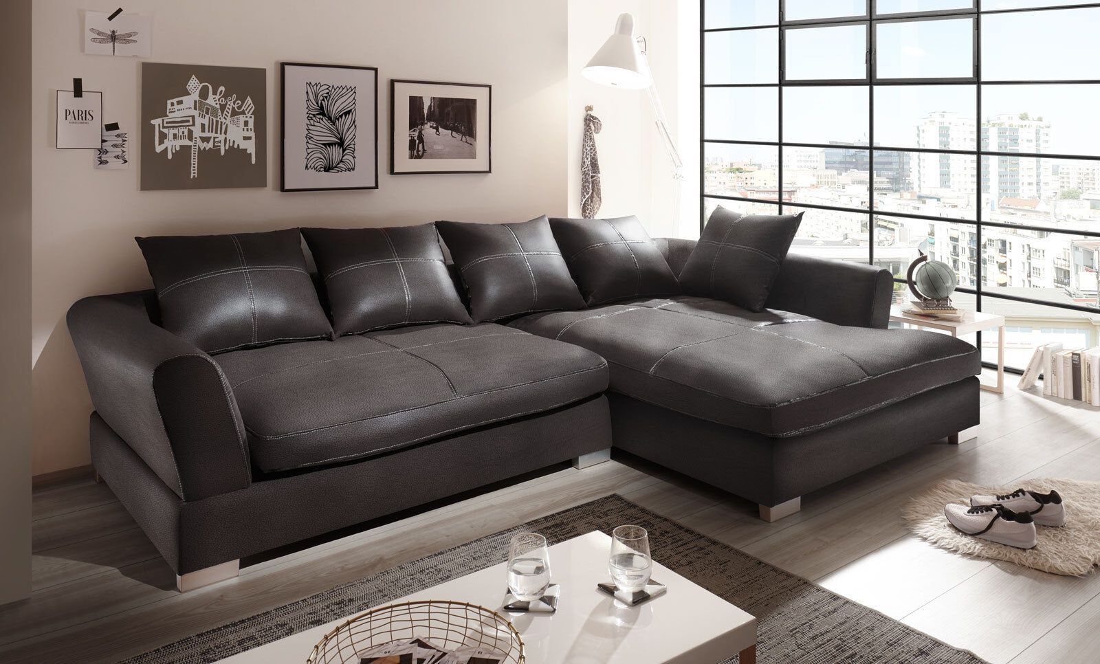 Design Couchgarnitur Anthrazit Sofa K-Leder Eck Big Sofa Wohnlandschaft Rechts