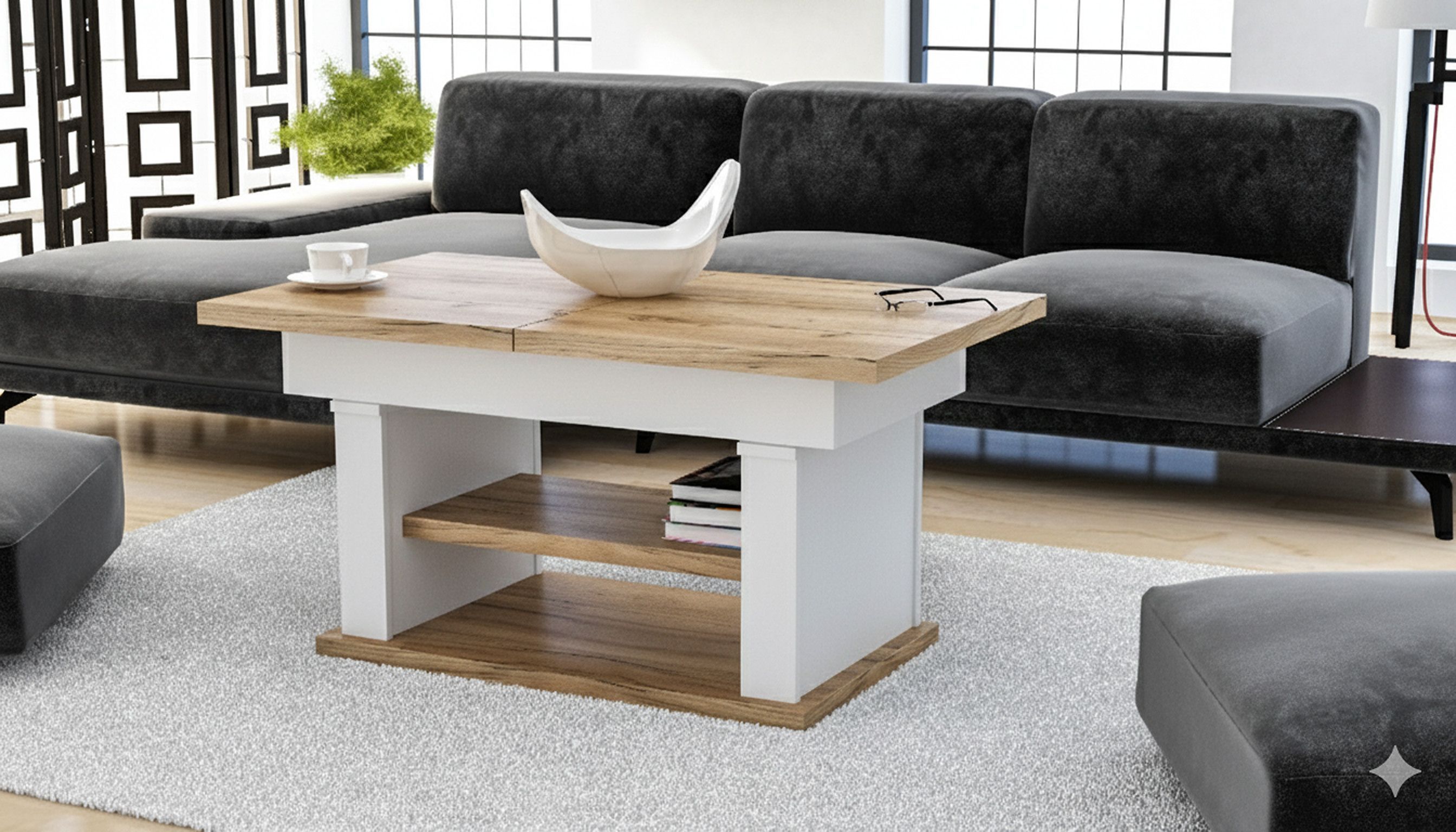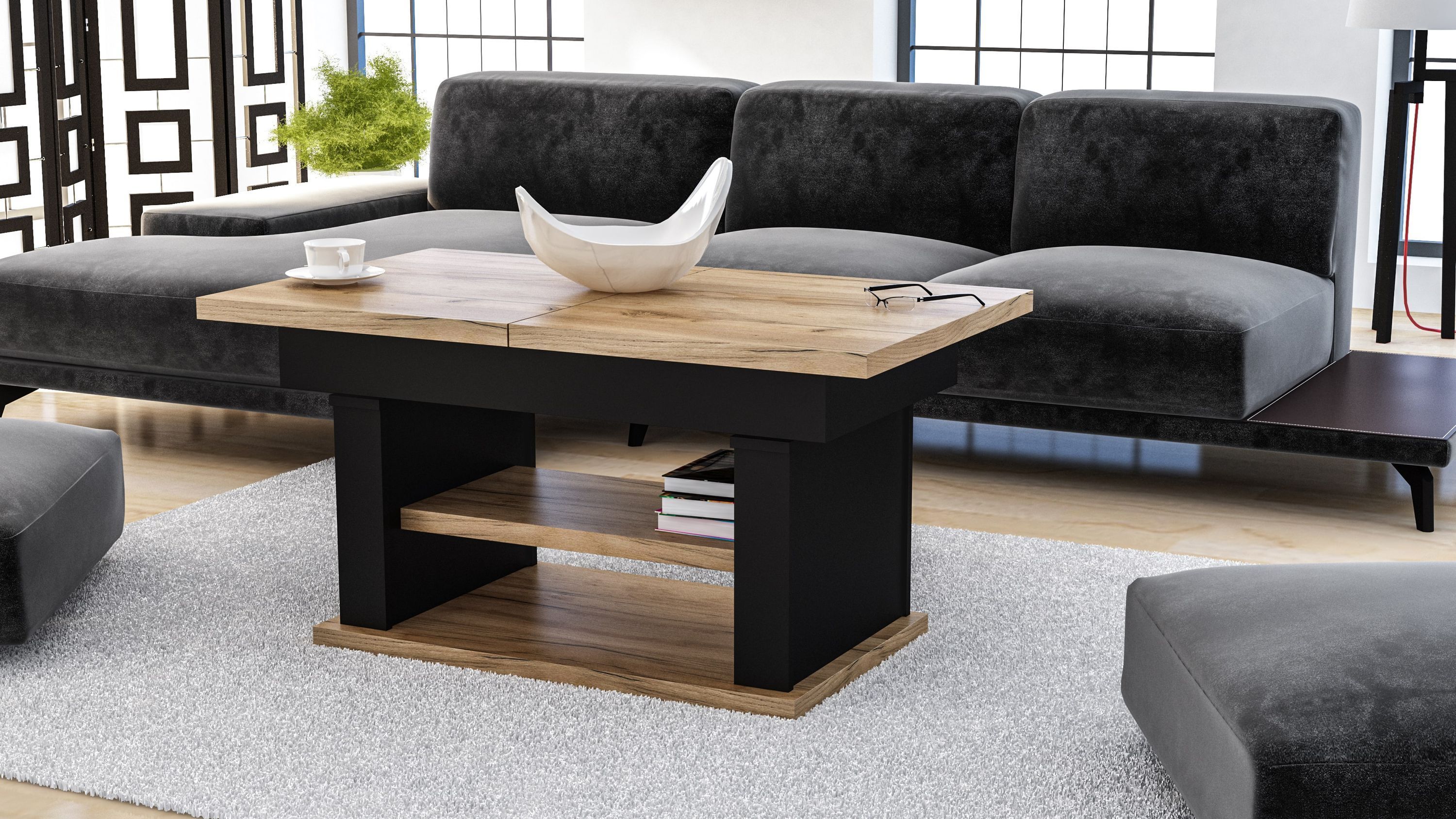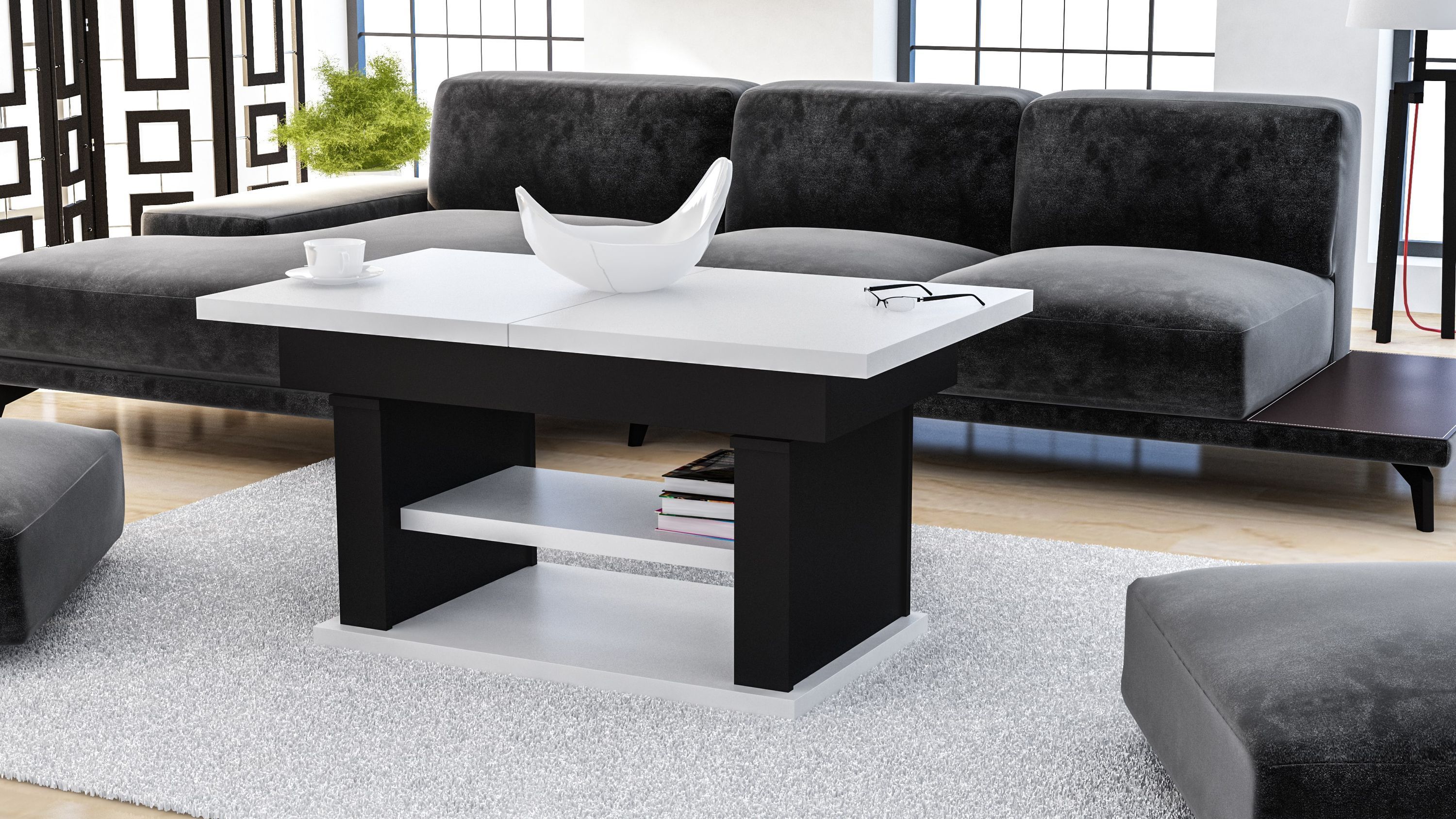 Design Couchtisch DA-666 höhenverstellbar ausziehbar Tisch Ablage Esstisch Wohnzimmer
