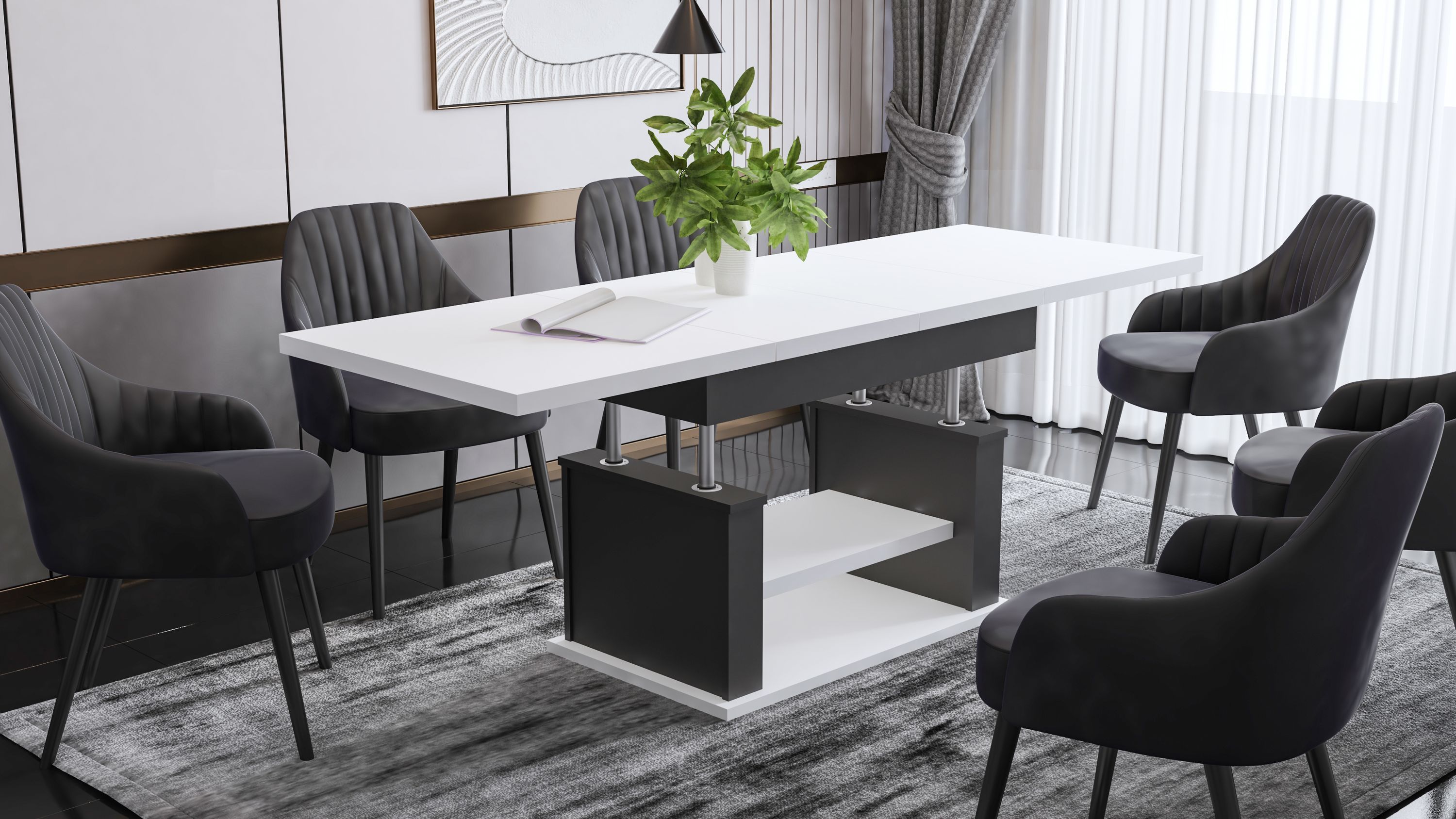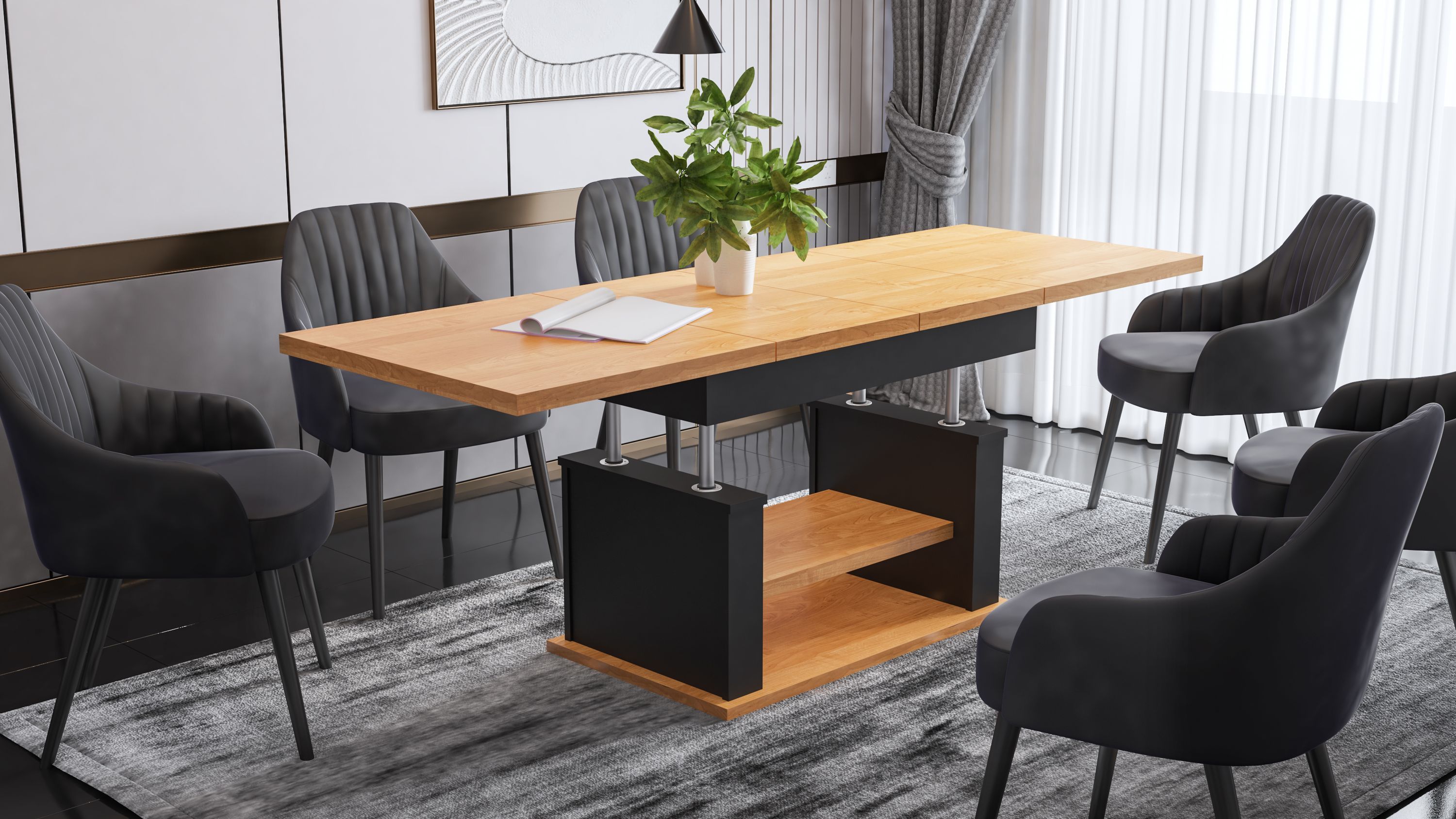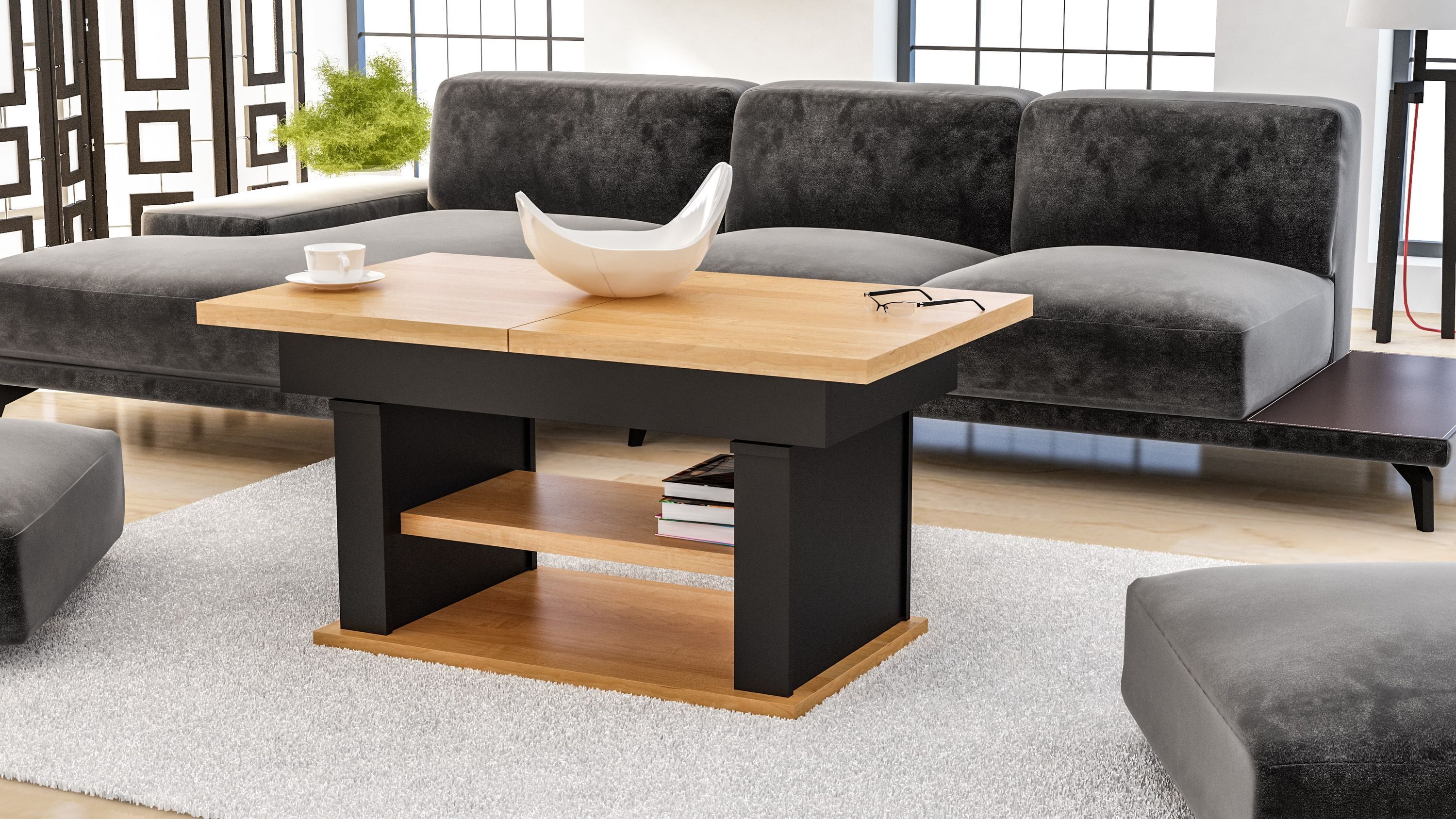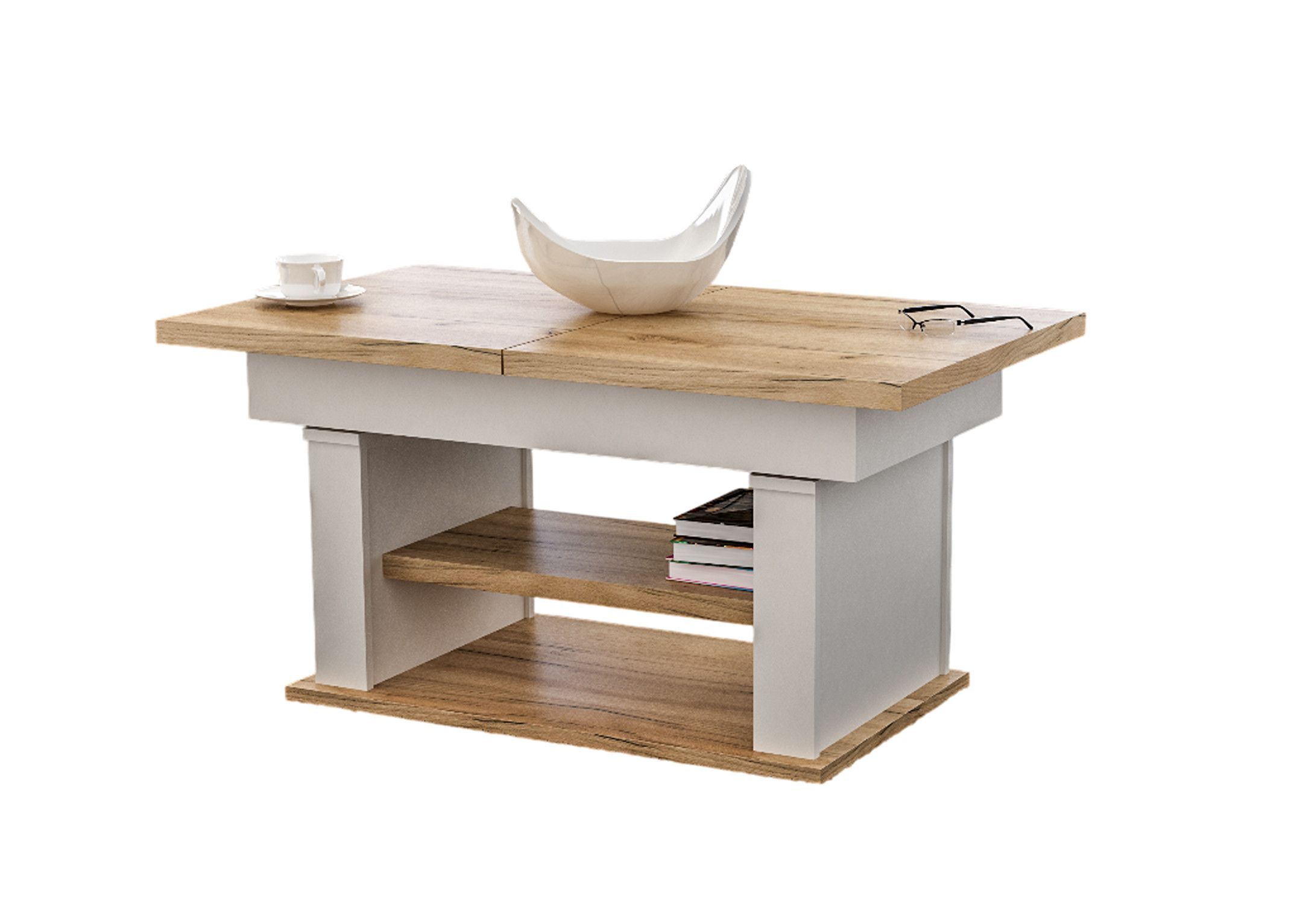 Design Couchtisch DA-666 höhenverstellbar ausziehbar Tisch Ablage Esstisch Wohnzimmer