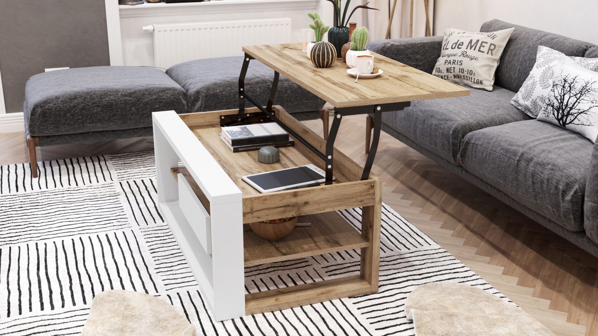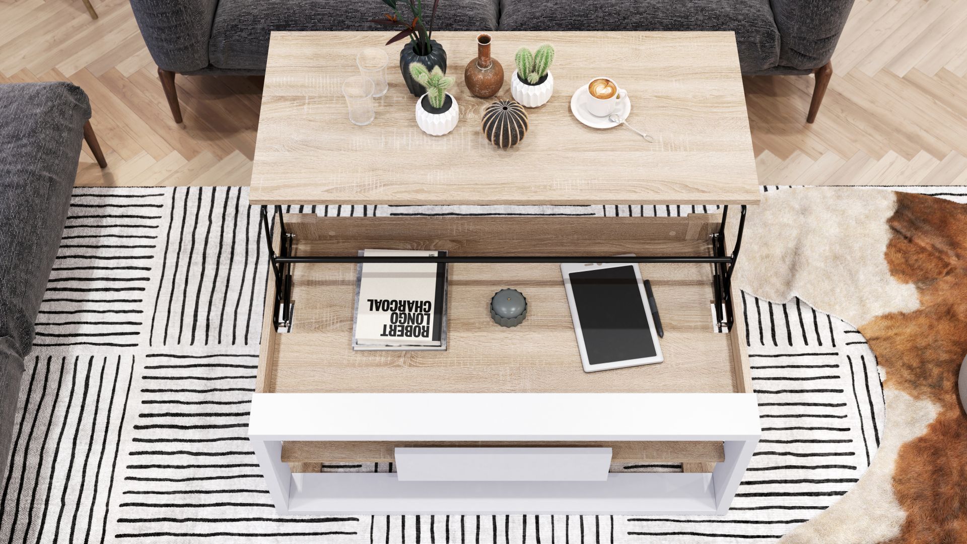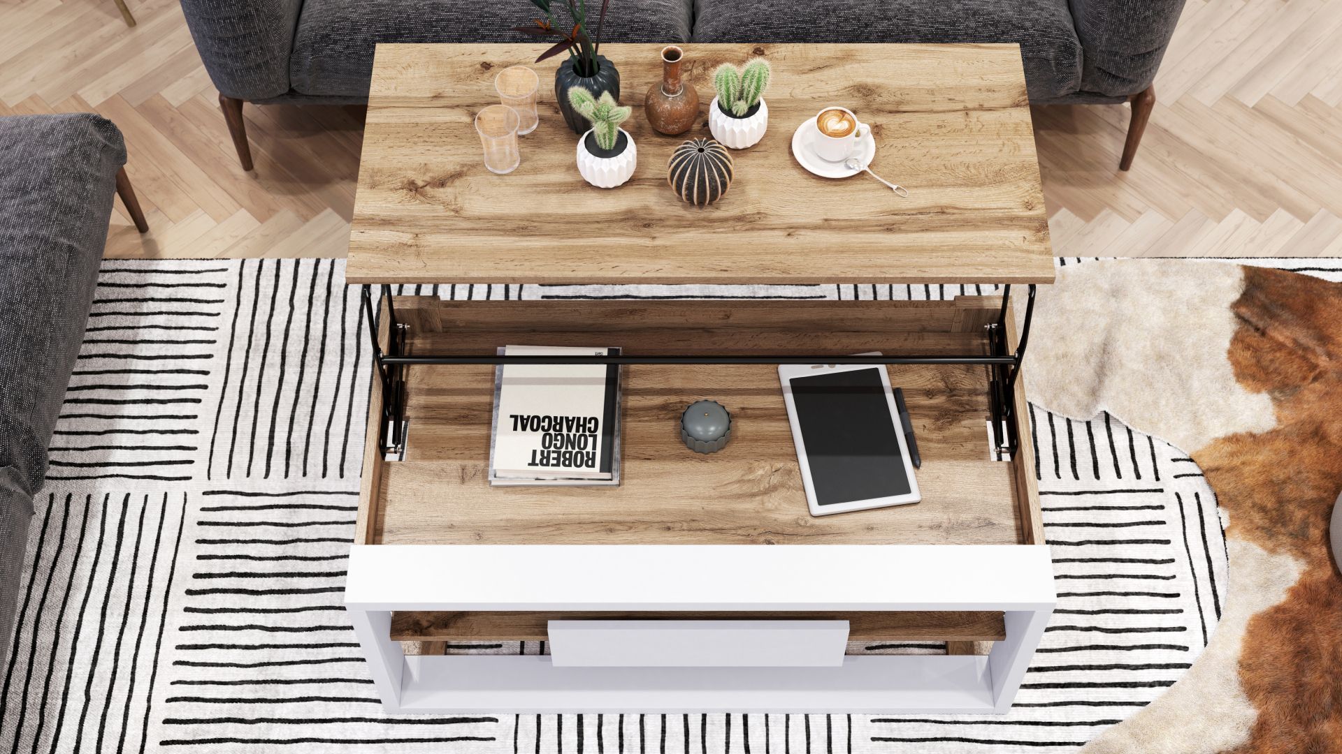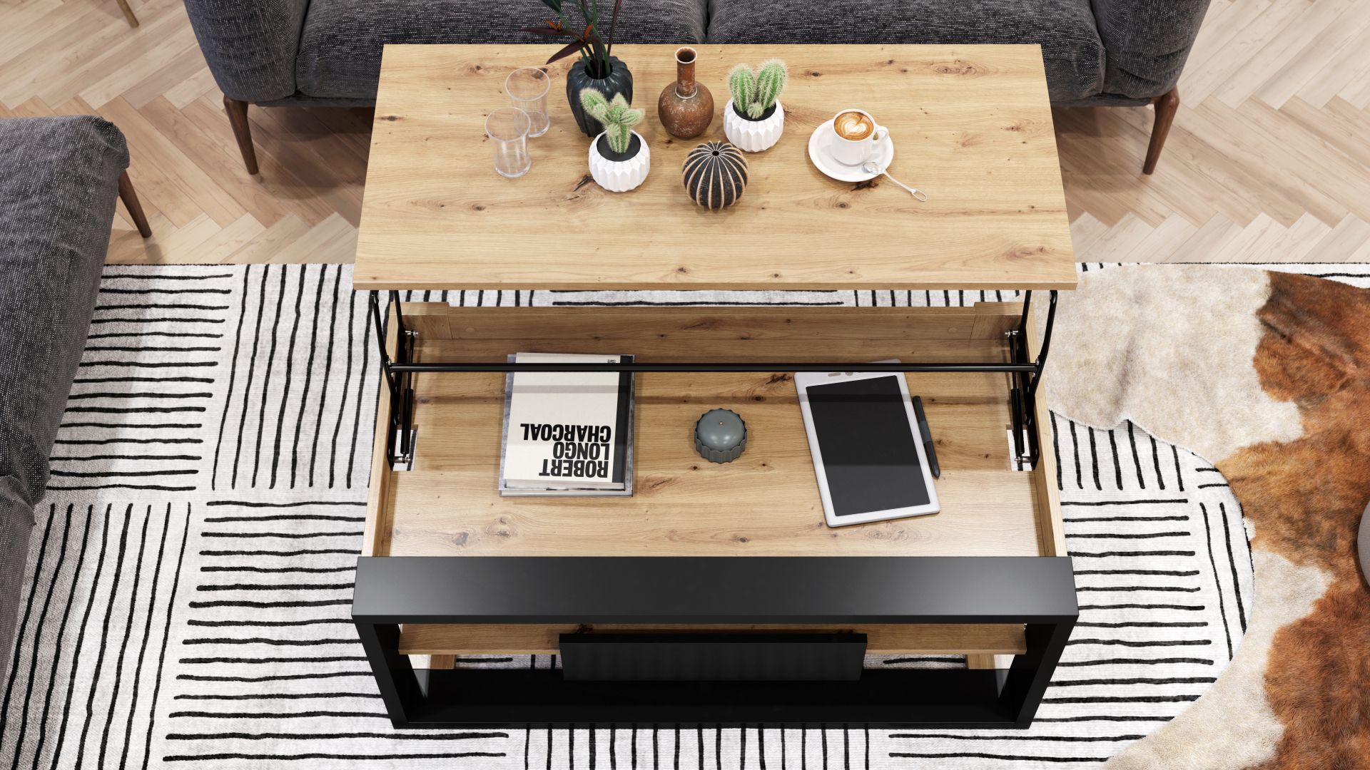 Design Couchtisch Frame Multifunktion Arbeitstisch aufklappbar Tisch