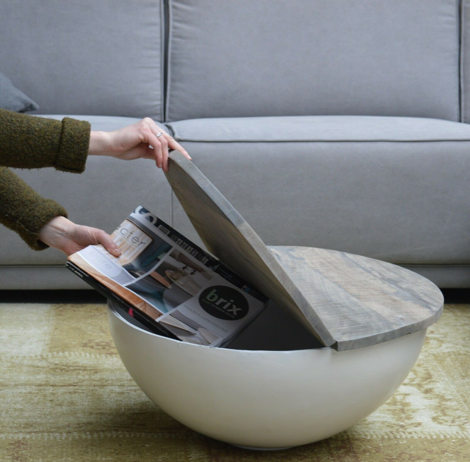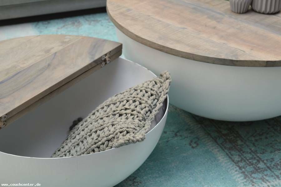 DESIGN Couchtisch Mangoholz Sophie Metall rund Beistelltisch Halbkugel 60 cm x 30 cm
