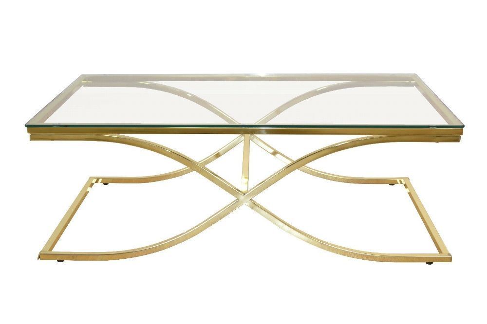 design Couchtisch messingfarben moderner Sofatisch Glastisch Gestell geschwungen
