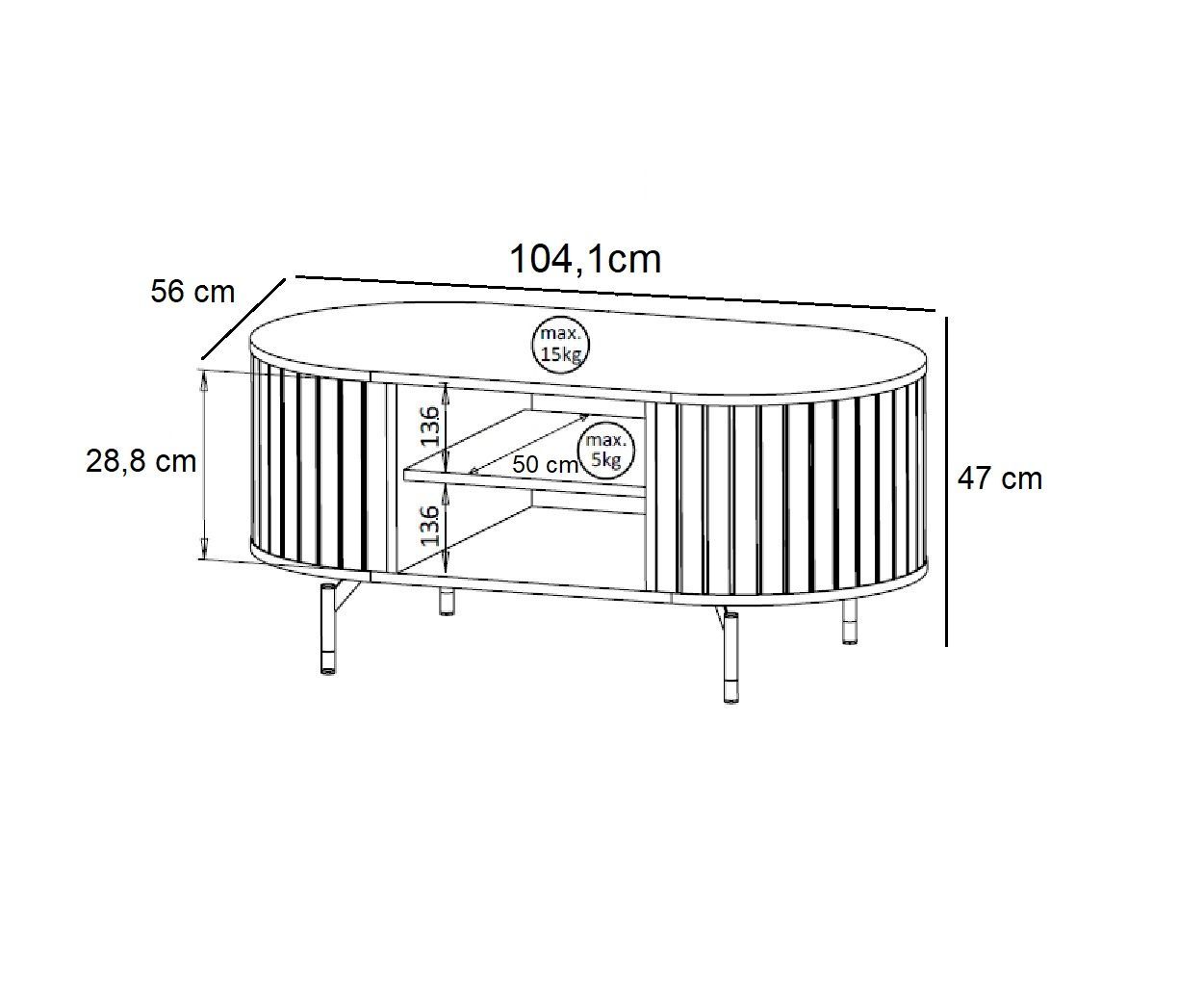 Design Couchtisch Roma DO-6 oval Wohnzimmertisch Stauraum Tisch Ablage