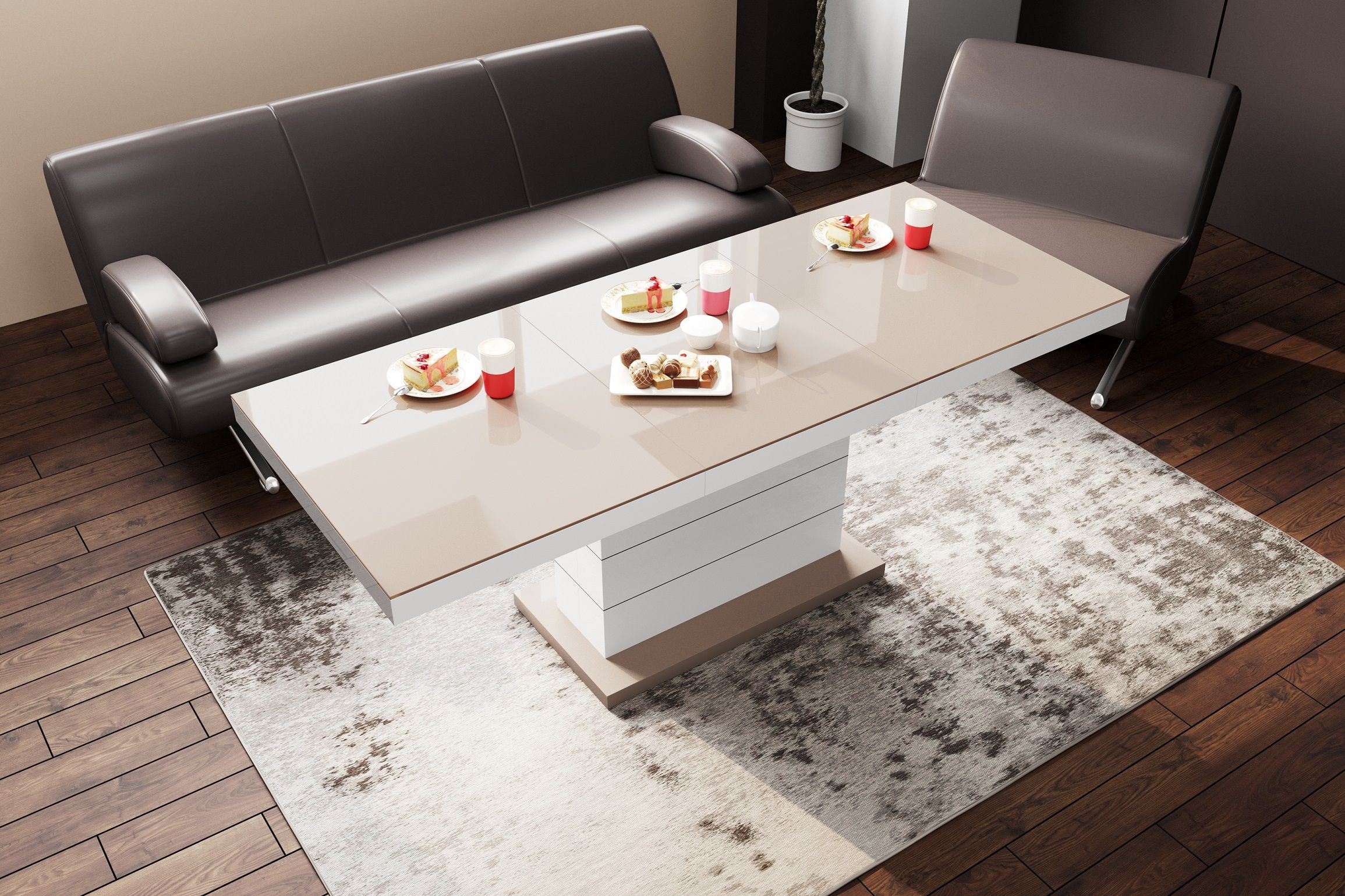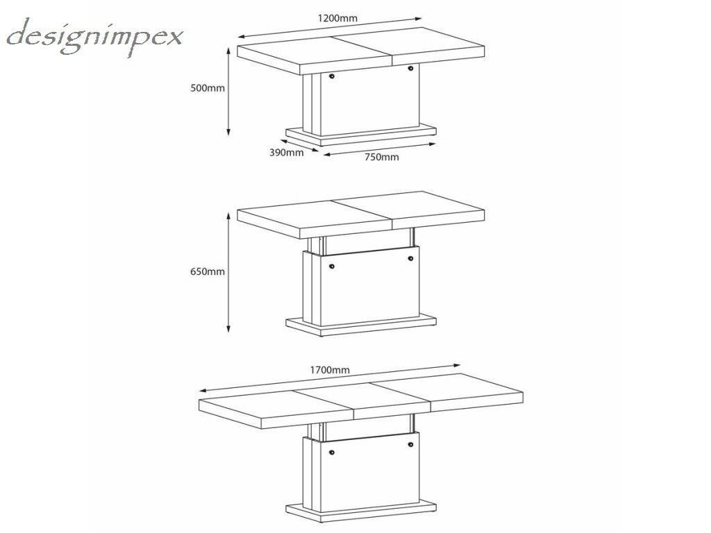 Design Couchtisch Tisch H-333 höhenverstellbar ausziehbar Esstisch