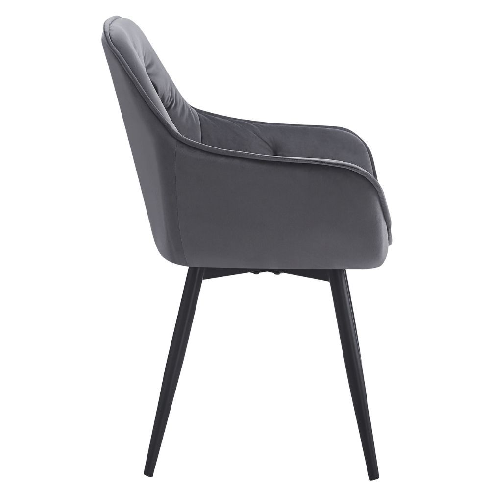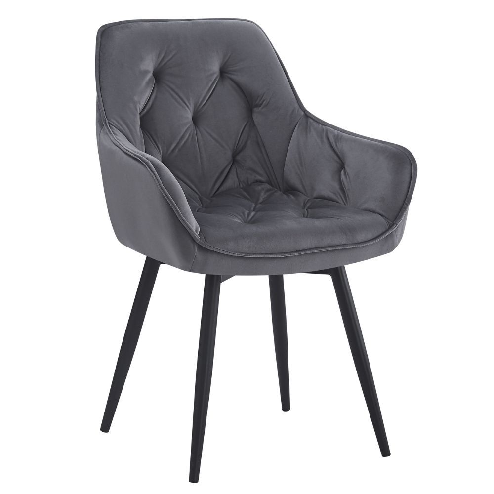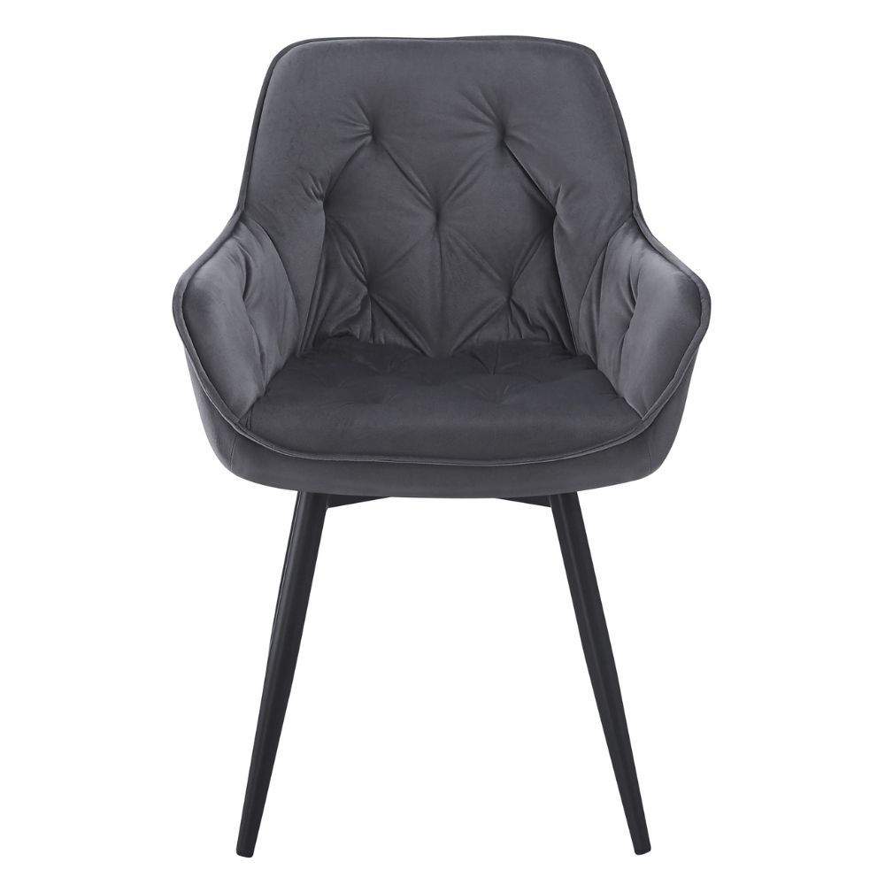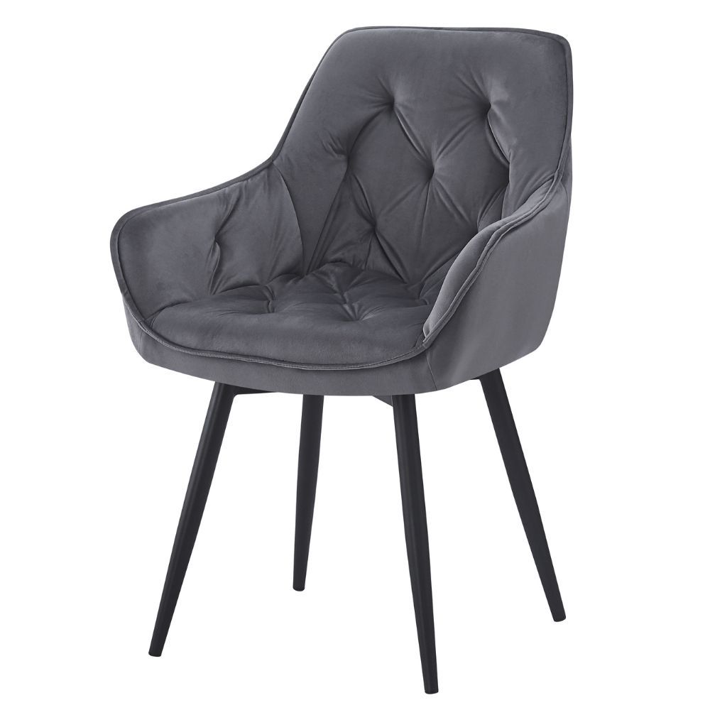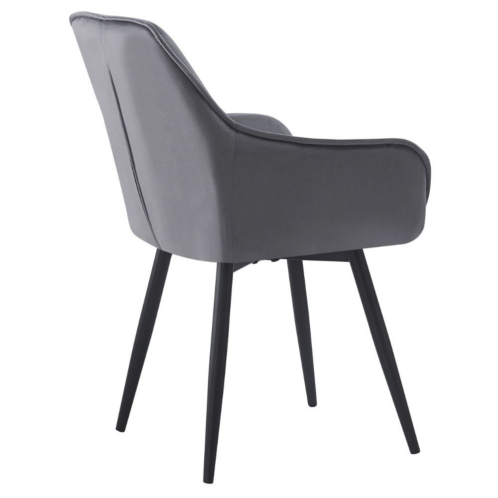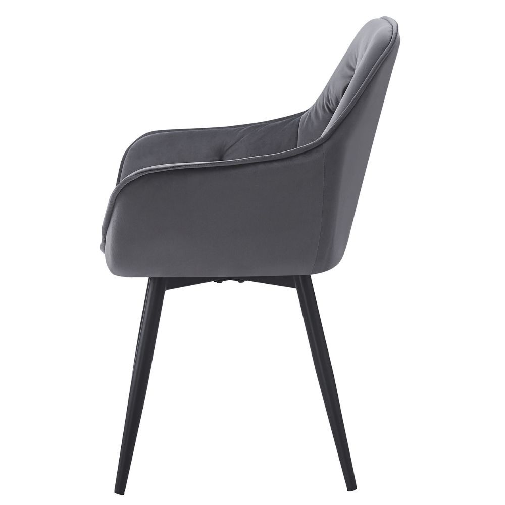 Design Drehstuhl UDINA dunkel-grau Samt Armlehne gepolstert Ziersteppung Metallbeine