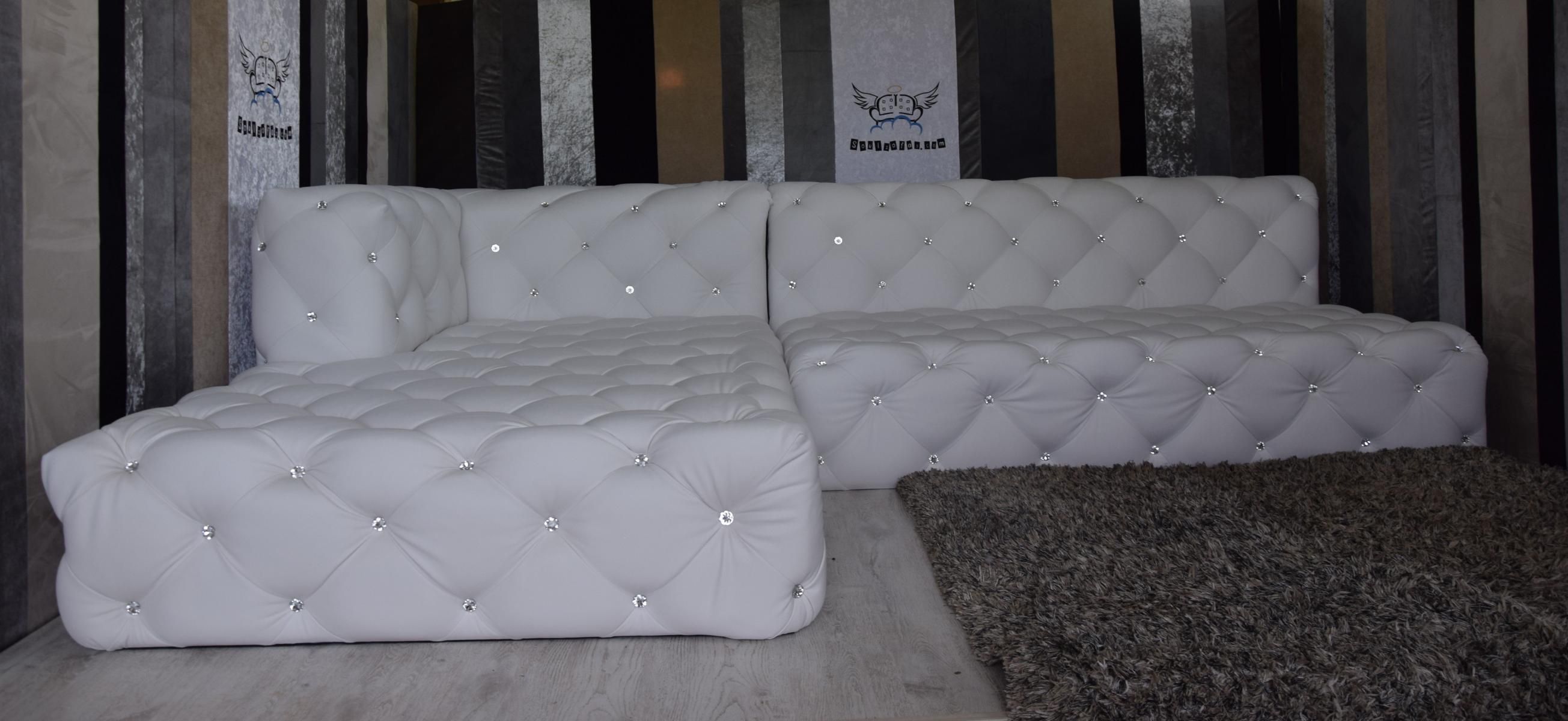 Design Ecksofa Couch Leder Polster Sofa Eckgarnitur Kristallsteine Ecksofa Neu