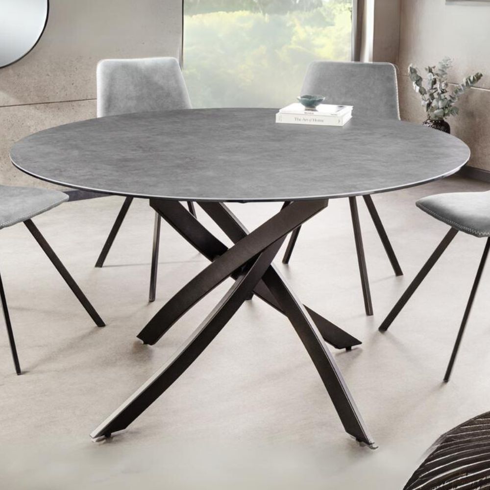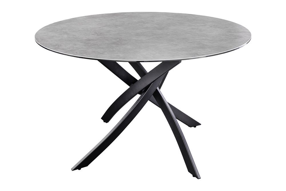 Design Esstisch AMICA 120cm anthrazit Beton-Optik Keramik schwarzes Metall-Gestell