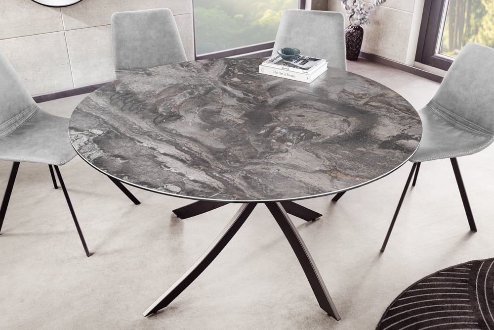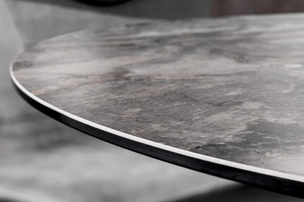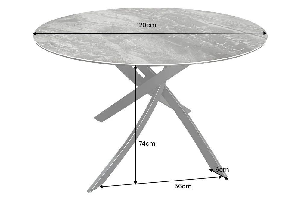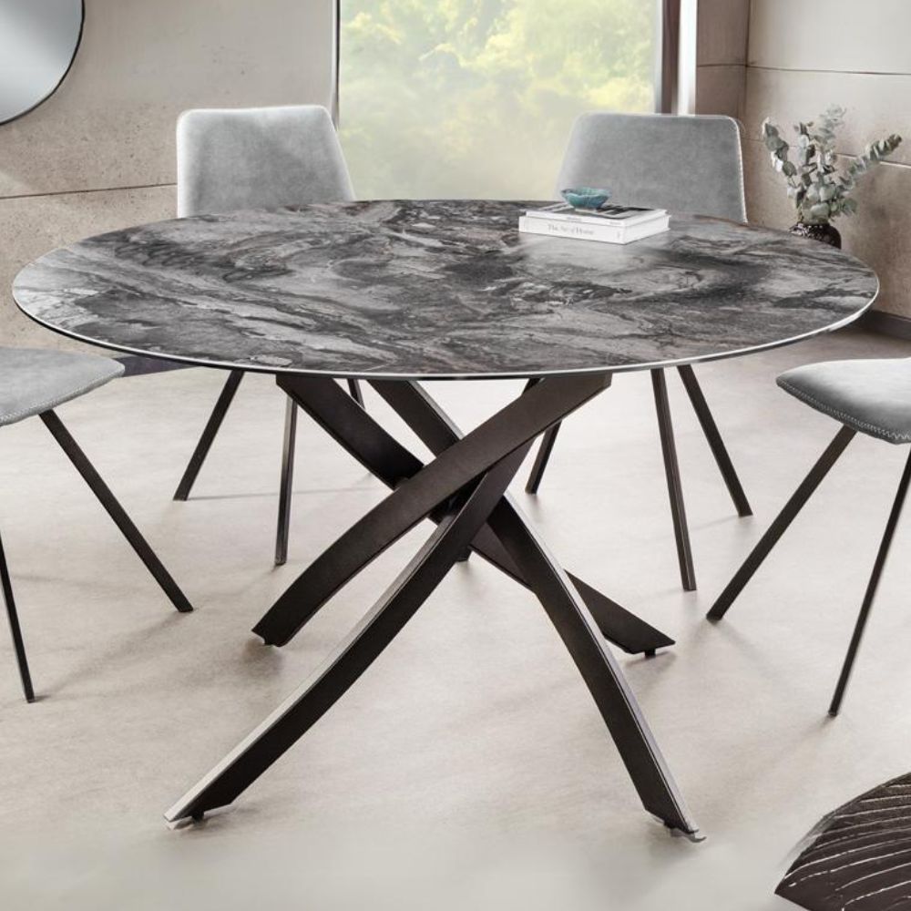 Design Esstisch AMICA 120cm taupe Marmor-Optik Keramik schwarzes Metall-Gestell