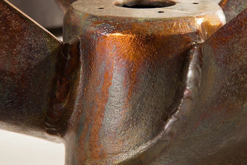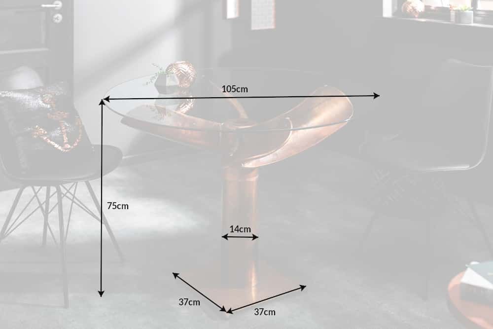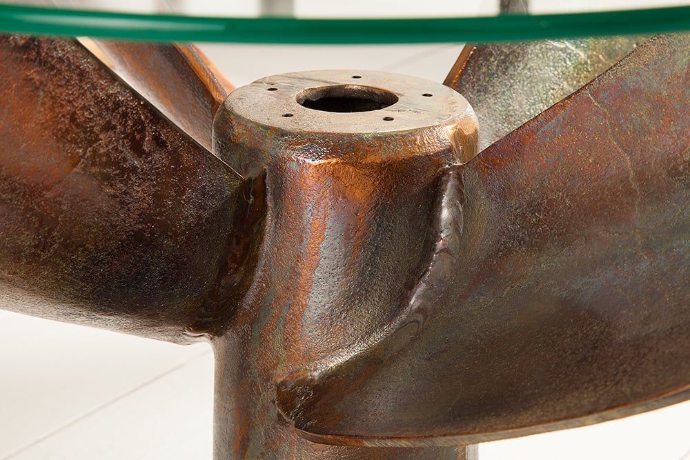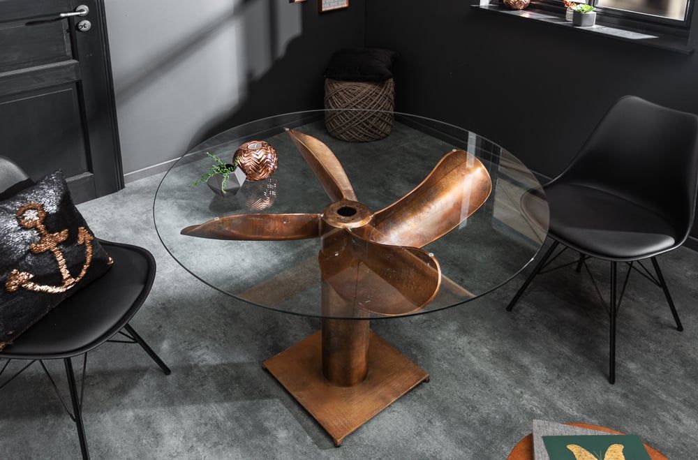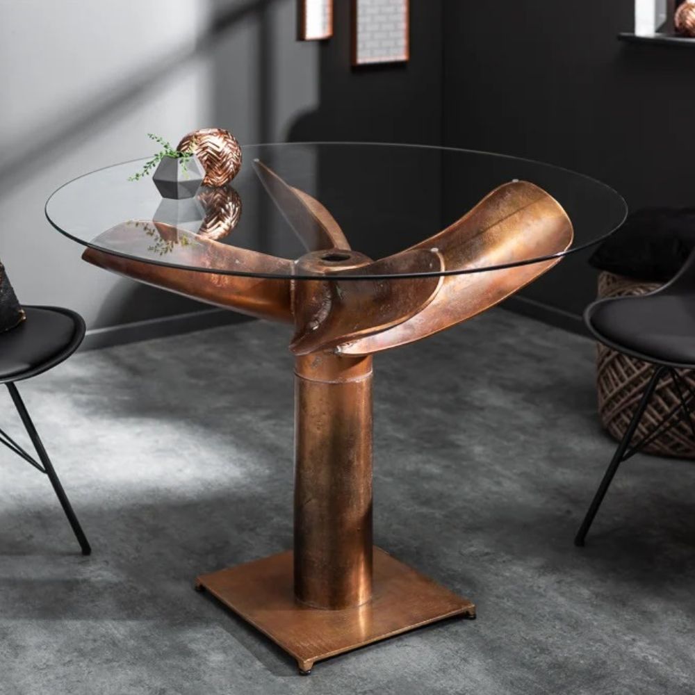 Design Esstisch ELICA 100cm kupfer Aluminium Schiffsschraube Maritim Glasplatte