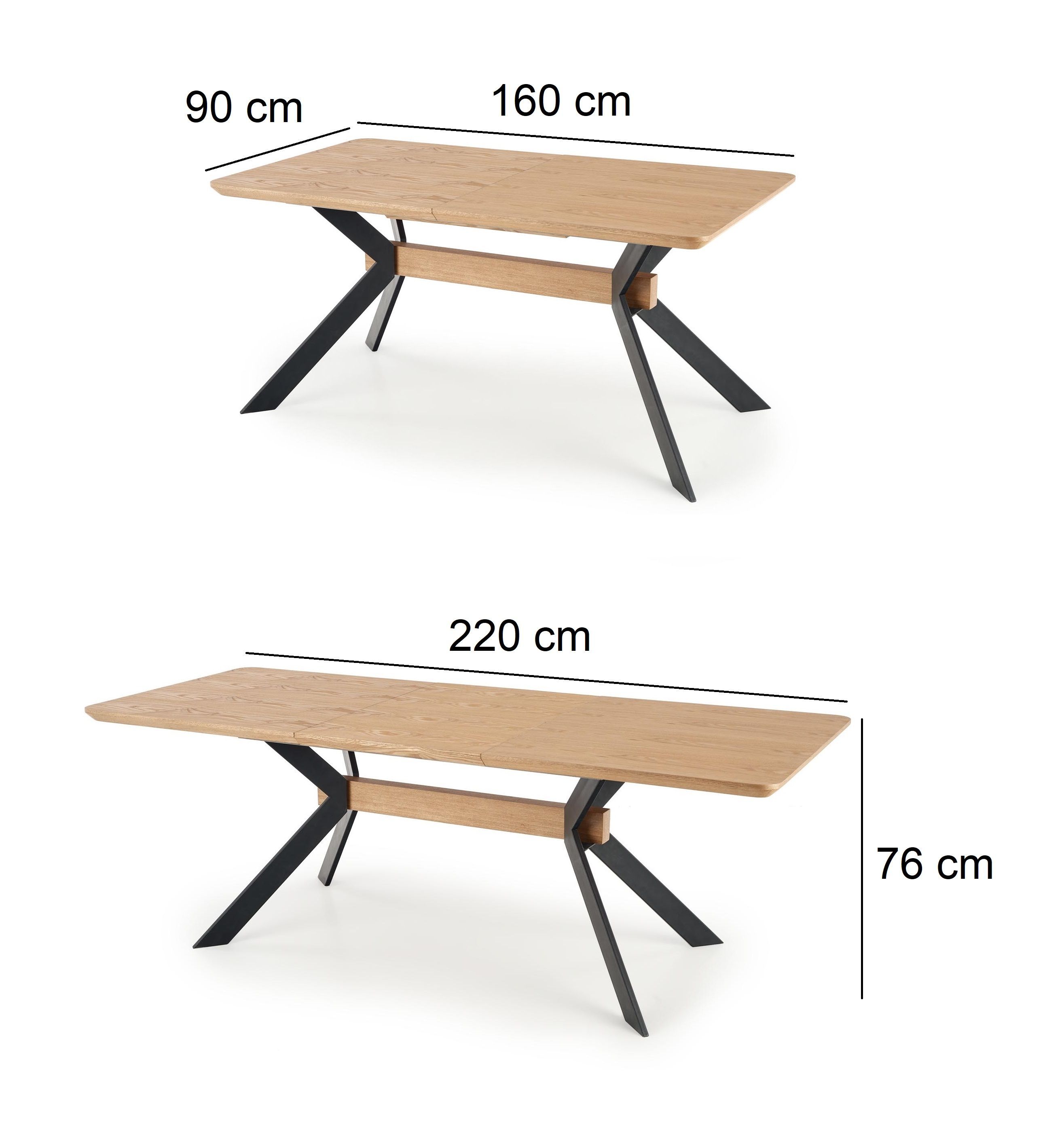 Design Esstisch HAB-222 Eiche Natur - Schwarz matt ausziehbar 160-220cm