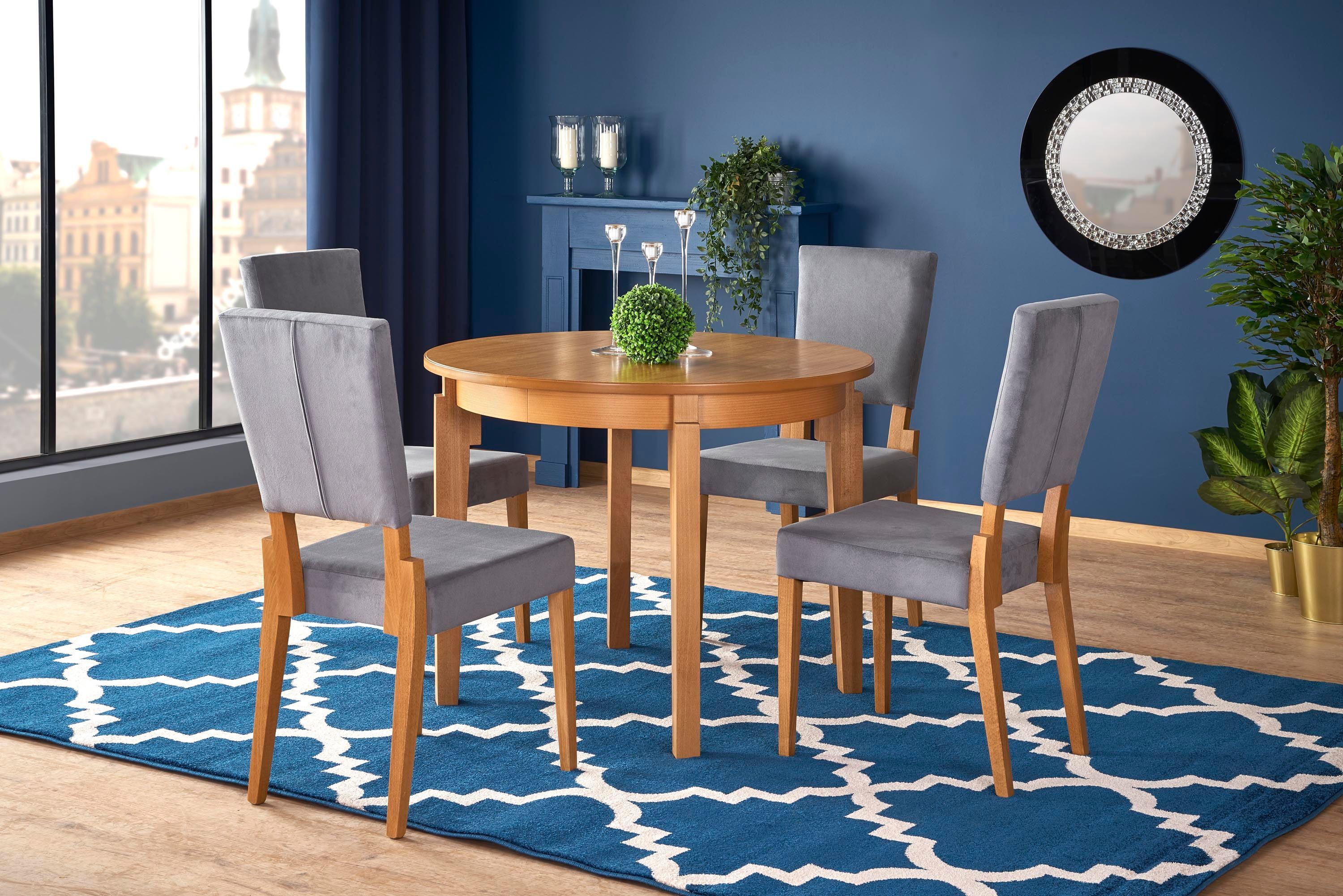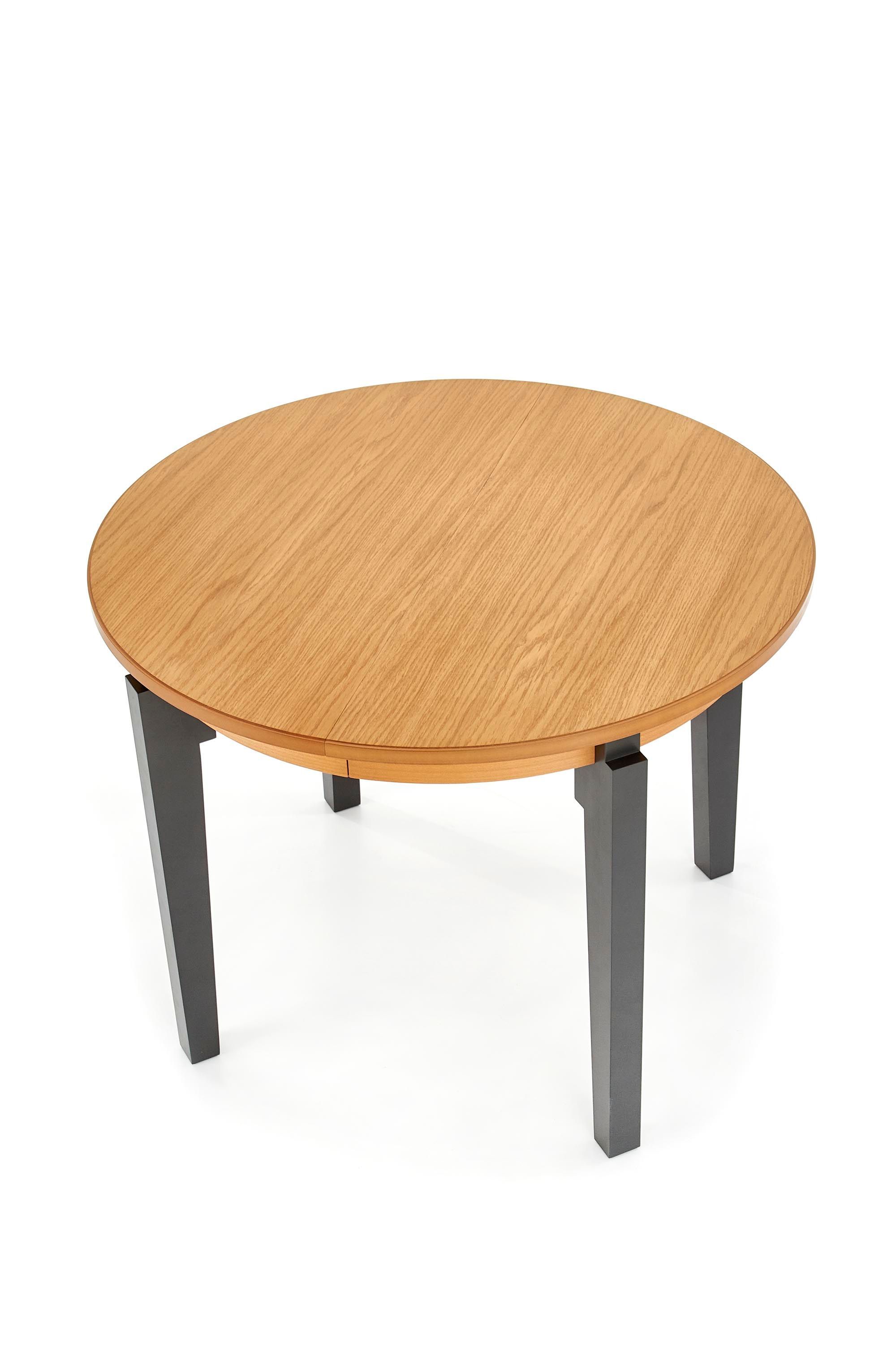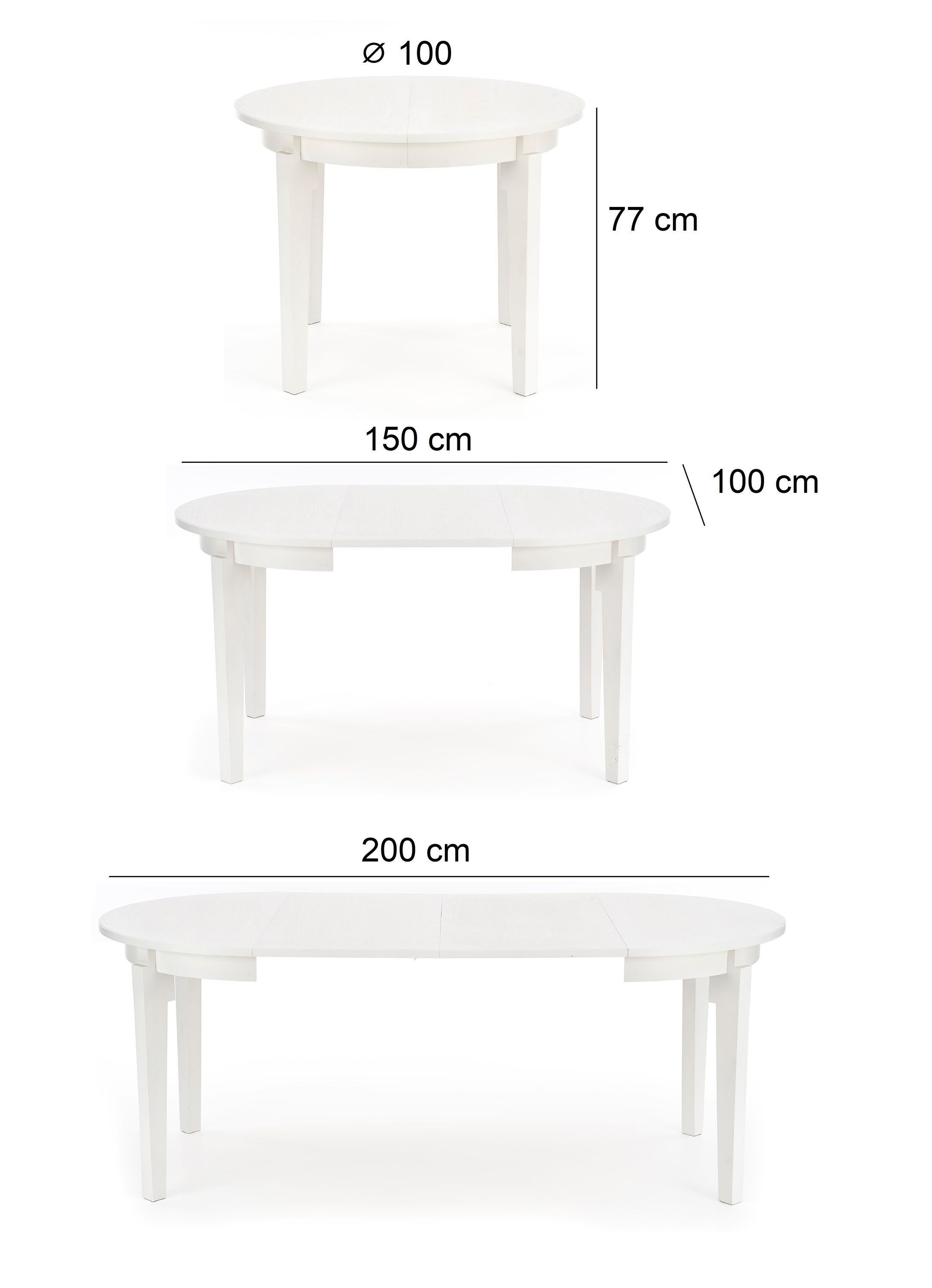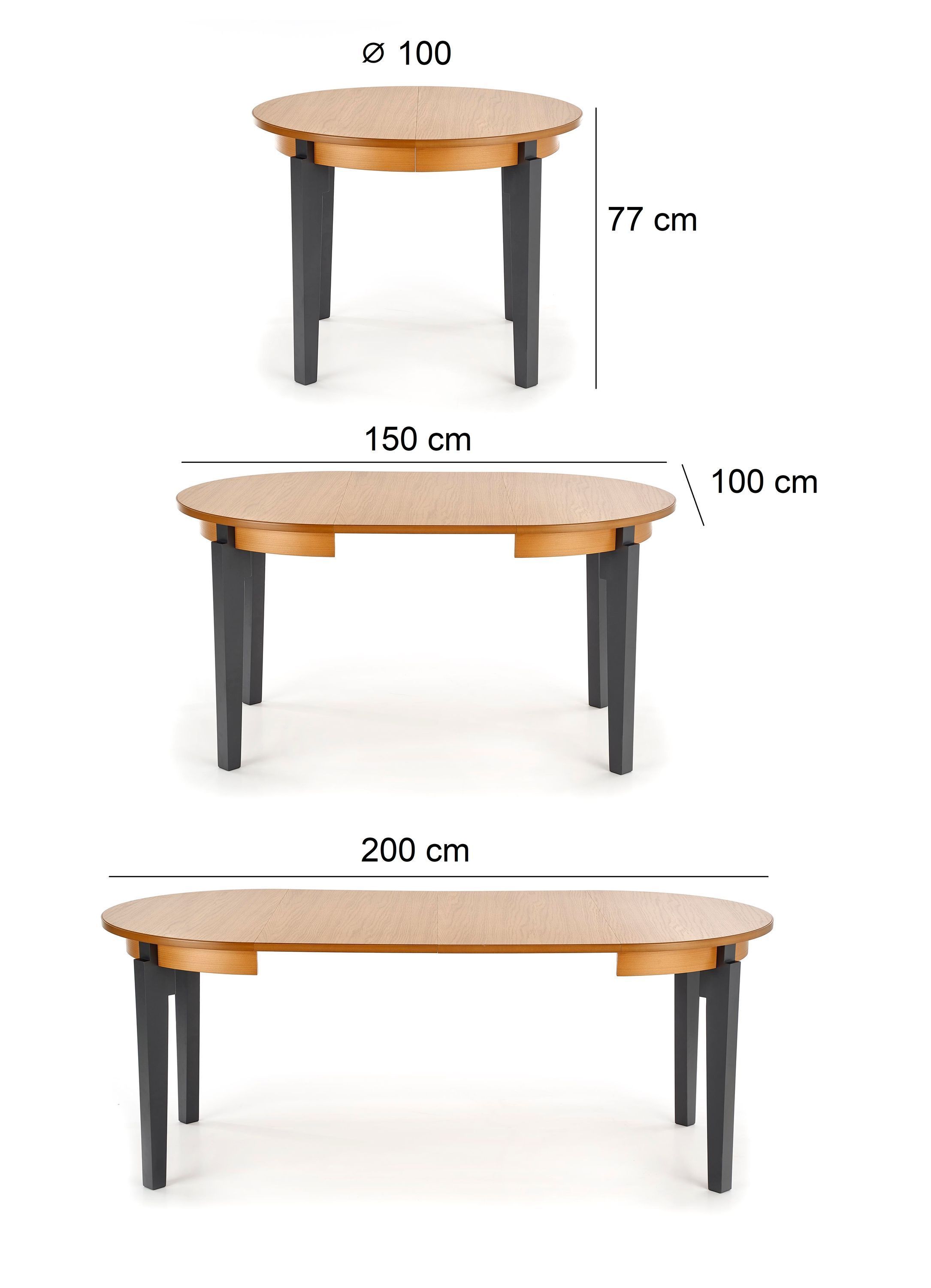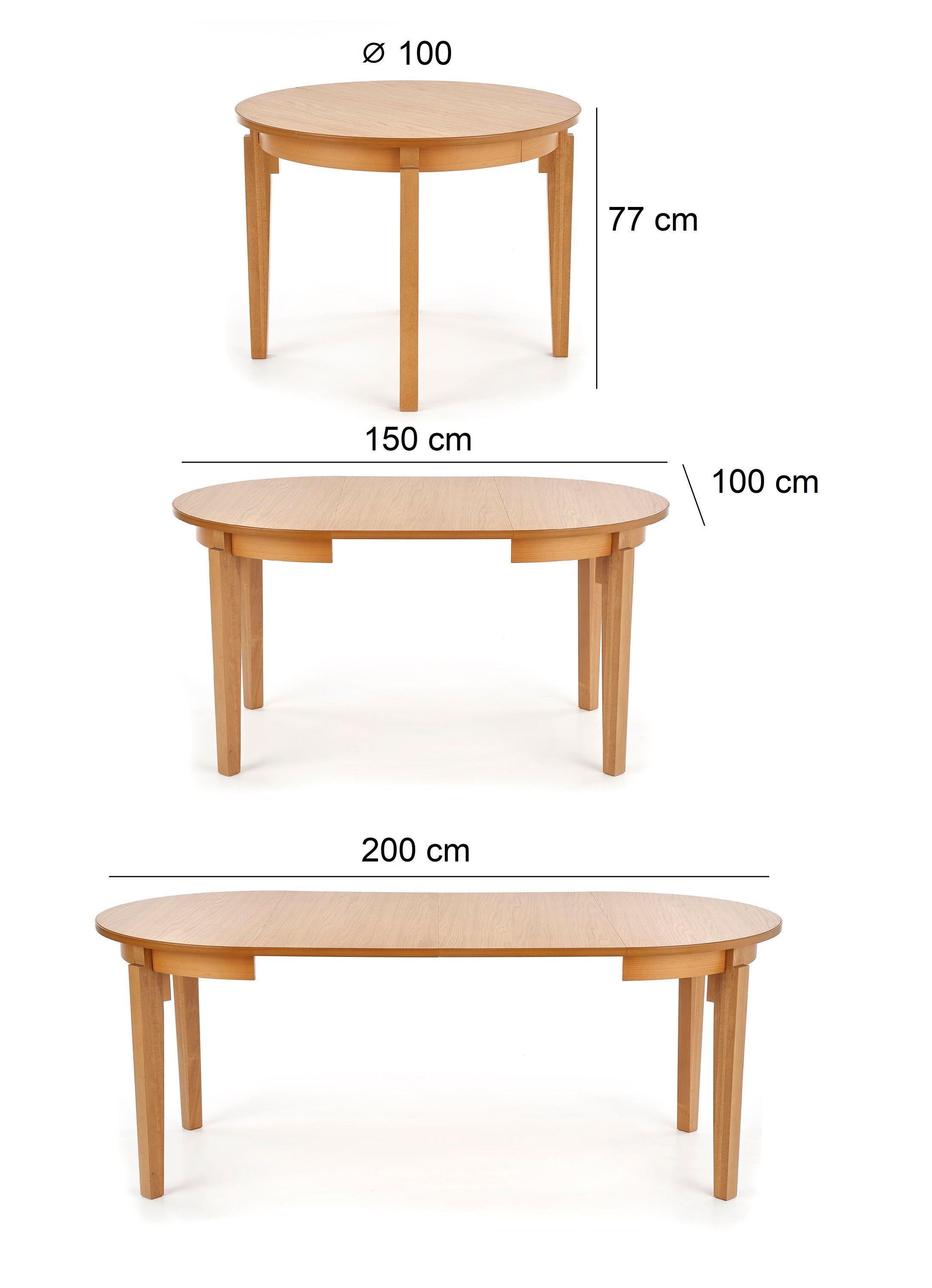 Design Esstisch rund HAS-111 Massivholz ausziehbar von 100 cm bis 200 cm (Stühle und Dekoration nicht im Lieferumfang enthalten) HOLZBEREICH: - Eiche Holzfurnier MAßE (ca.): - Breite: 100 150 200 cm (ausziehbar) - Höhe: 77 cm - Tiefe: 100 cm - Gewicht: ca. 48 kg - wird vormontiert geliefert (nach ca