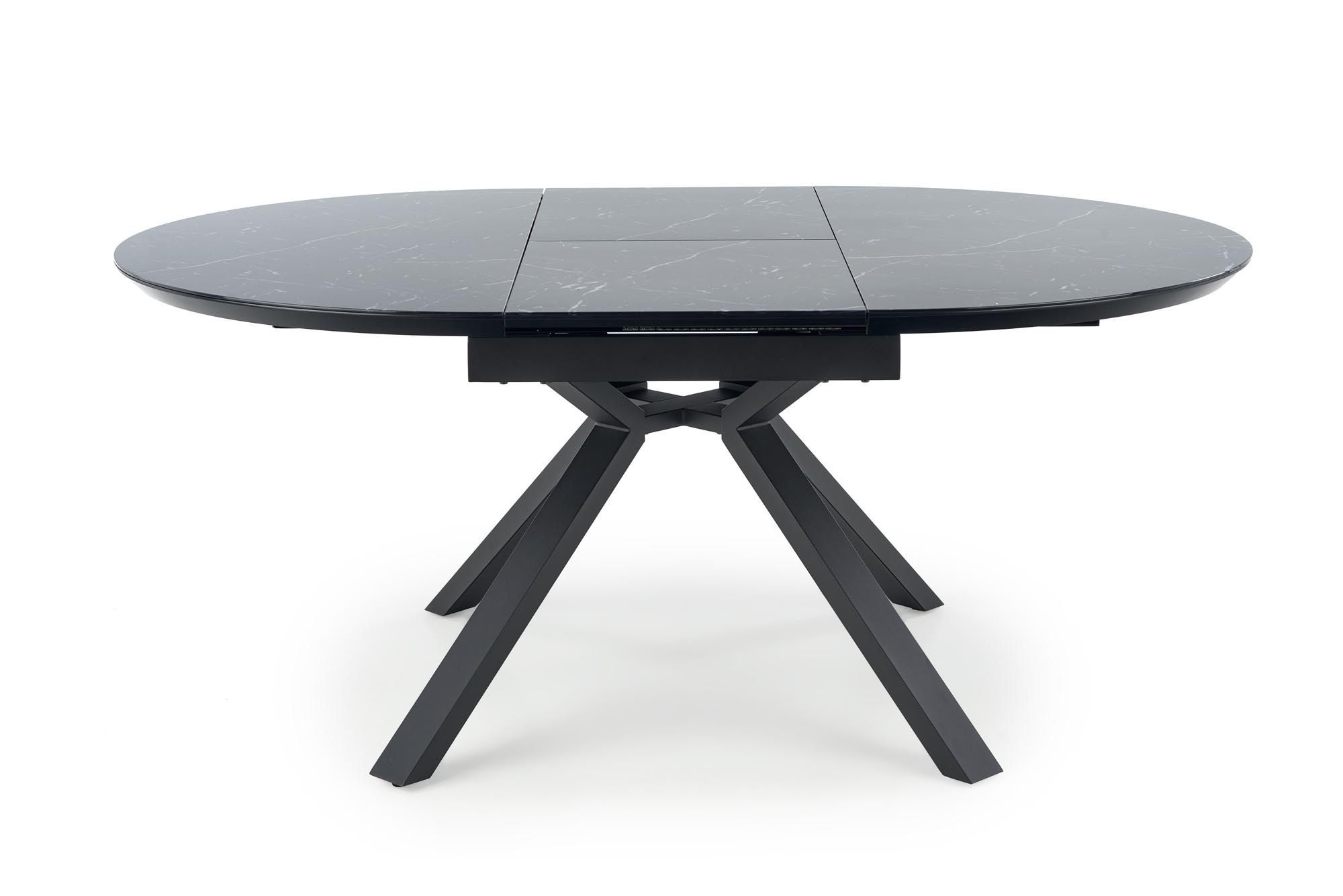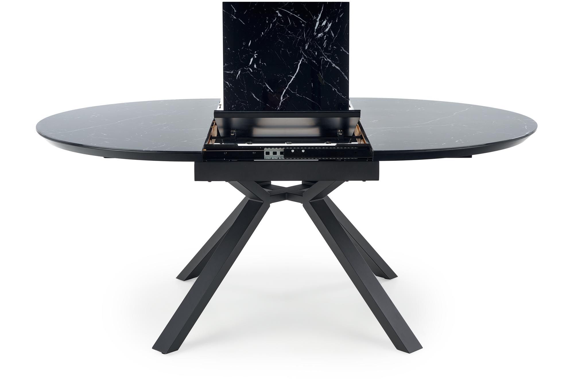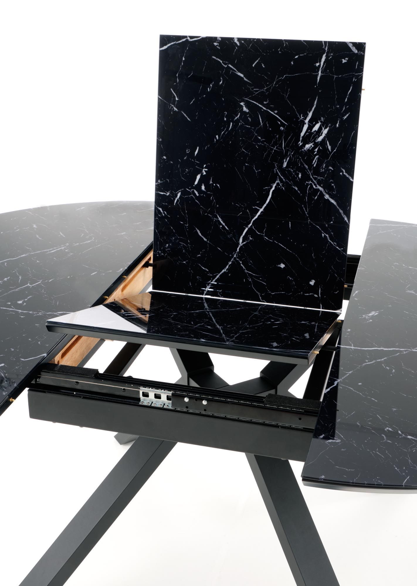 Design Esstisch rund HA-500 Glasplatte Marmor Schwarz ausziehbar Glas