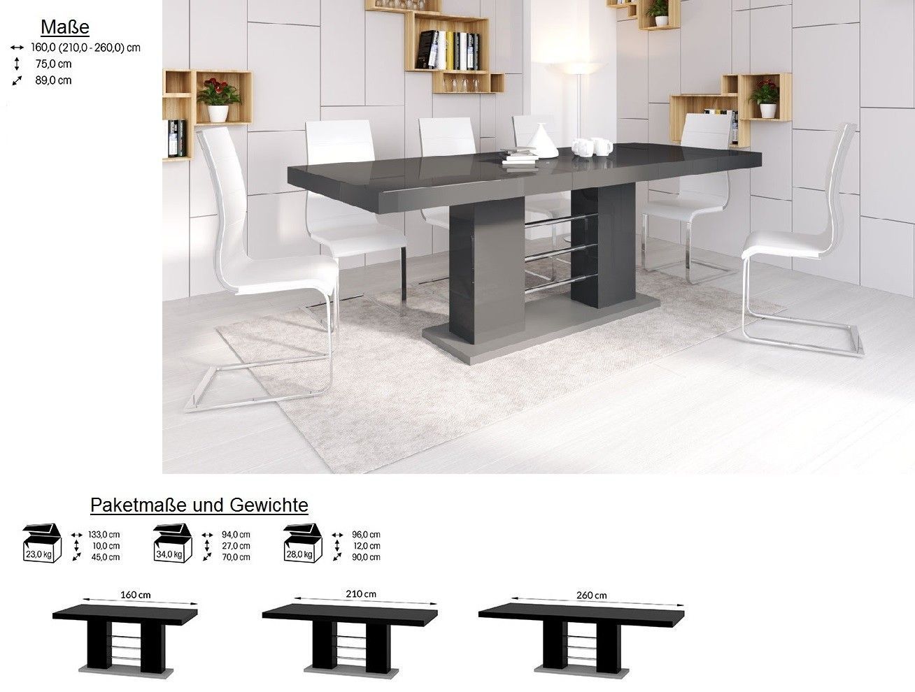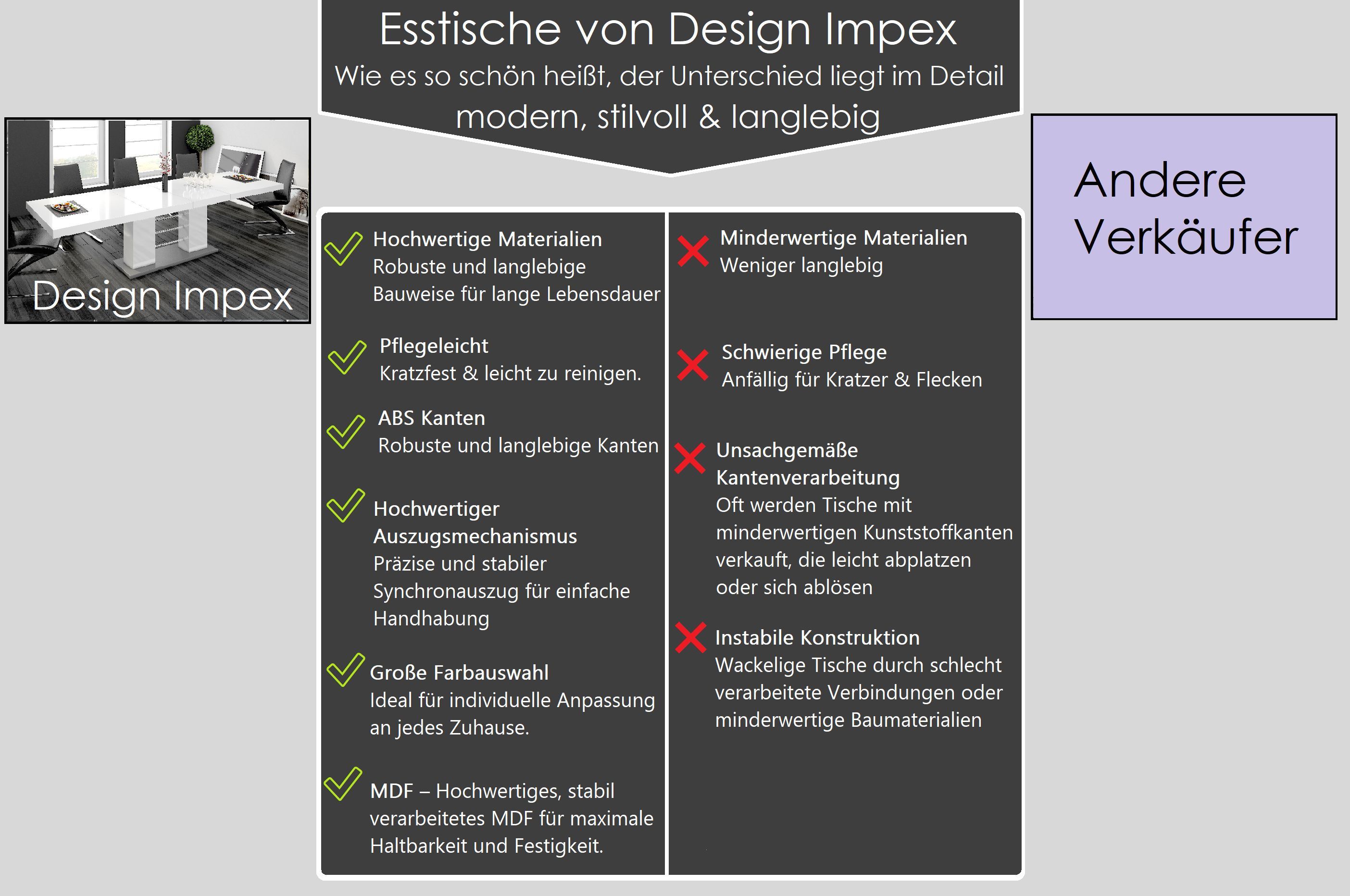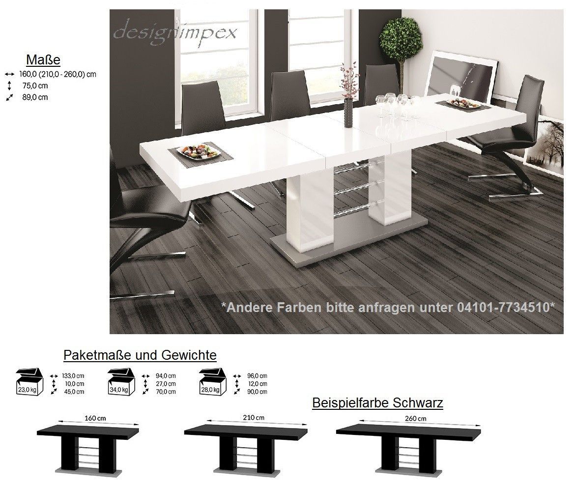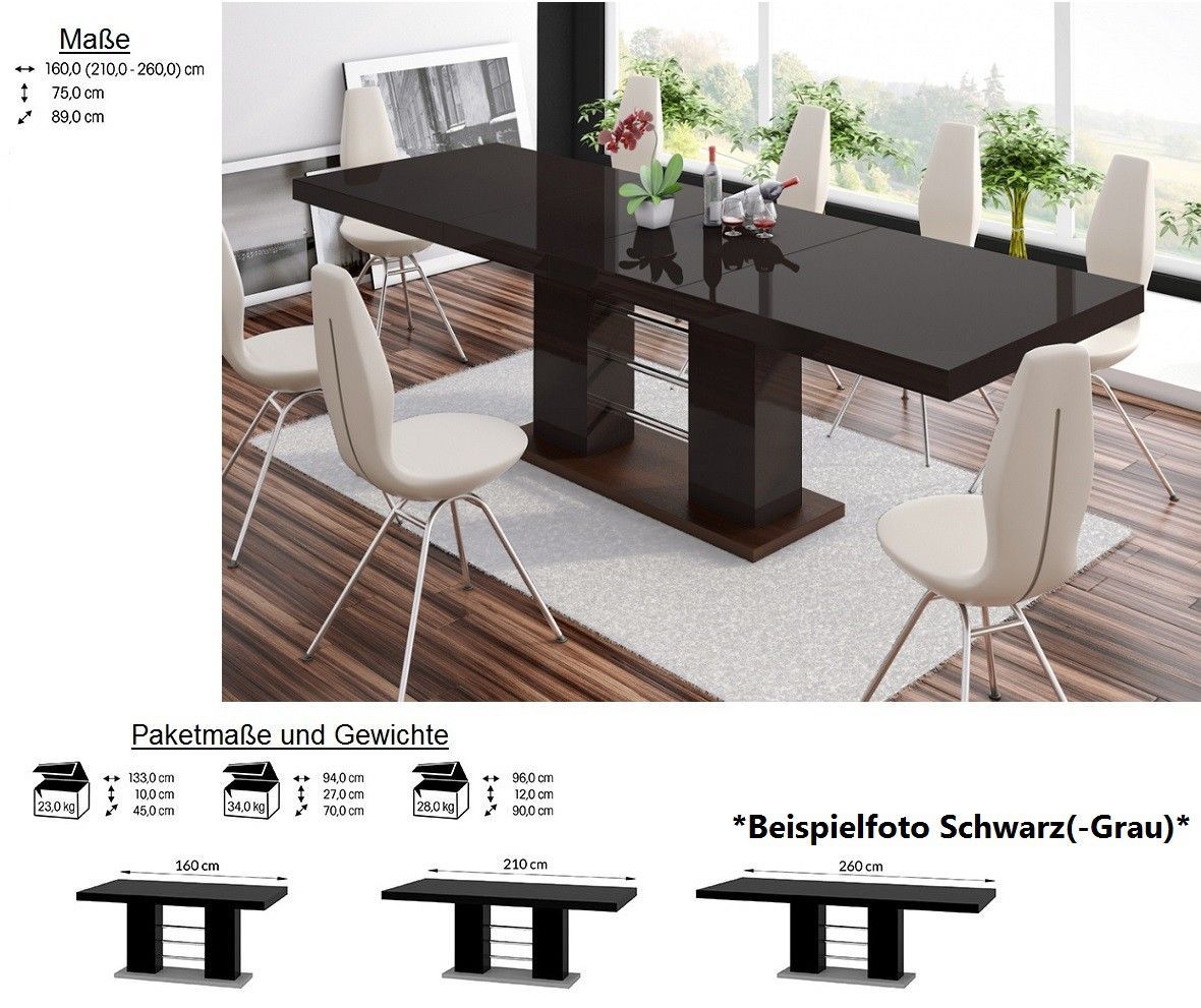 Design Esstisch Tisch HE-111 Hochglanz ausziehbar 160 bis 260 cm