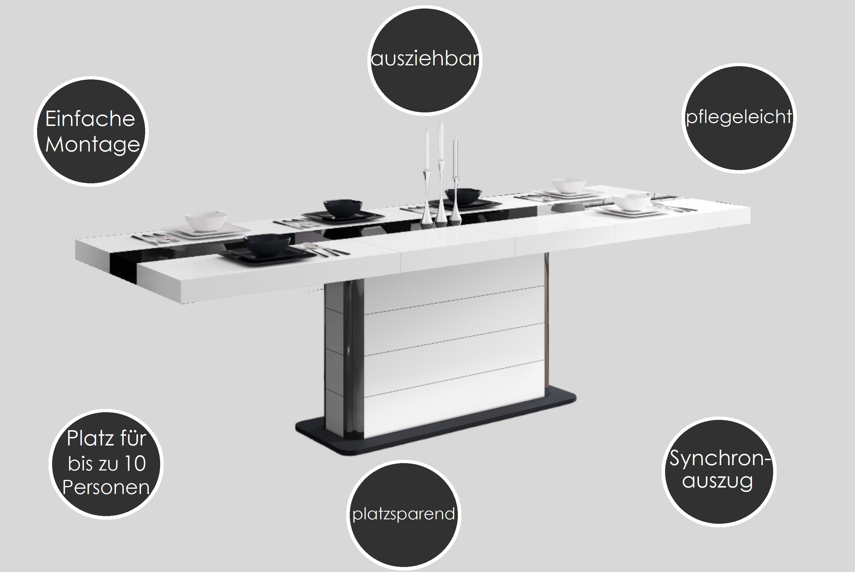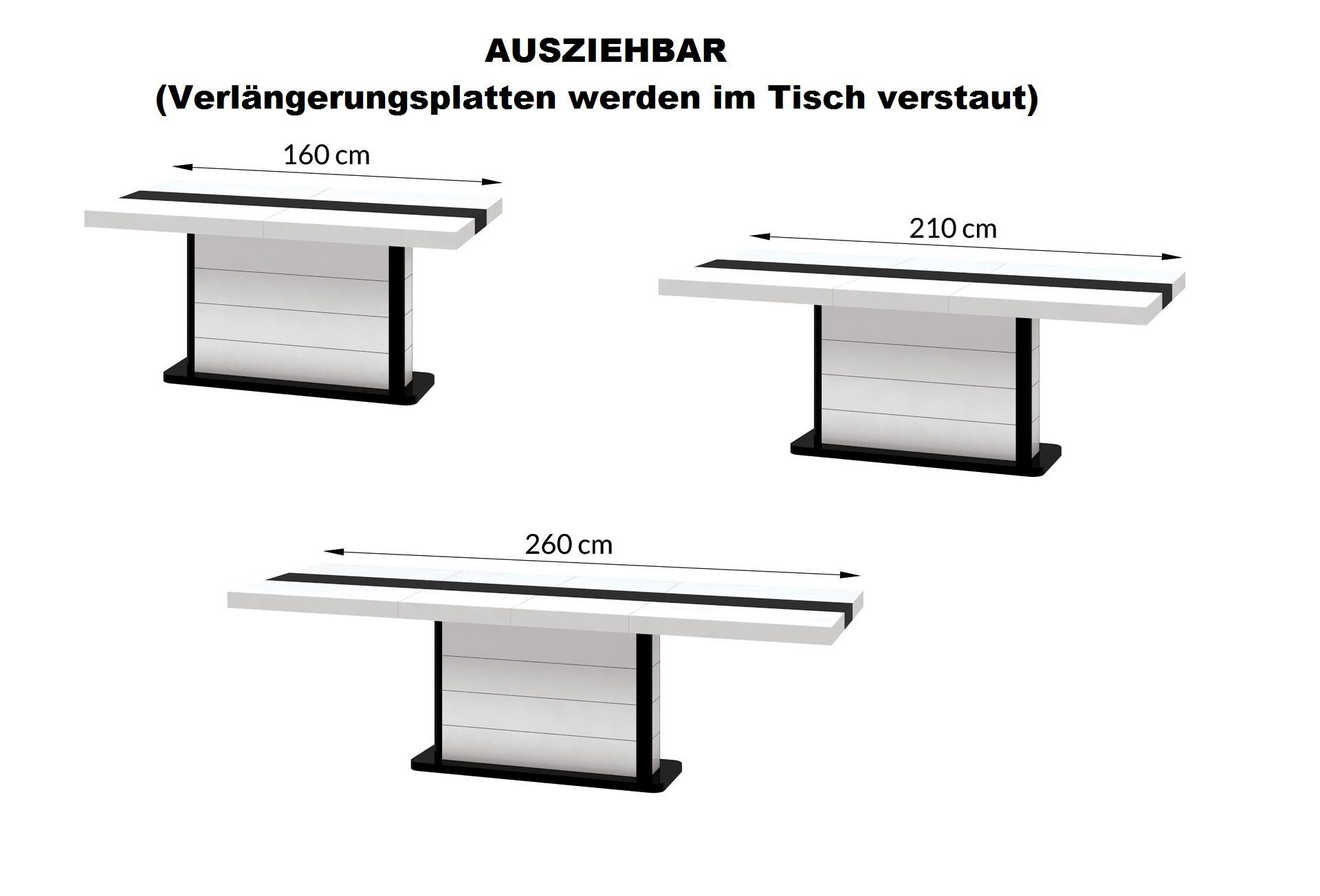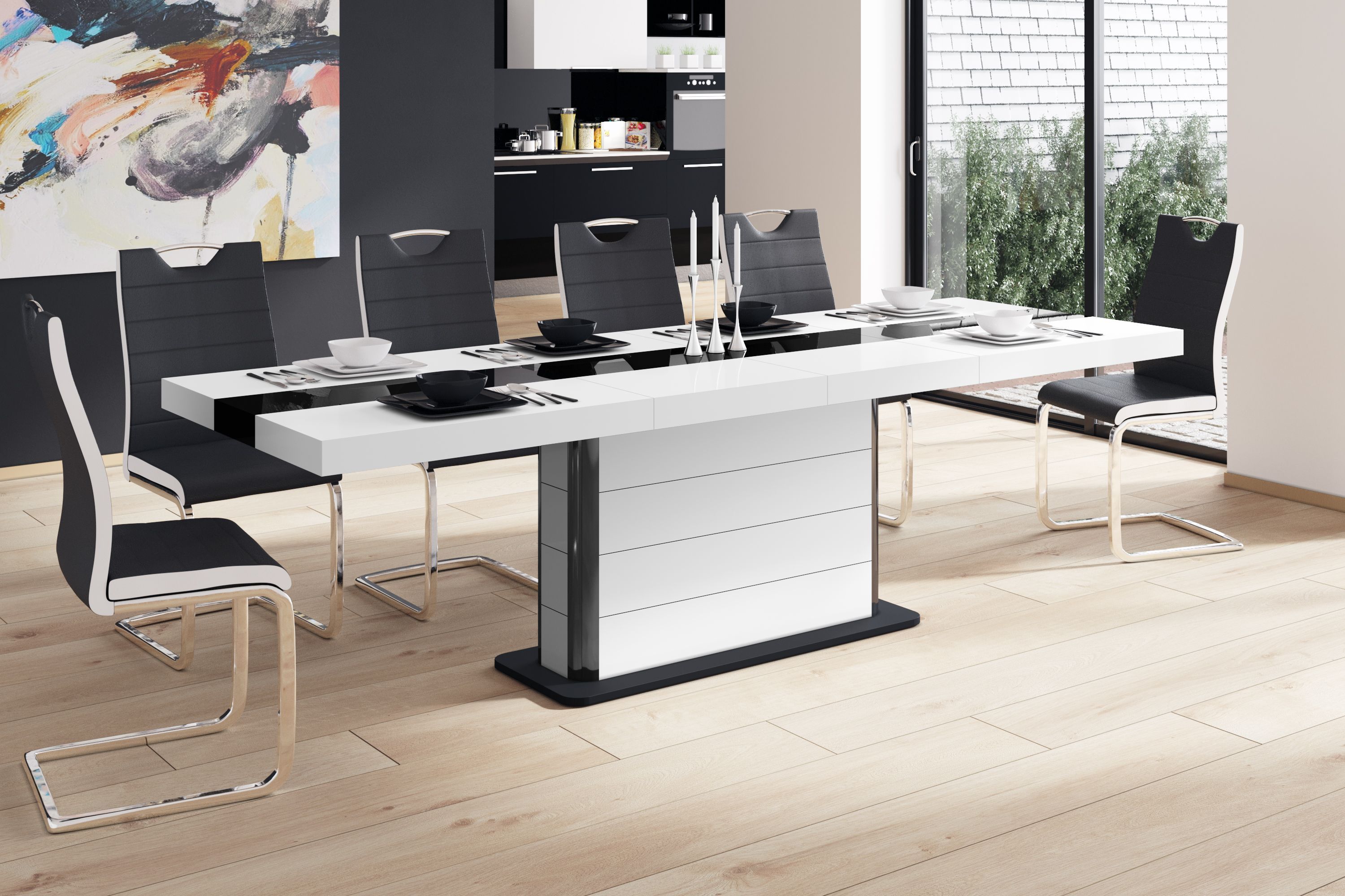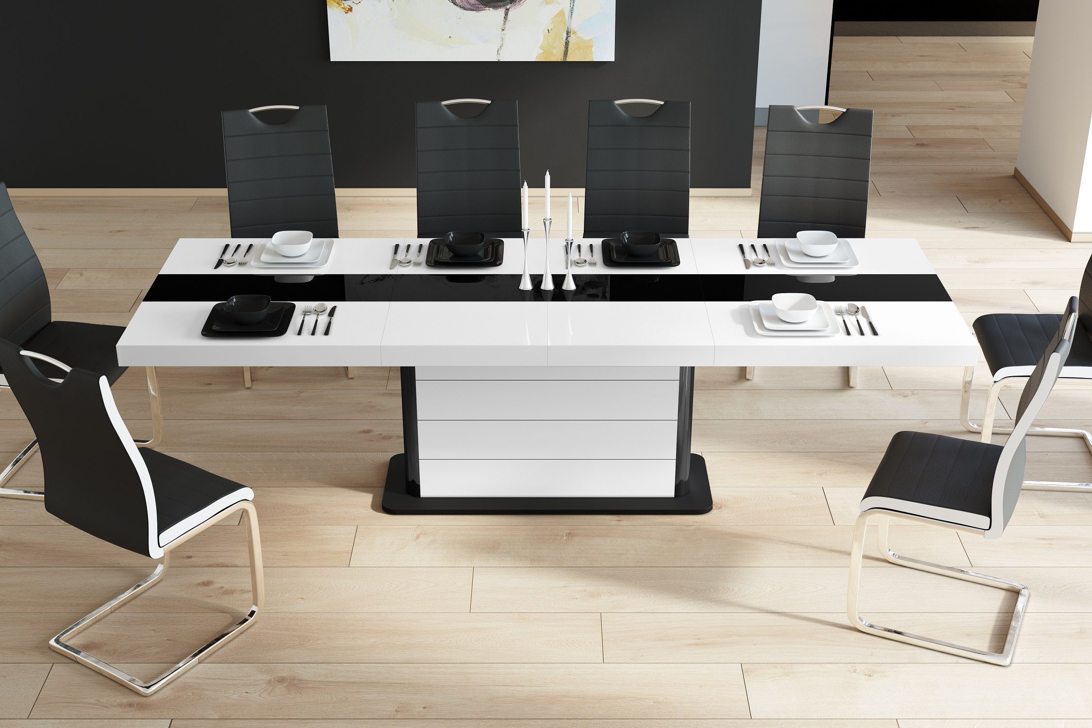 Design Esstisch Tisch HE-555 Weiß - Schwarz Hochglanz ausziehbar 160 bis 260 cm