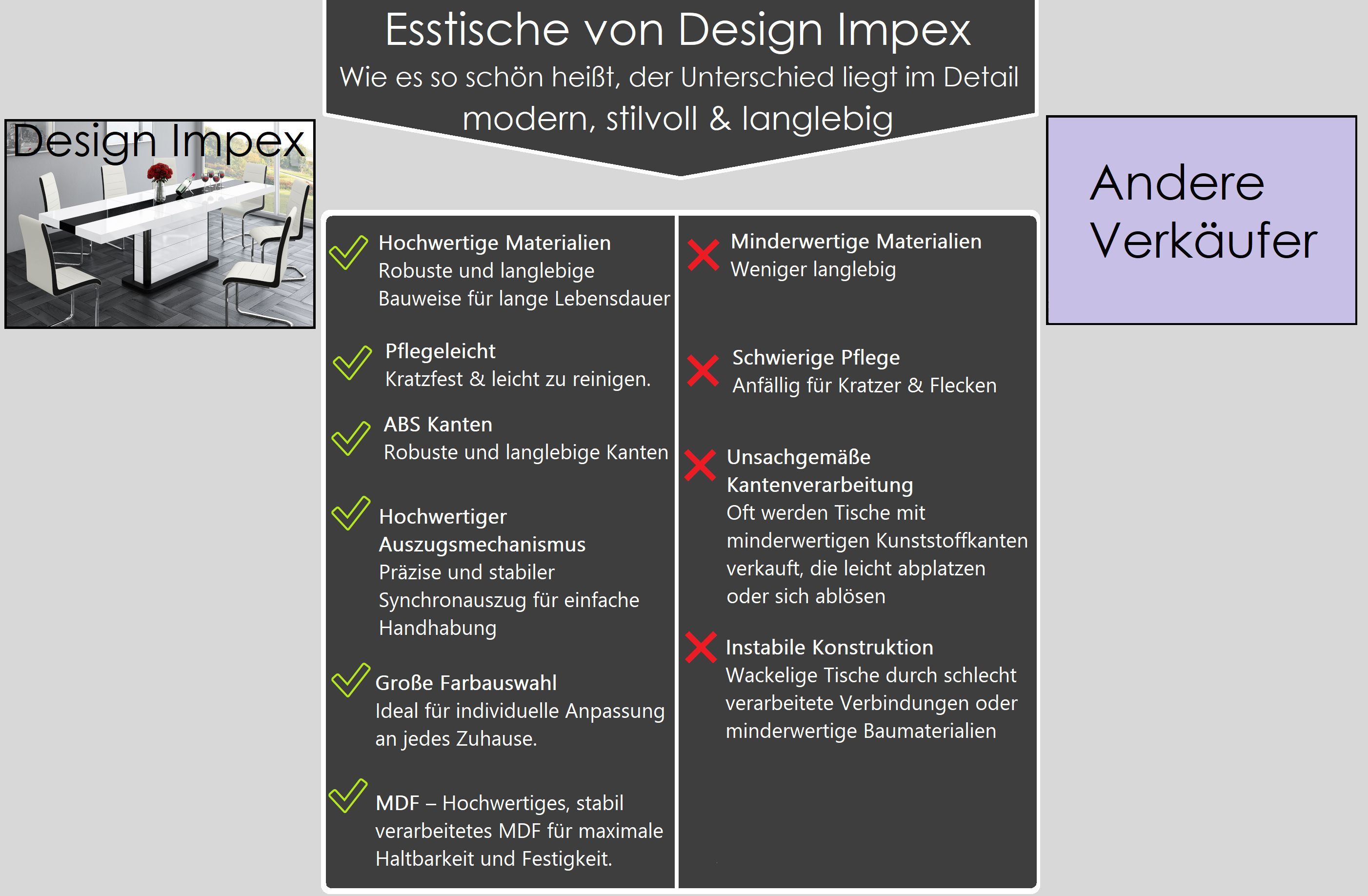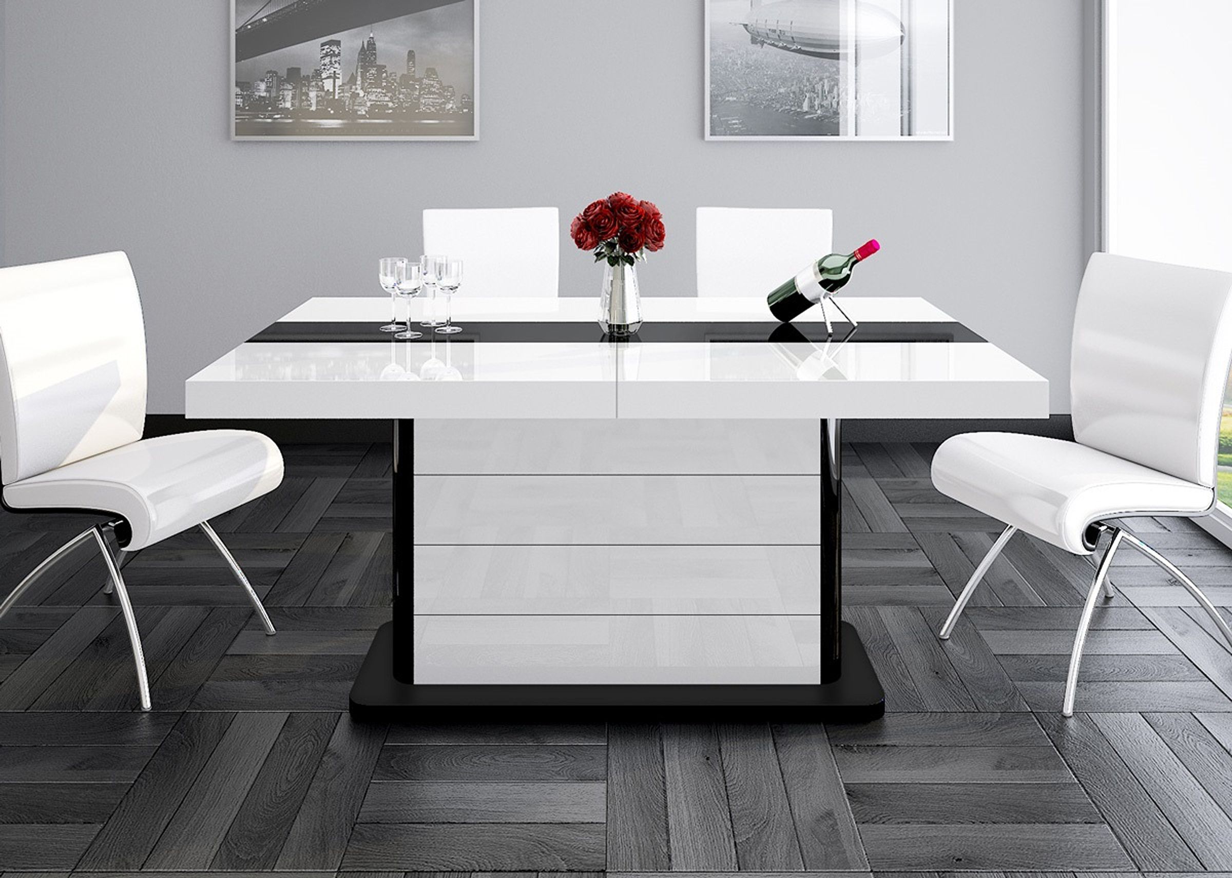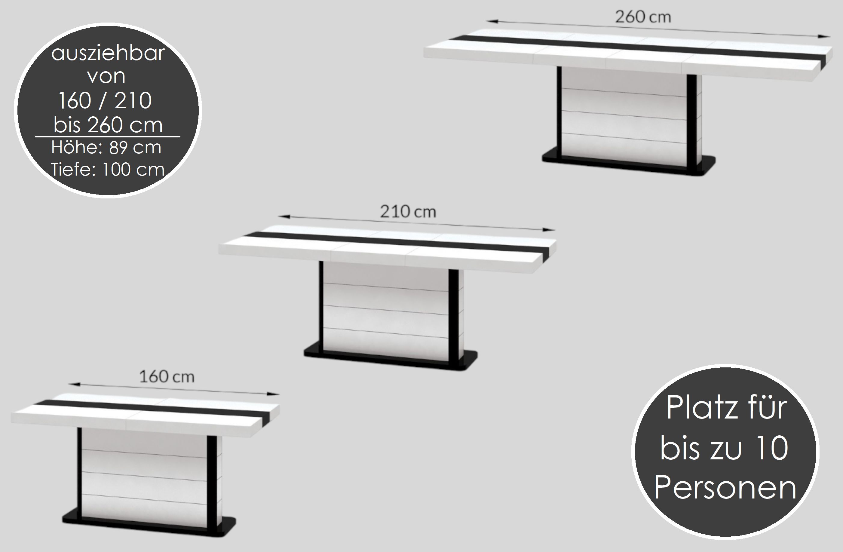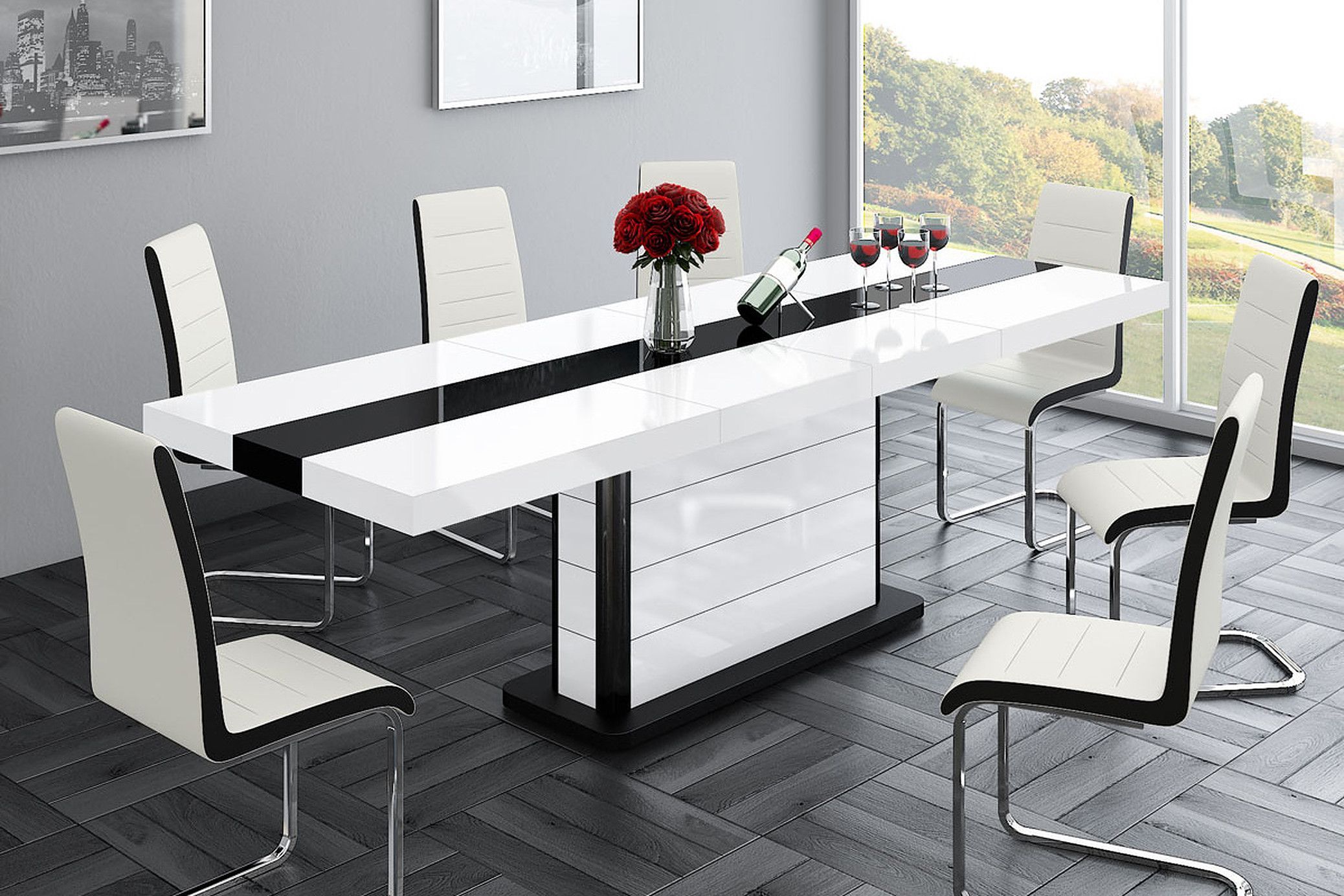 Design Esstisch Tisch HE-555 Weiß - Schwarz Hochglanz ausziehbar 160 bis 260 cm