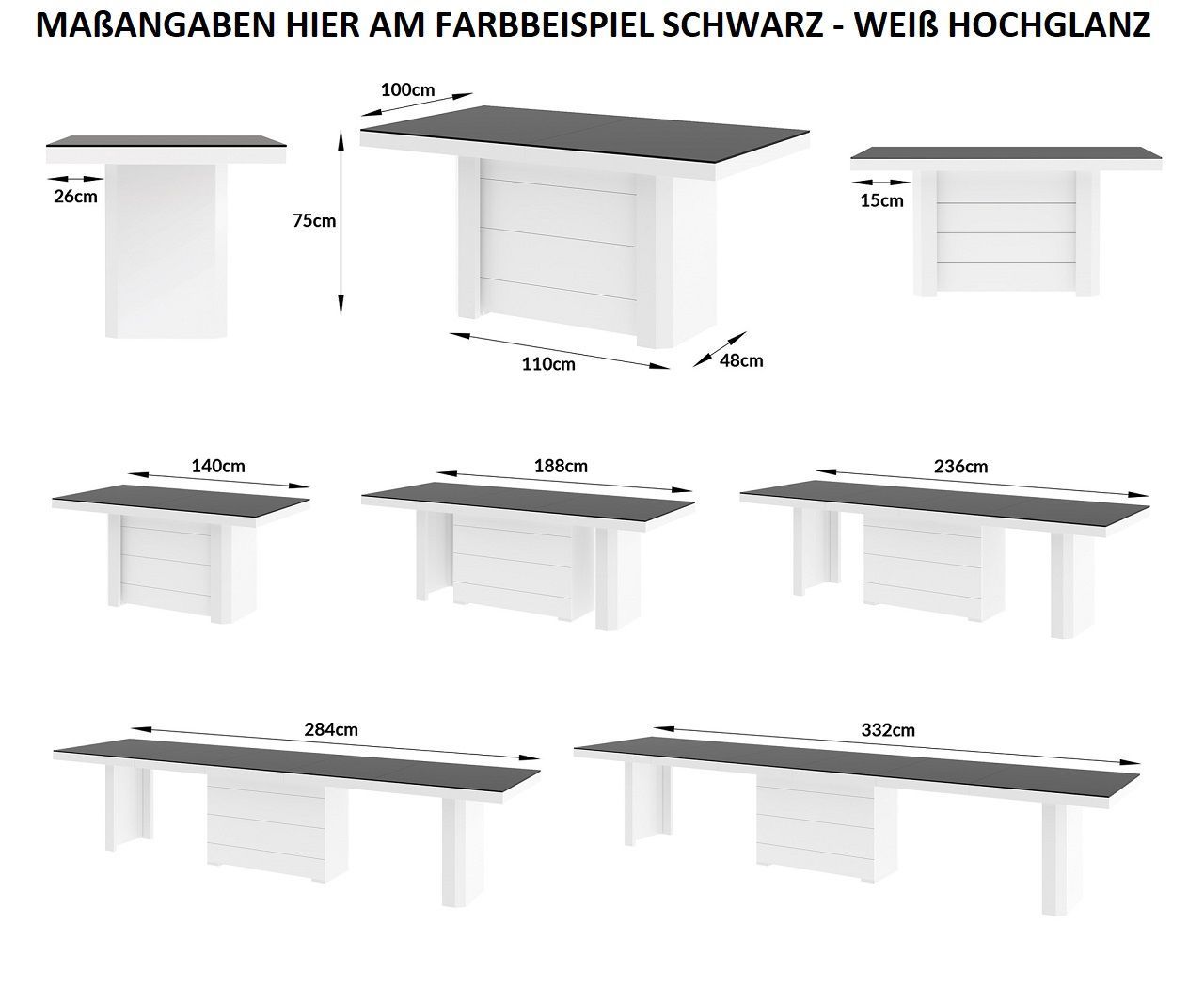 Design Esstisch Tisch HE-777 XXL ausziehbar 140 bis 332 cm