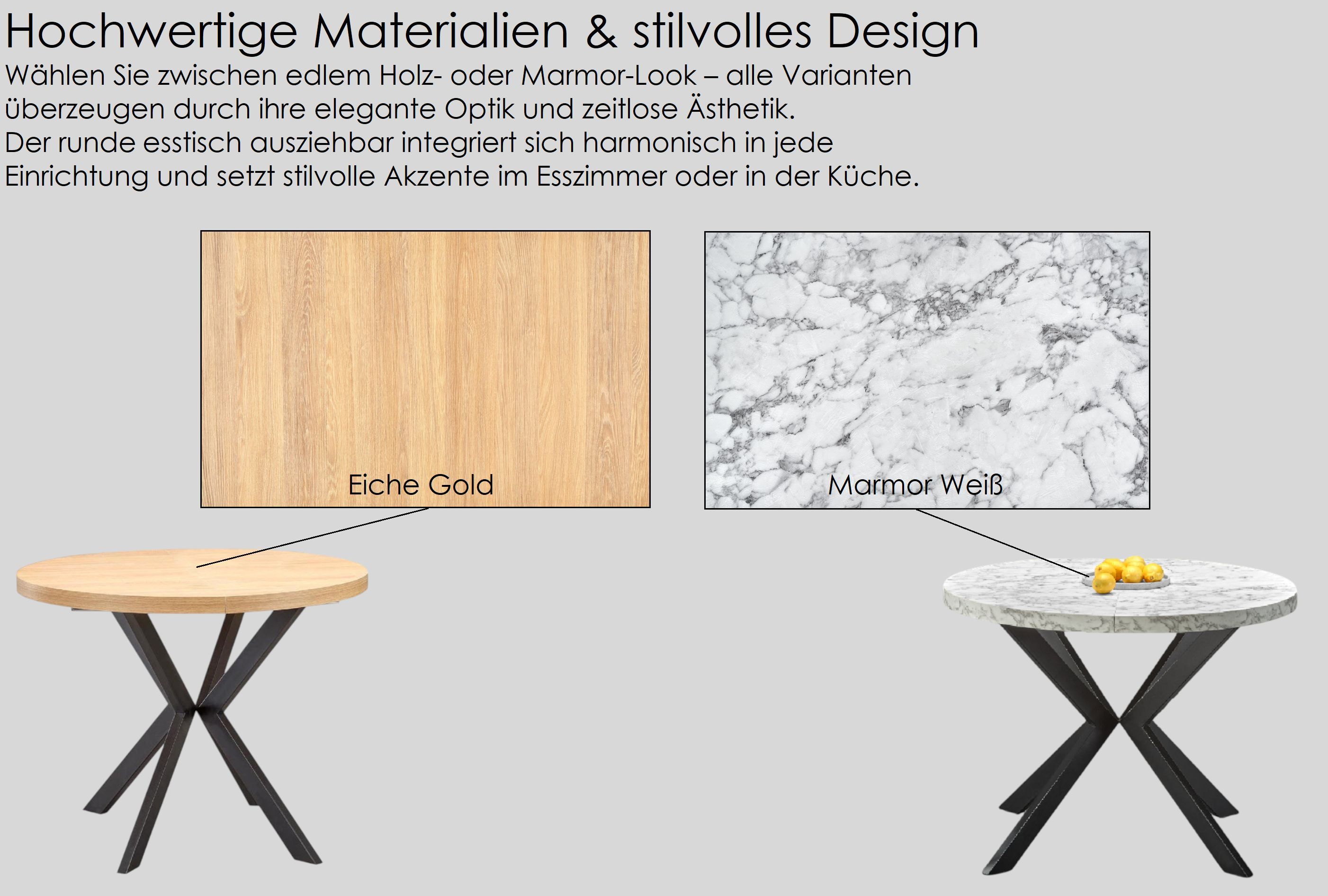 Design Esstisch Tisch rund HA-222 ausziehbar 100 - 250 cm