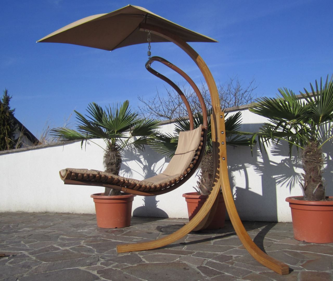 ALEOS. Coole Hängeliege mit Gestell aus Holz Lärche komplett mit Hängeliege und Dach Modell Navassa