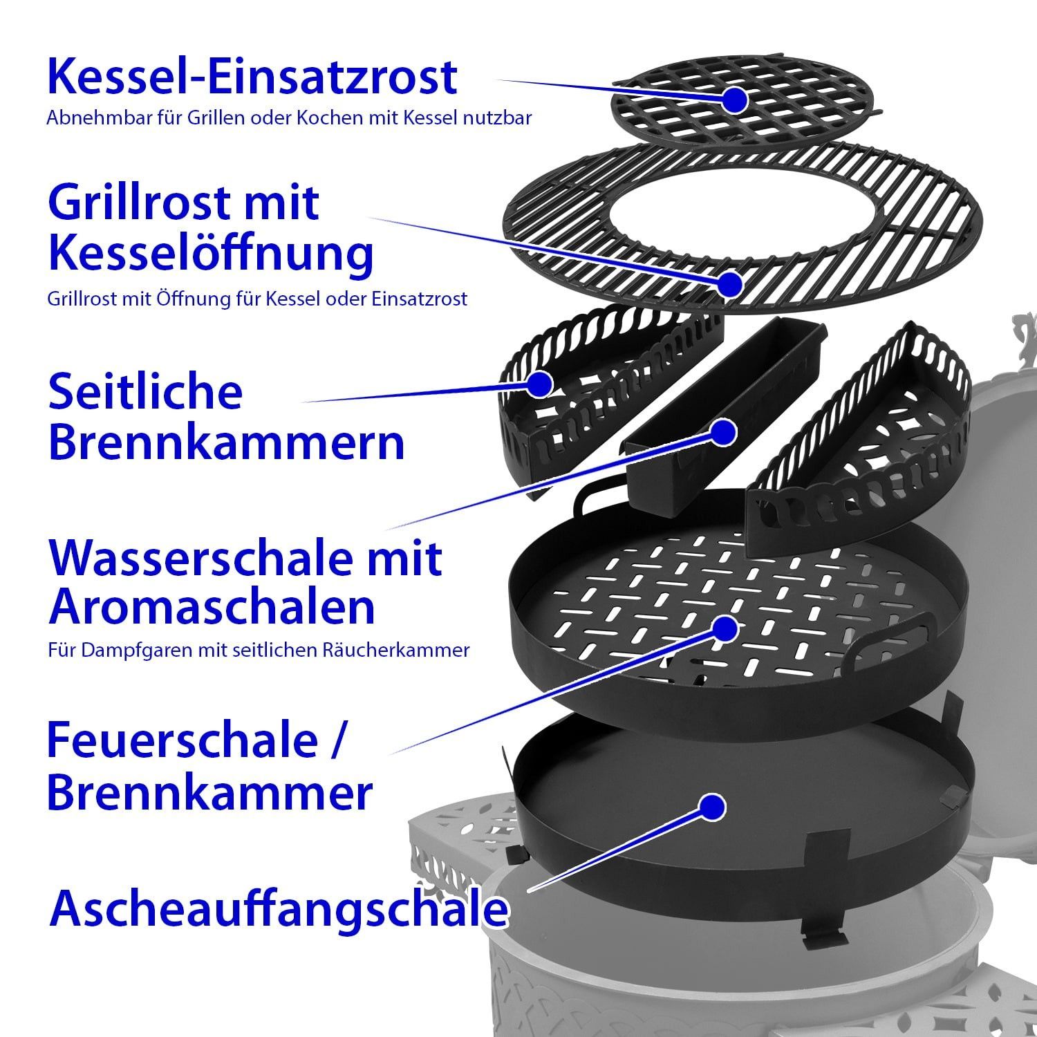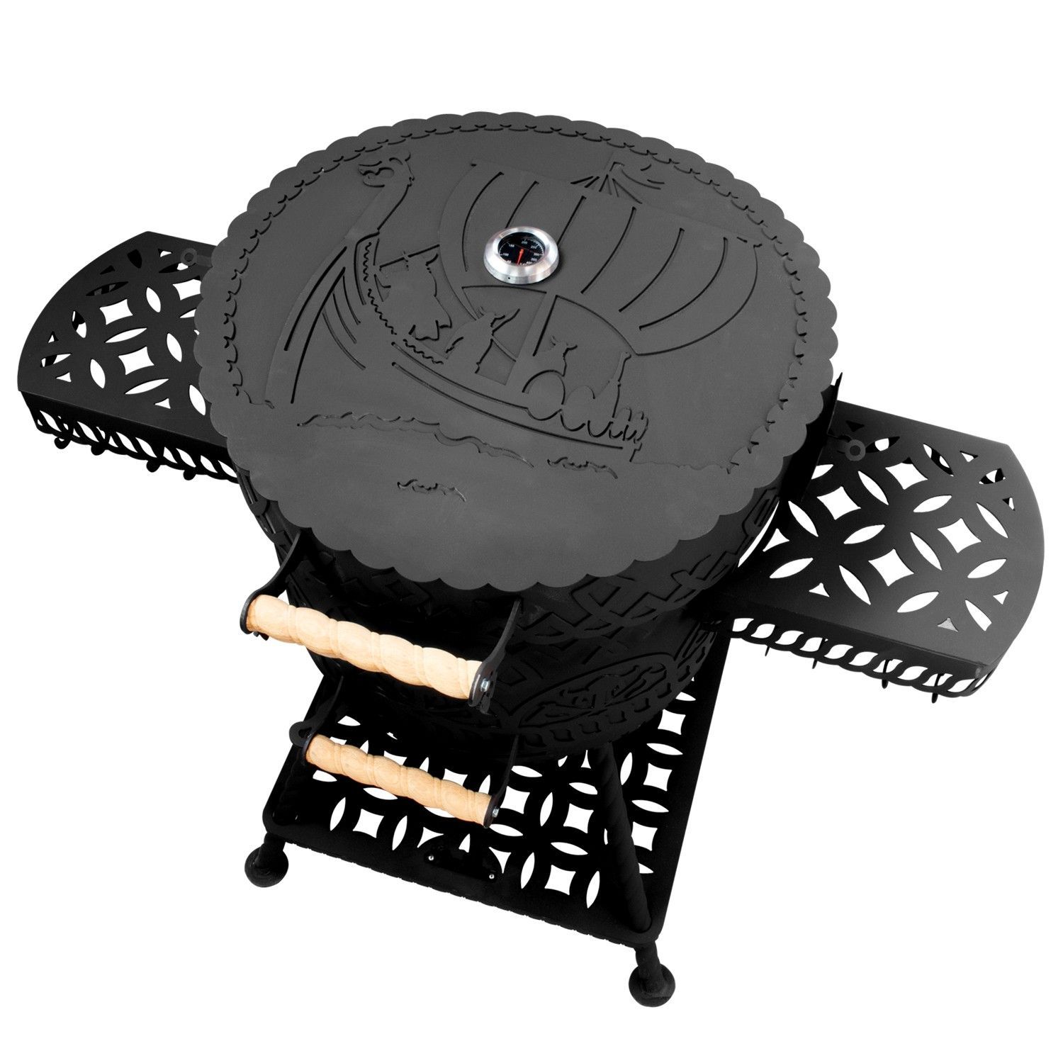 Design Holzkohlegrill Drakkar XL-Ø 54,5 cm Gussrost - Viking BBQ-Grill aus 4 mm Stahl