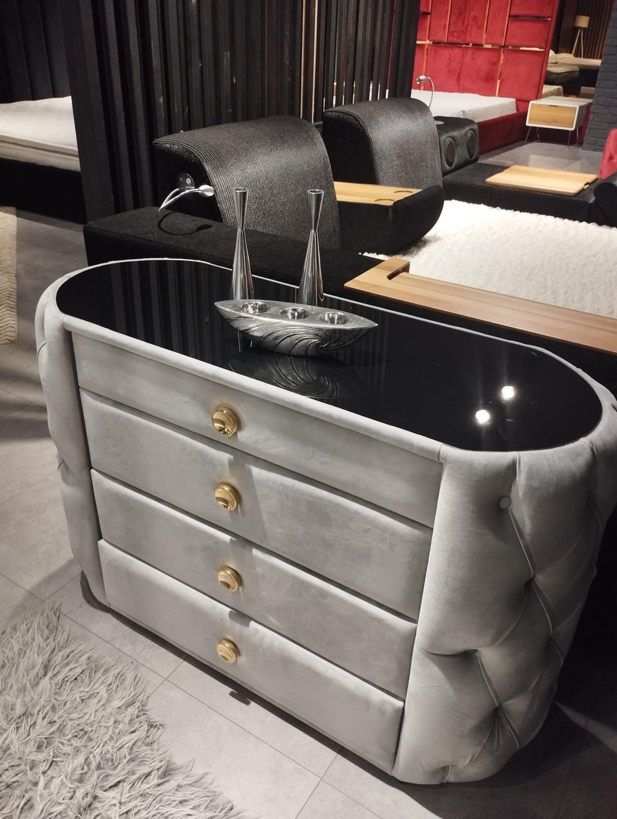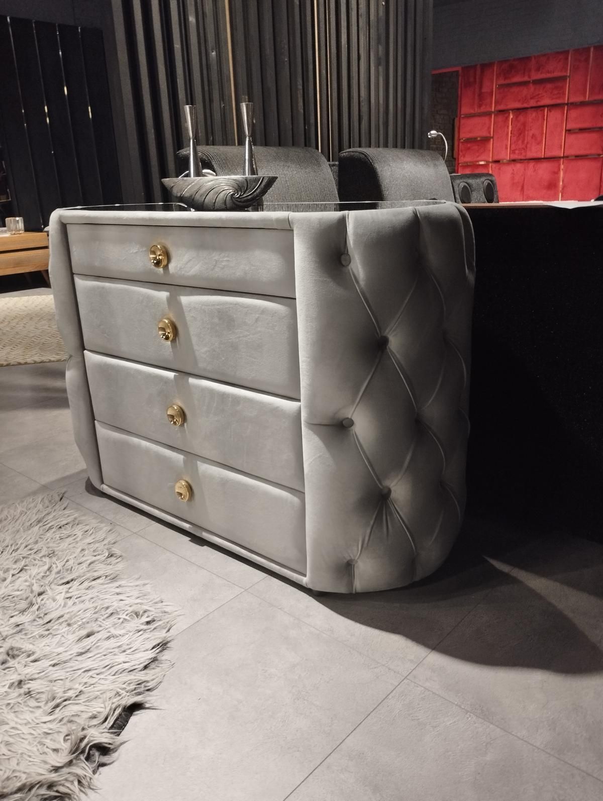 Design Kommode mit 4 Schubladen Schubladenschrank Kommode Holz Textil Neu