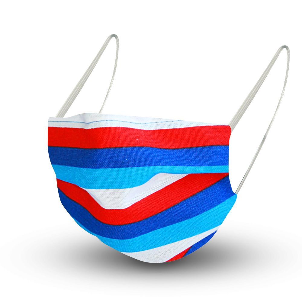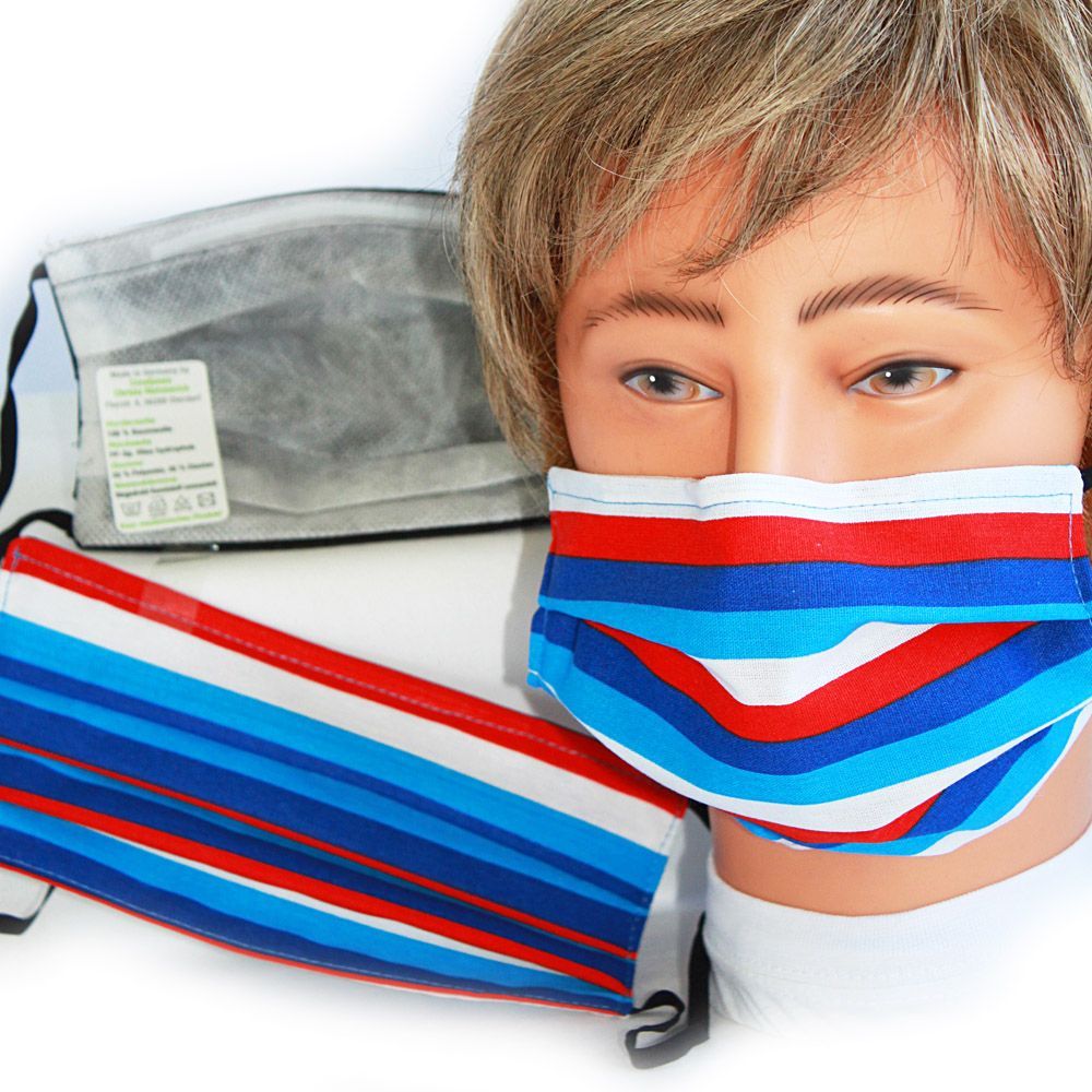Design Maske aus Baumwolle mit zertifiziertem Innenvlies - gestreift Blau-Rot-Weiß
