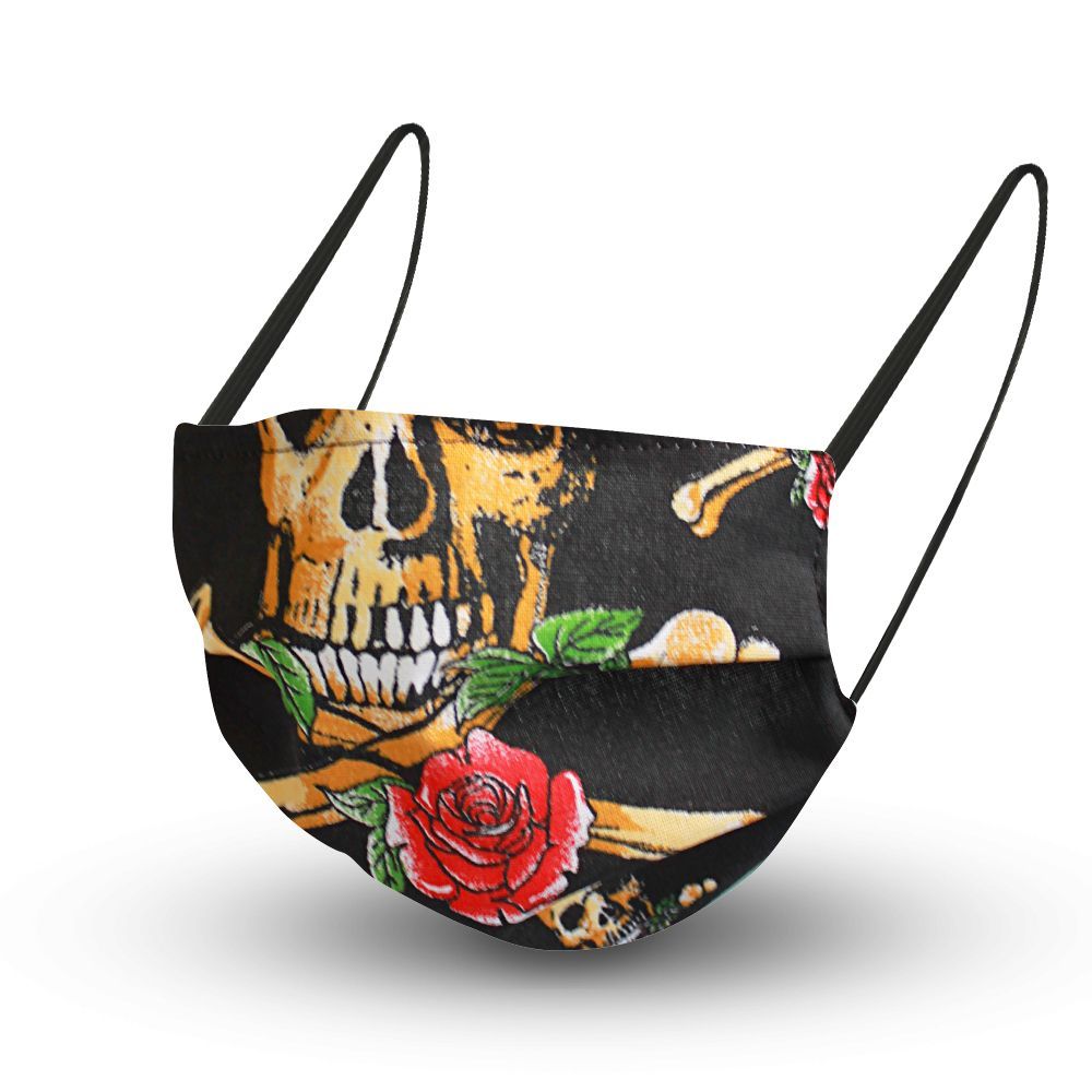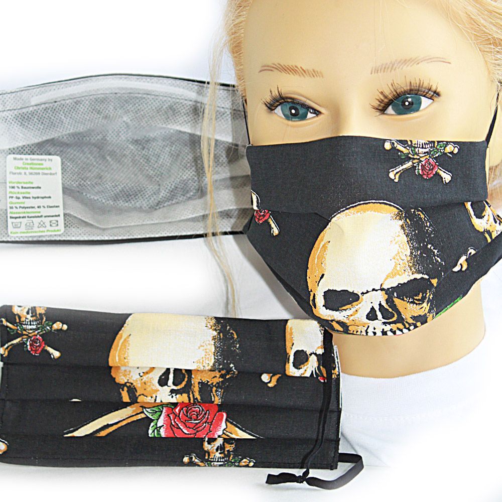 Design Maske aus Baumwolle mit zertifiziertem Innenvlies - Totenkopf Skull Rosen - 15