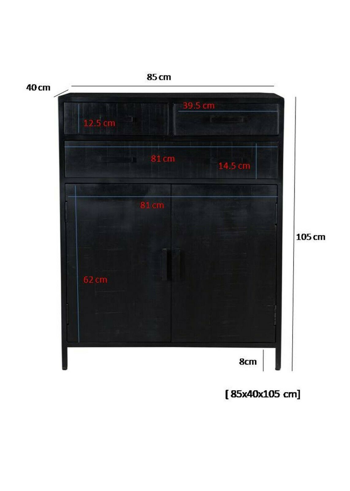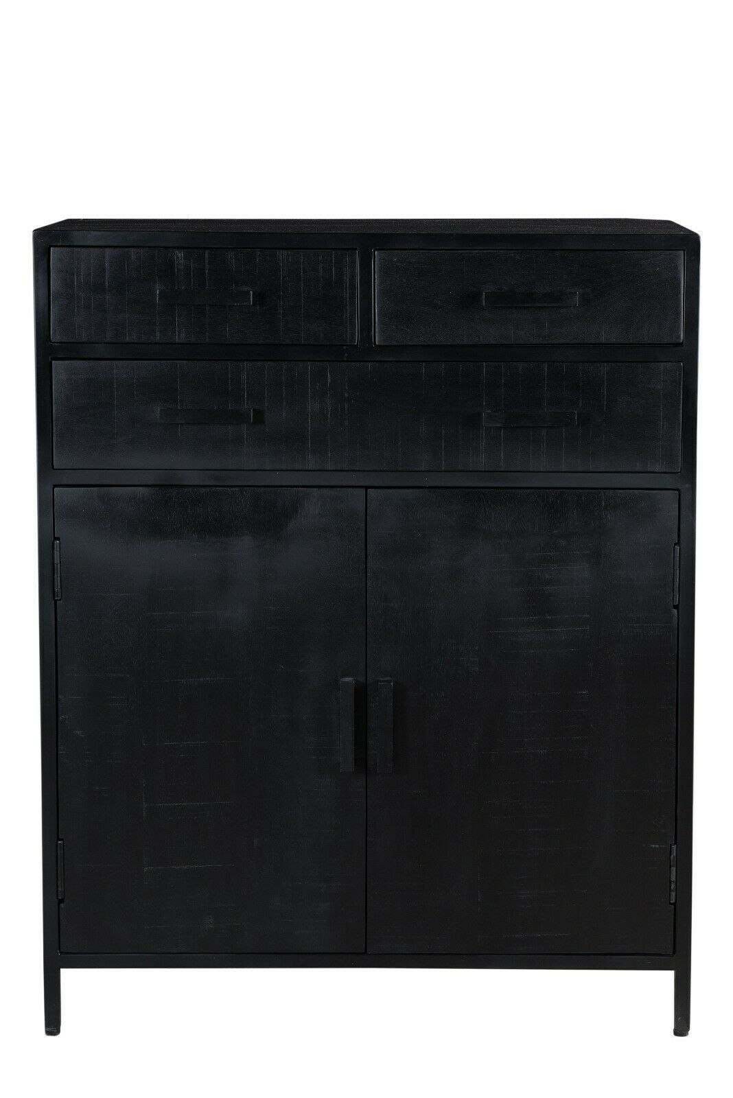 Design massiv Mango Holz Stahl Kommode Highboard Kala Schwarz 85 cm x 105 cm