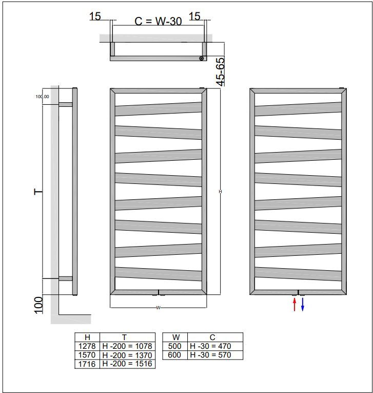 Design Paneel Heizkörper Badheizkörper Handtuchtrockner 600mm Breite