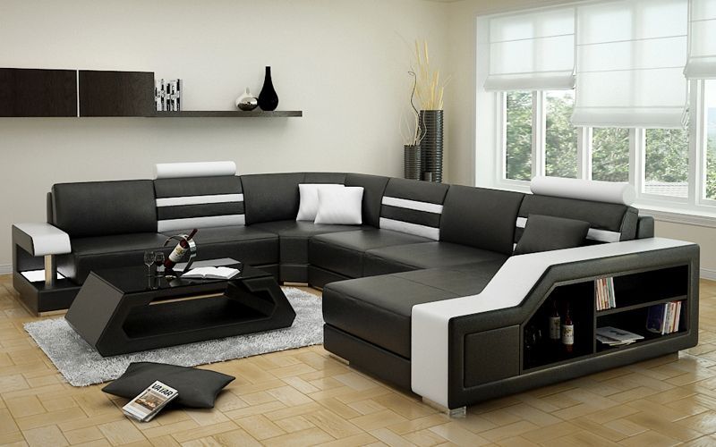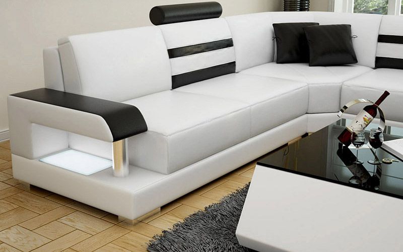 Design Sofa Ecksofa Wohnlandschaft mit Regal Polster Sitz Garnitur Ledersofa USB