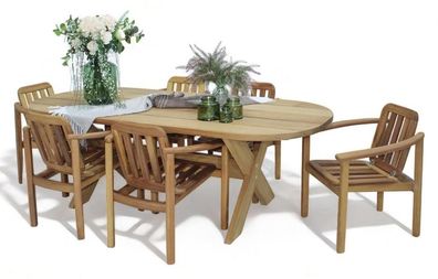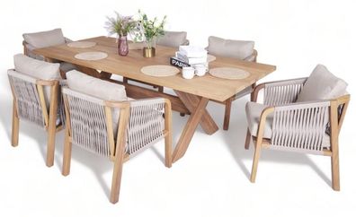 Stilvoller Esstisch 6x Stühle Set Holz Gartenmöbel Designer Komplett 7tlg