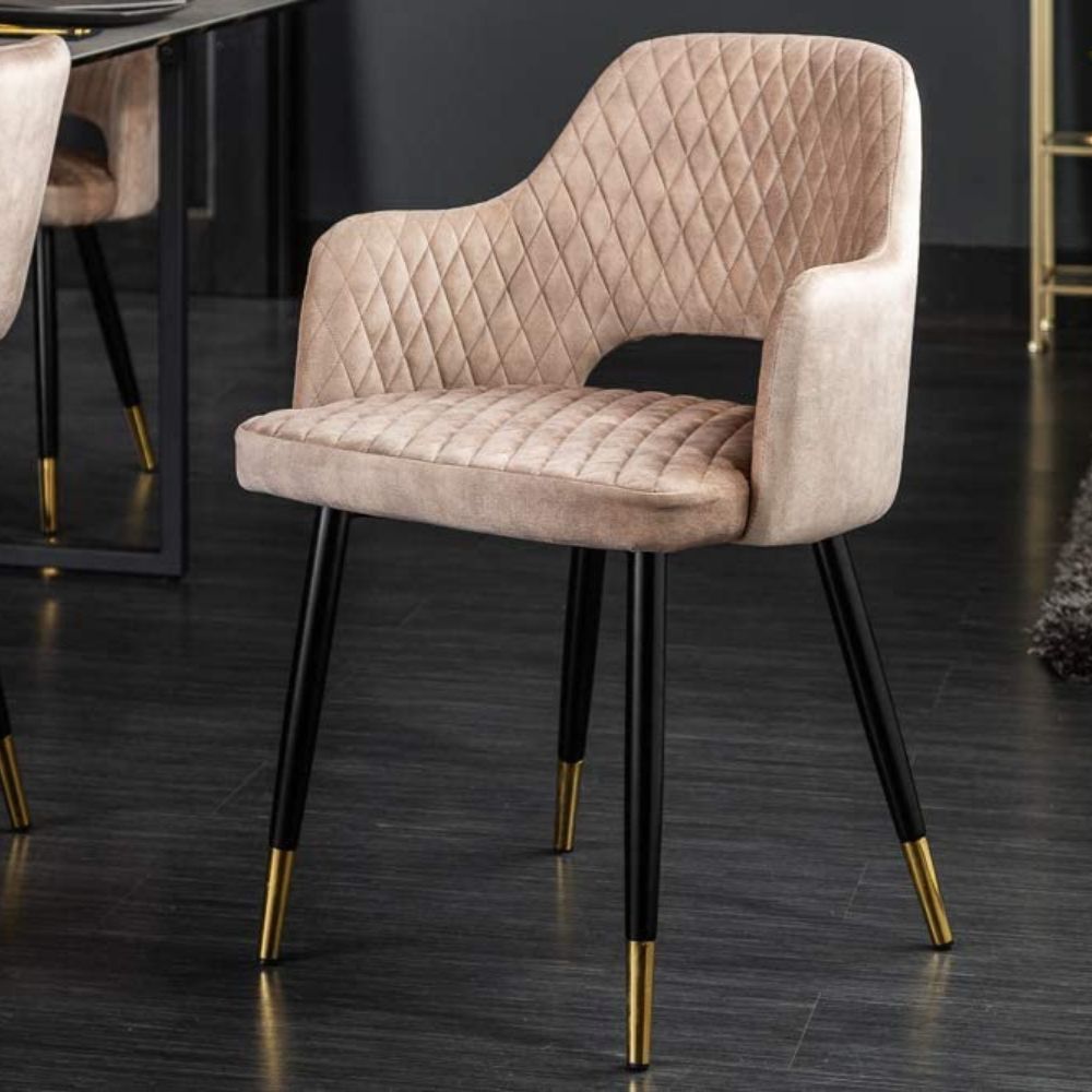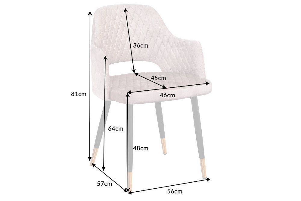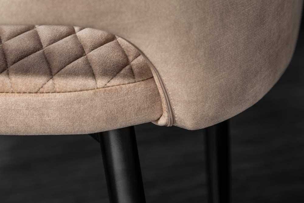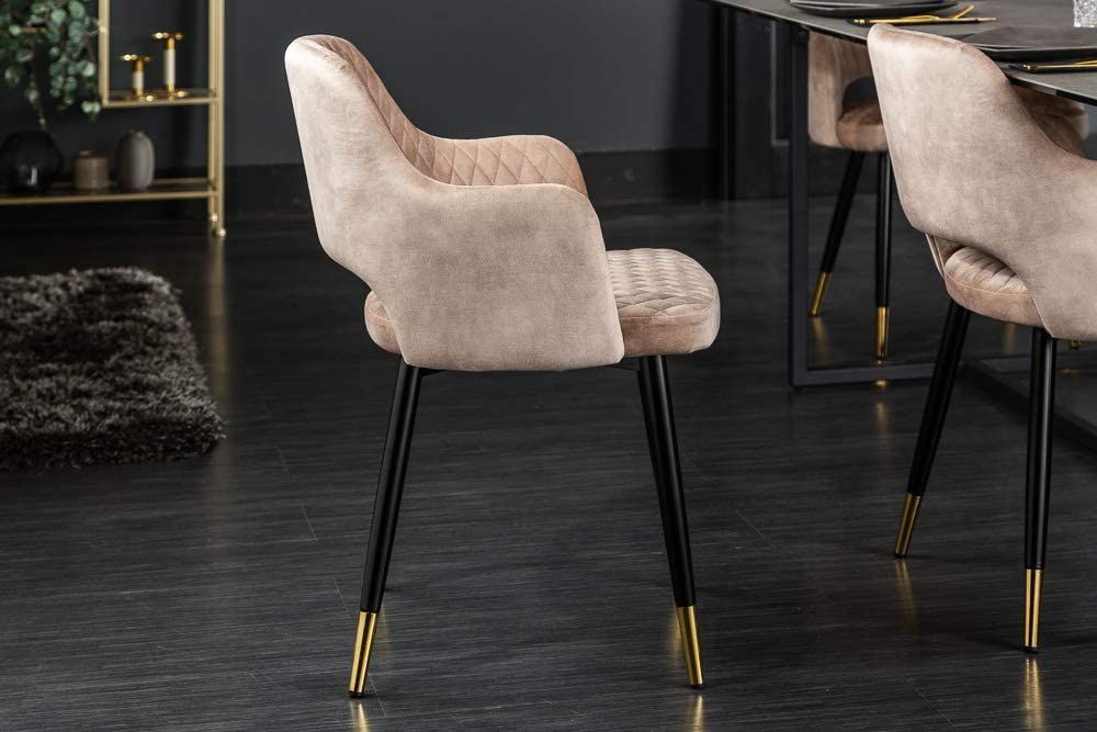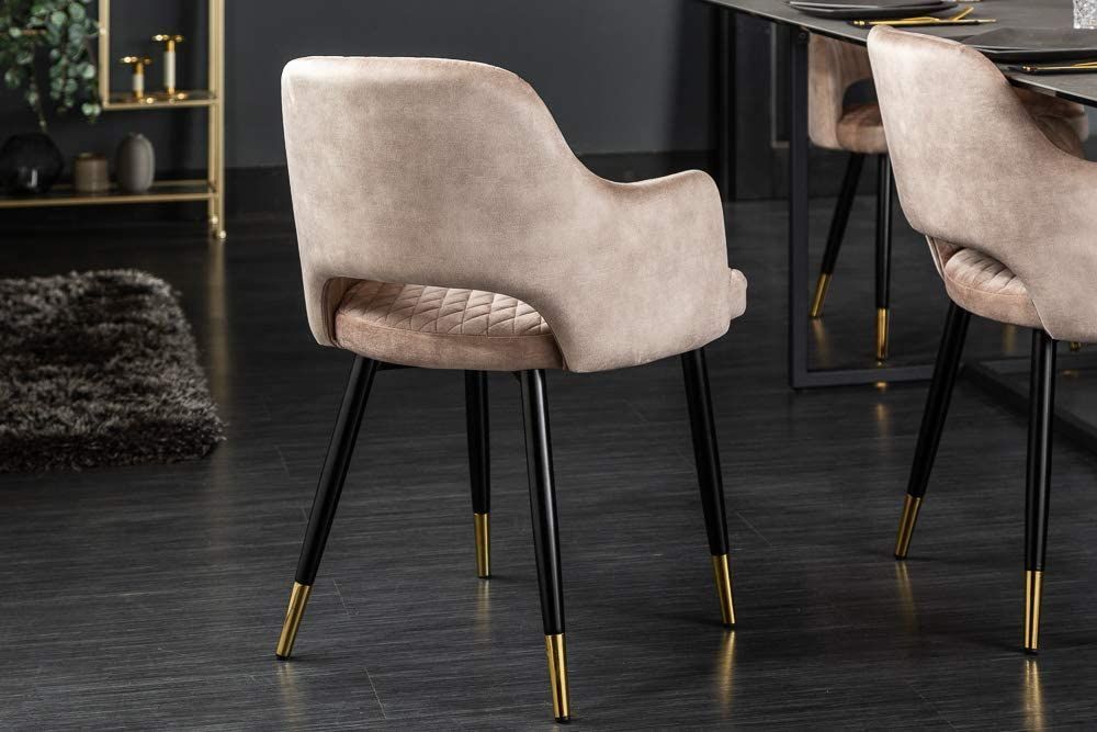 Design Stuhl FRANCE Samt greige Ziersteppung Armlehnen Esszimmerstuhl Retro